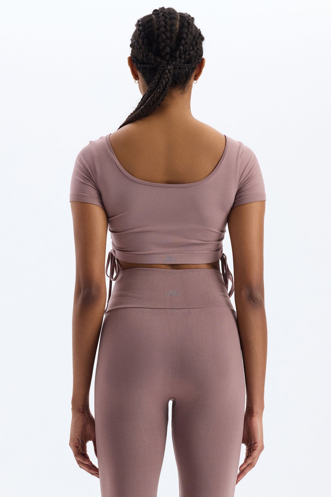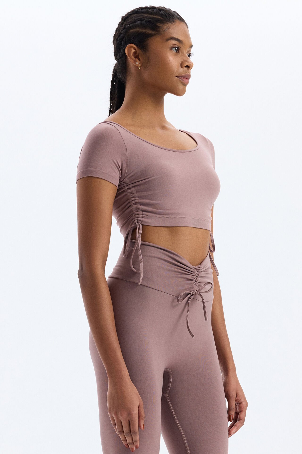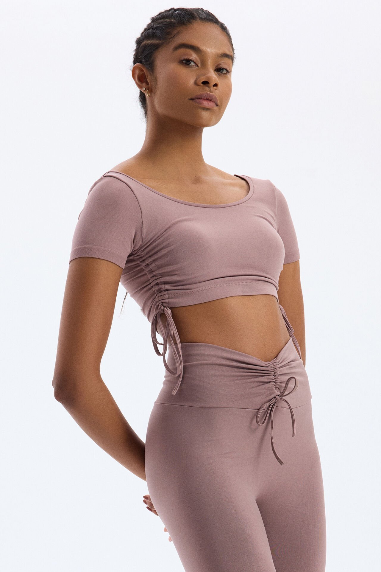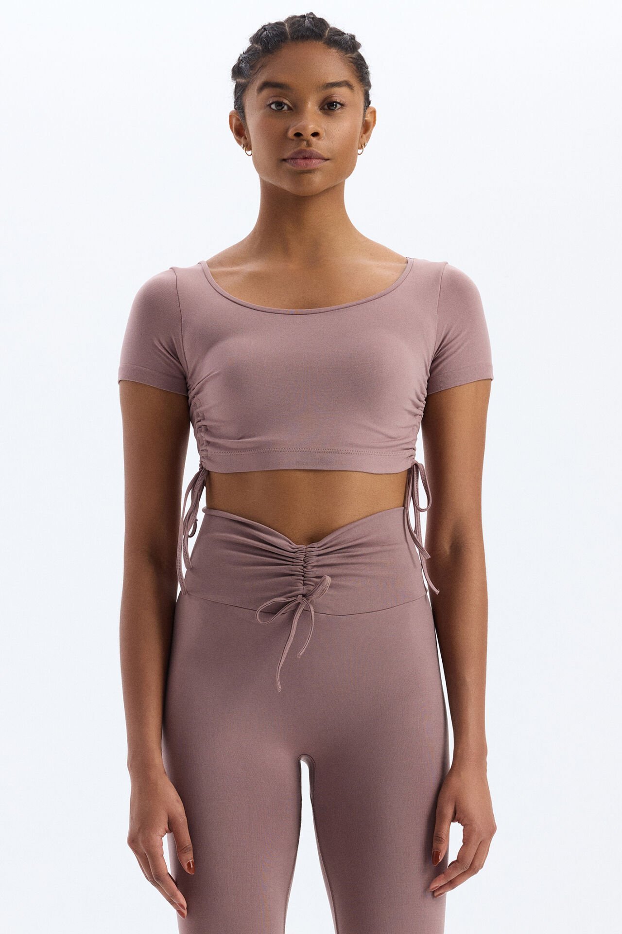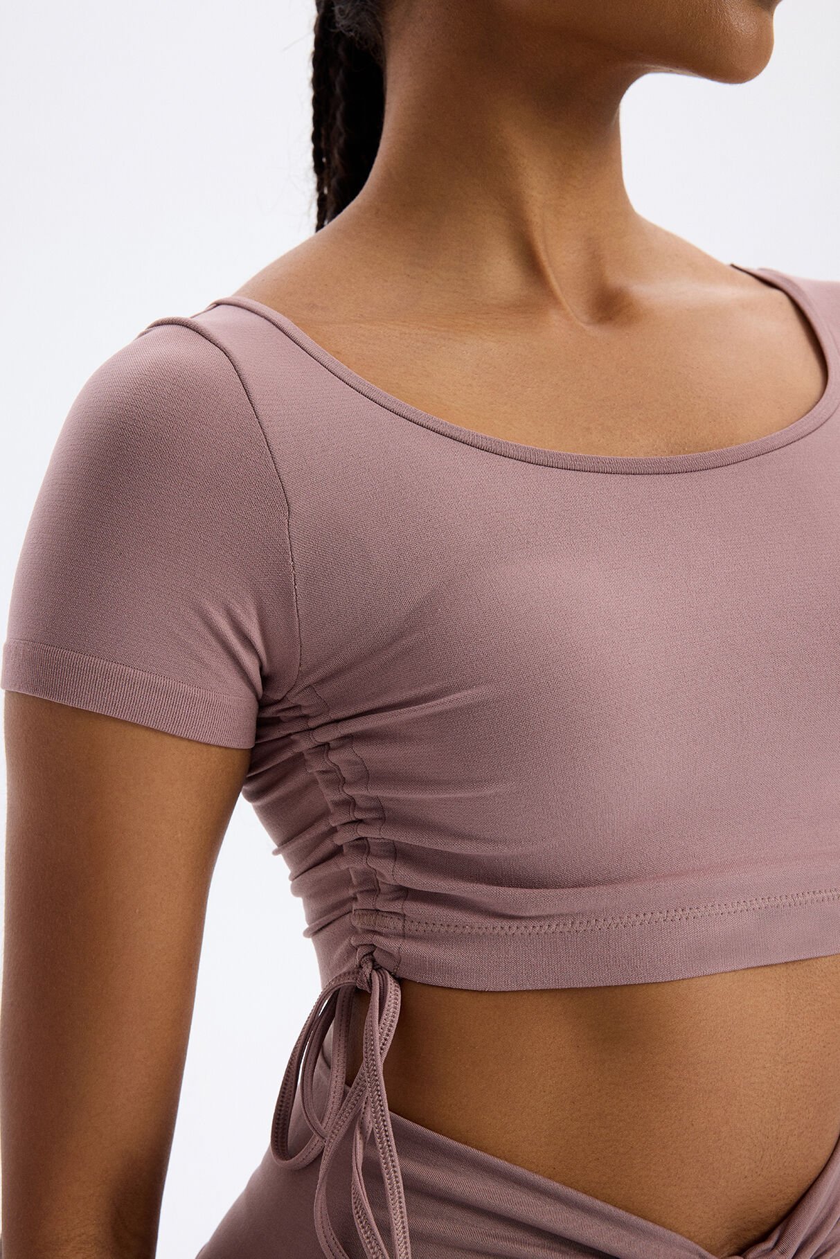 Bağcıklı Yanlardan Büzgülü Crop Top Mocha