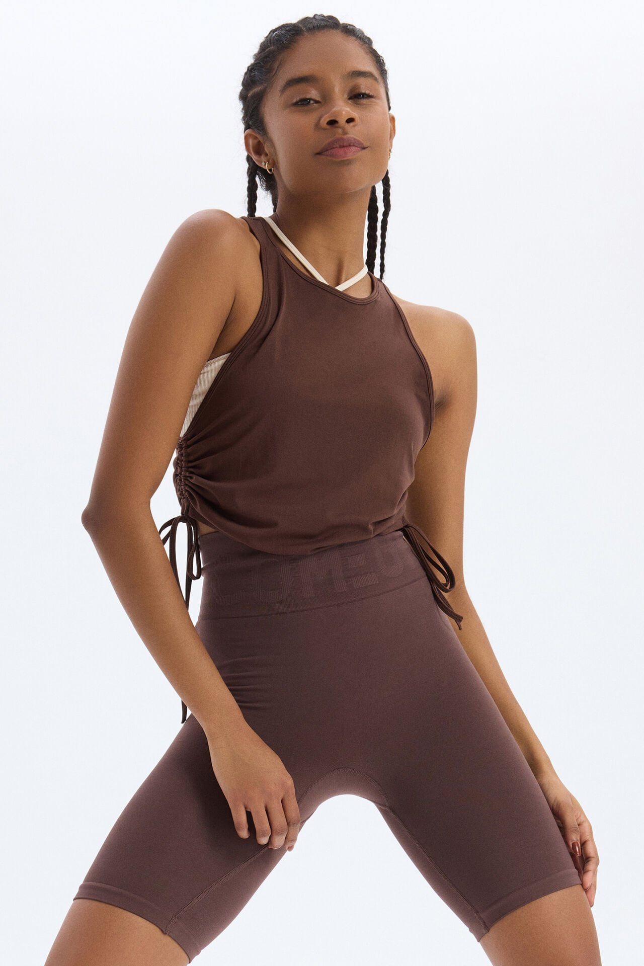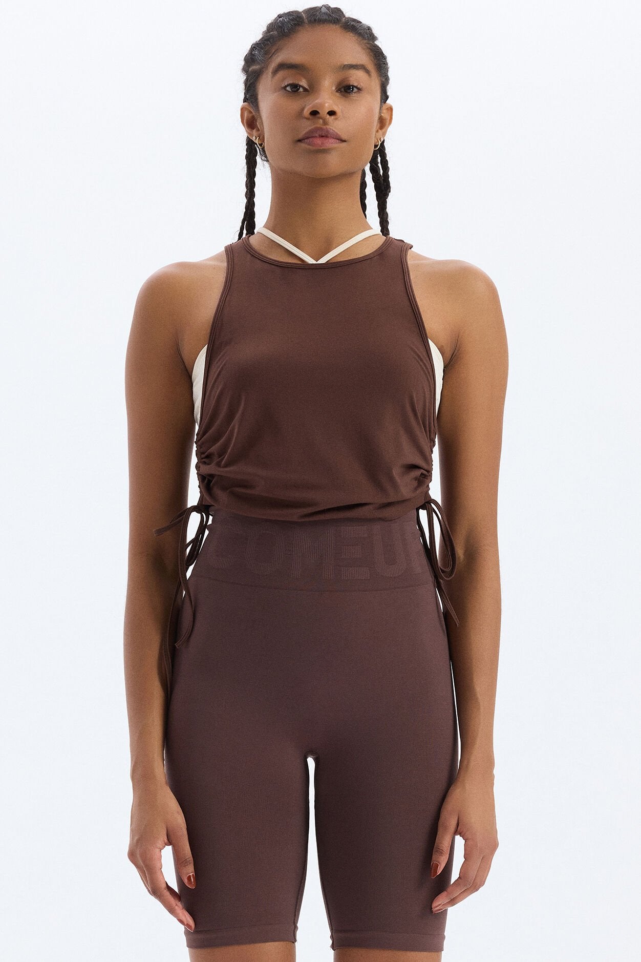 Kakao kahve, sıcak ve sofistike tonlarıyla her anına zarafet katar. Bağcıklı yanlardan büzgülü spor atlet, stiline şıklık katarken, aynı zamanda mükemmel bir rahatlık sunar. Yanlardan büzgü detayları atletine özgün form kazandırırken, ayarlanabilir bağcıklar sayesinde vücut hatlarına göre mükemmel uyum sağlar. İçine ekleyeceğin spor sütyen, egzersiz sırasında ekstra destek sağlar ve sana tam rahatlık sunar.