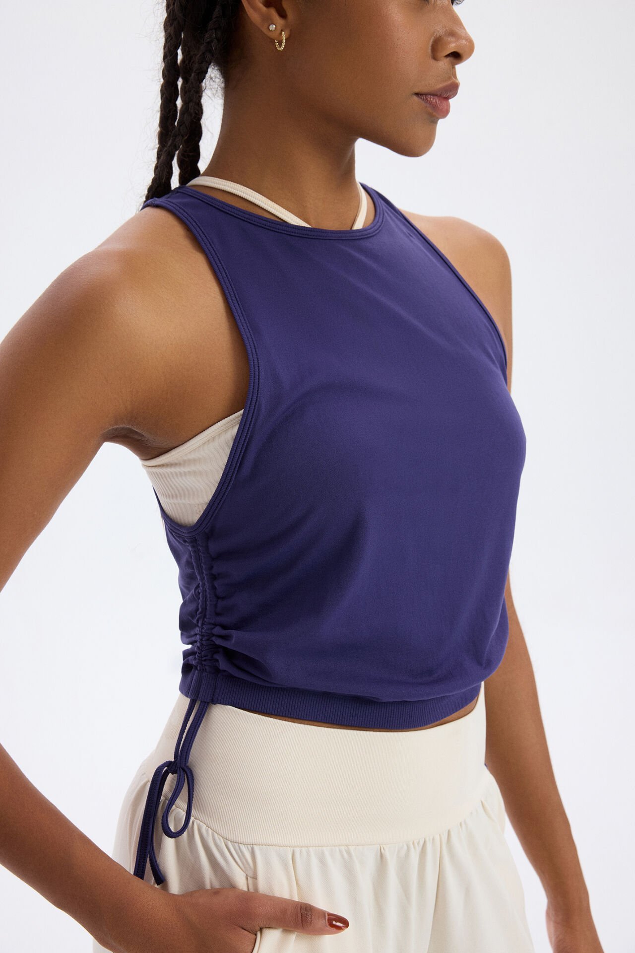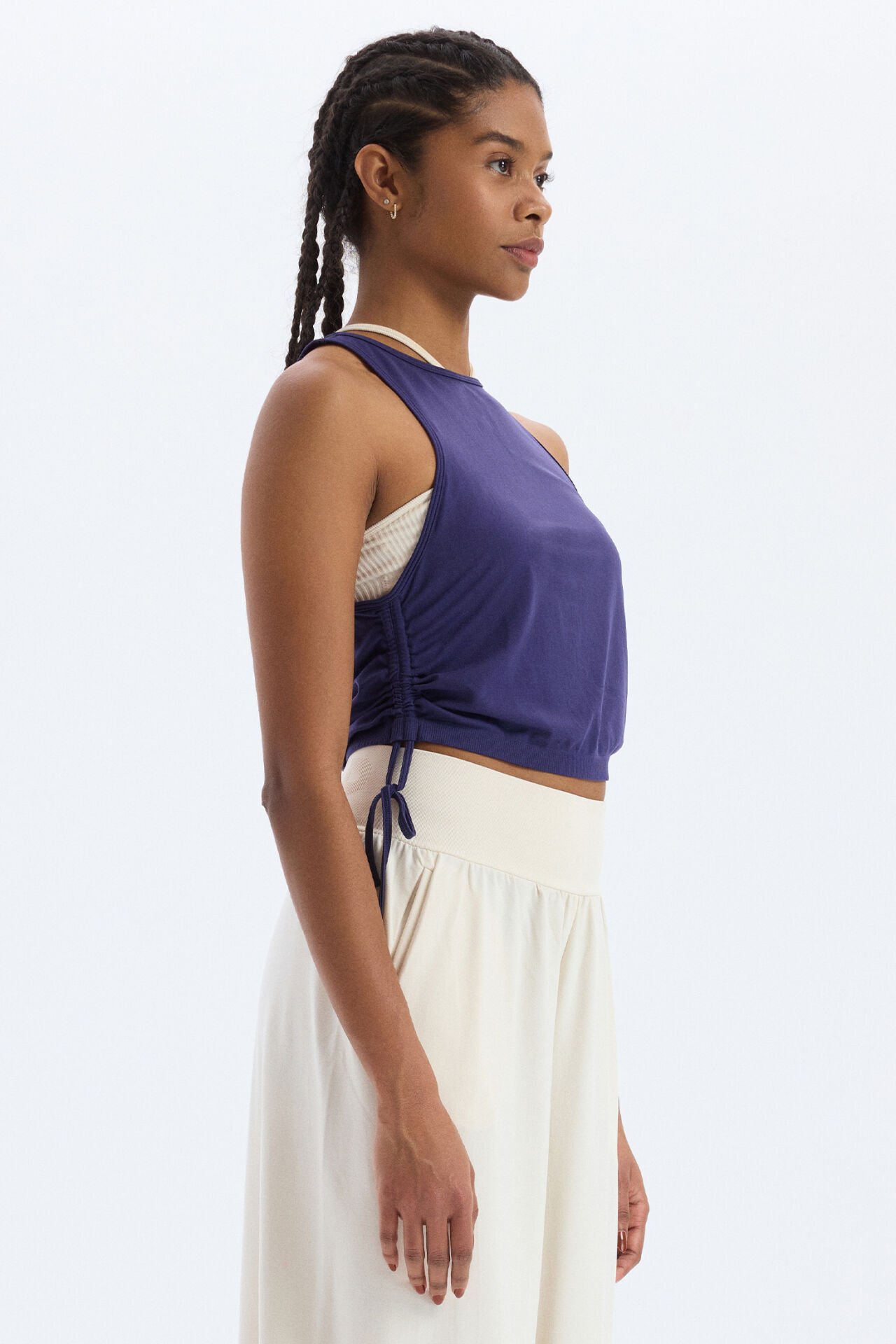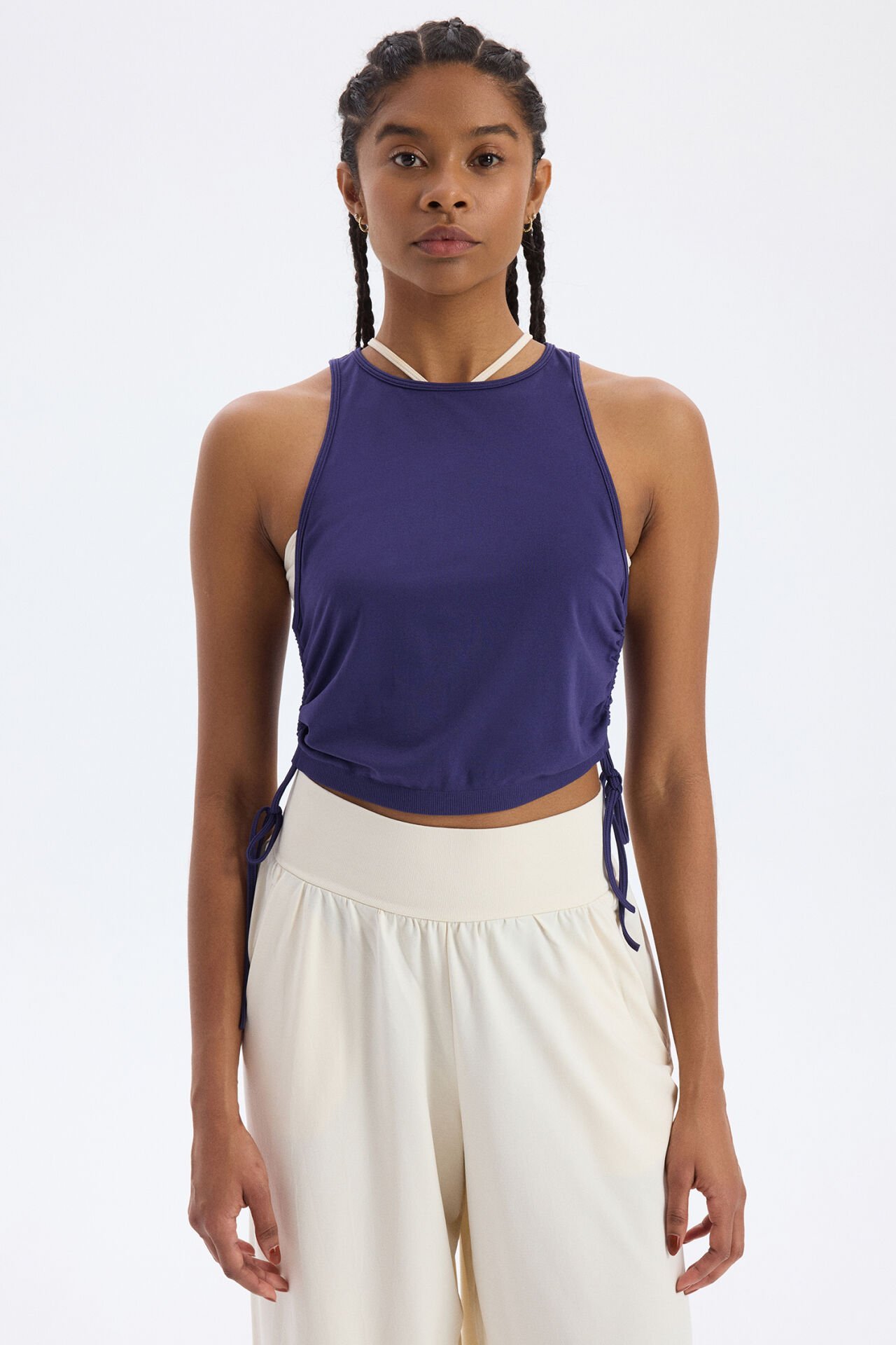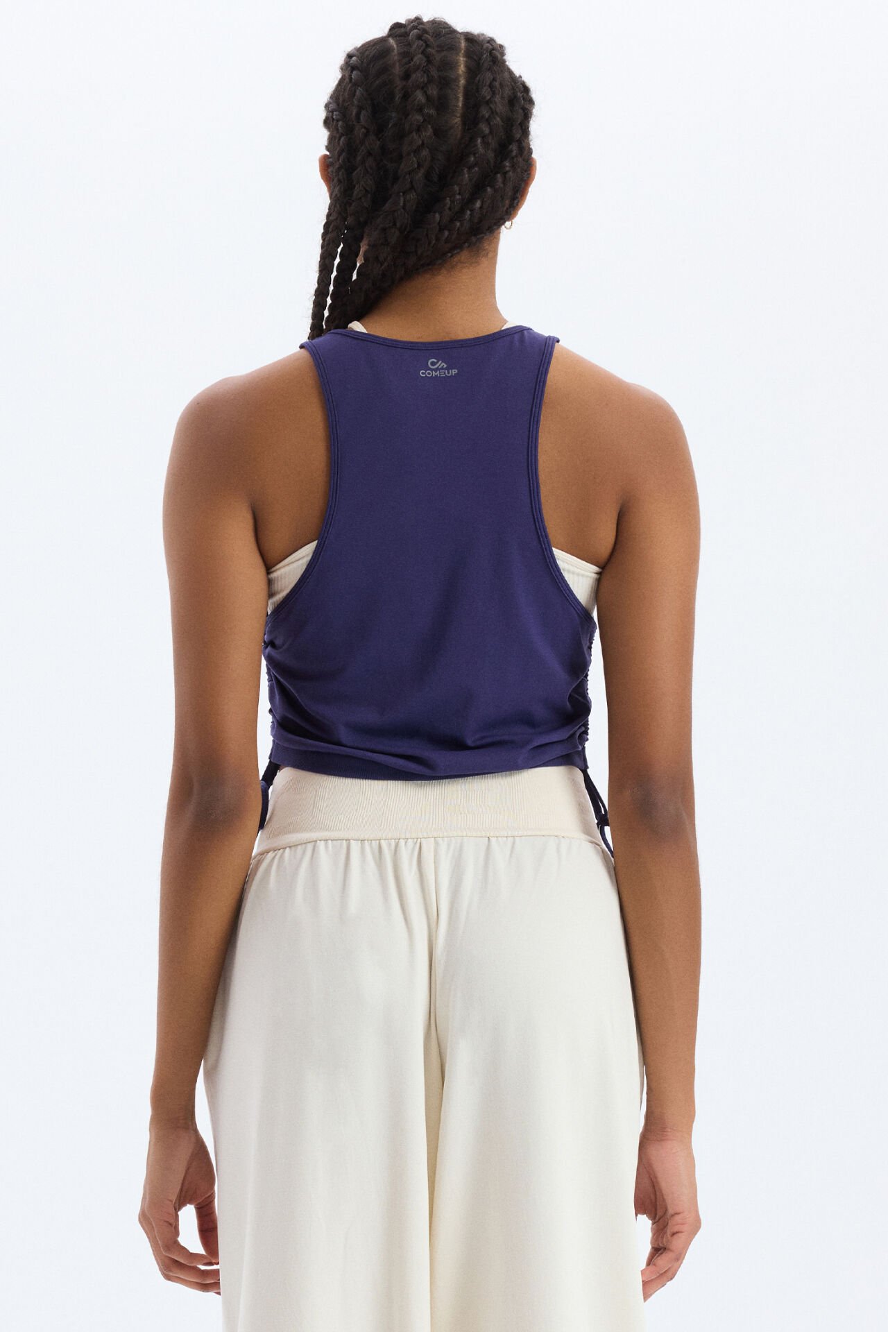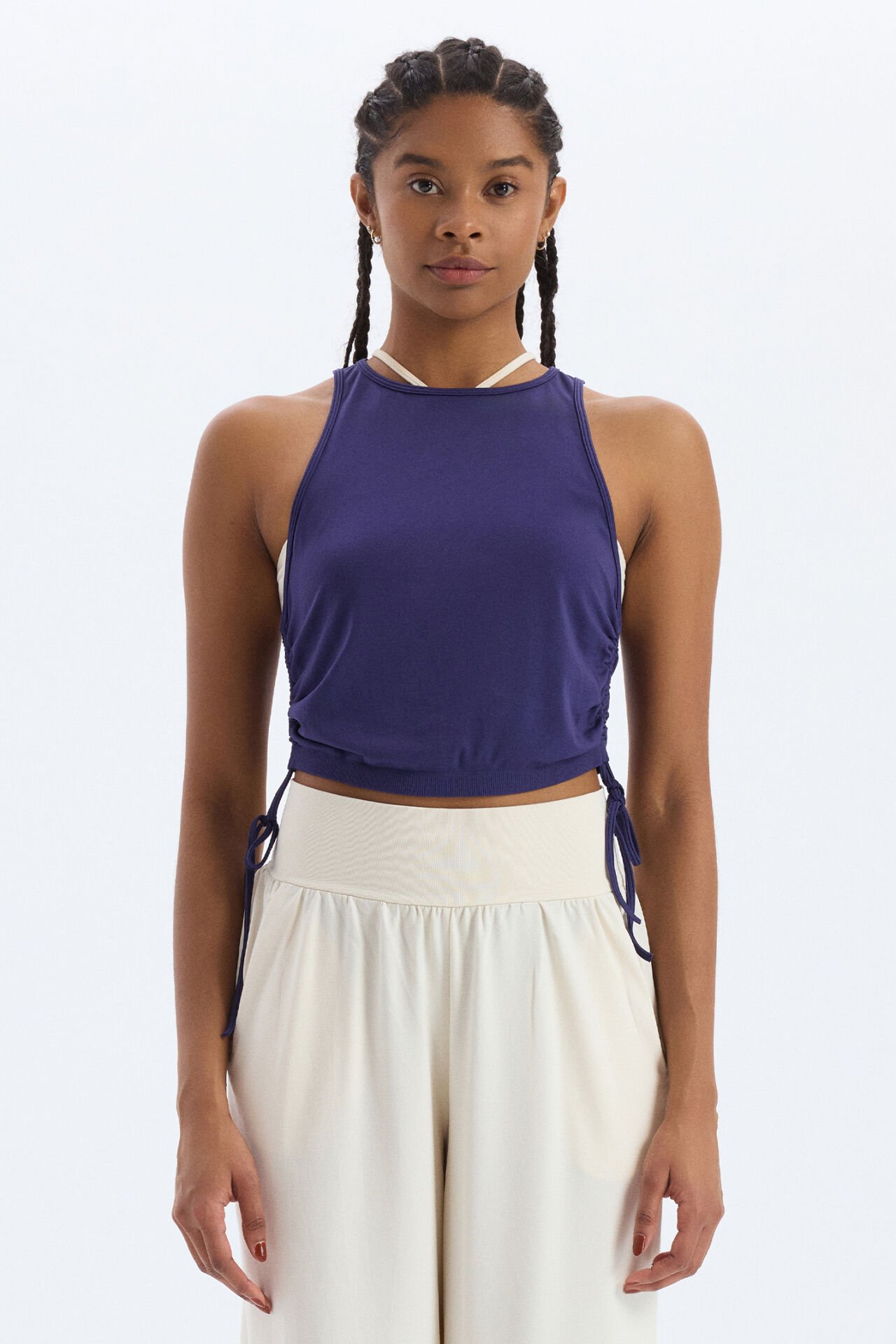 Mavinin dinamik tonu ile tasarlanmış bağcıklı yanlardan büzgülü spor atlet, stil ve fonksiyonu bir arada sunuyor. Sportif ve şık tasarıma sahip spor atlet, ayarlanabilir bağcık detaylarıyla hem rahat hem de şık bir kullanım deneyimi sağlar. İçine ekleyebileceğin spor sütyeni, ekstra destek ve rahatlık sunar, egzersiz sırasında mükemmel bir performans elde etmeni sağlar.