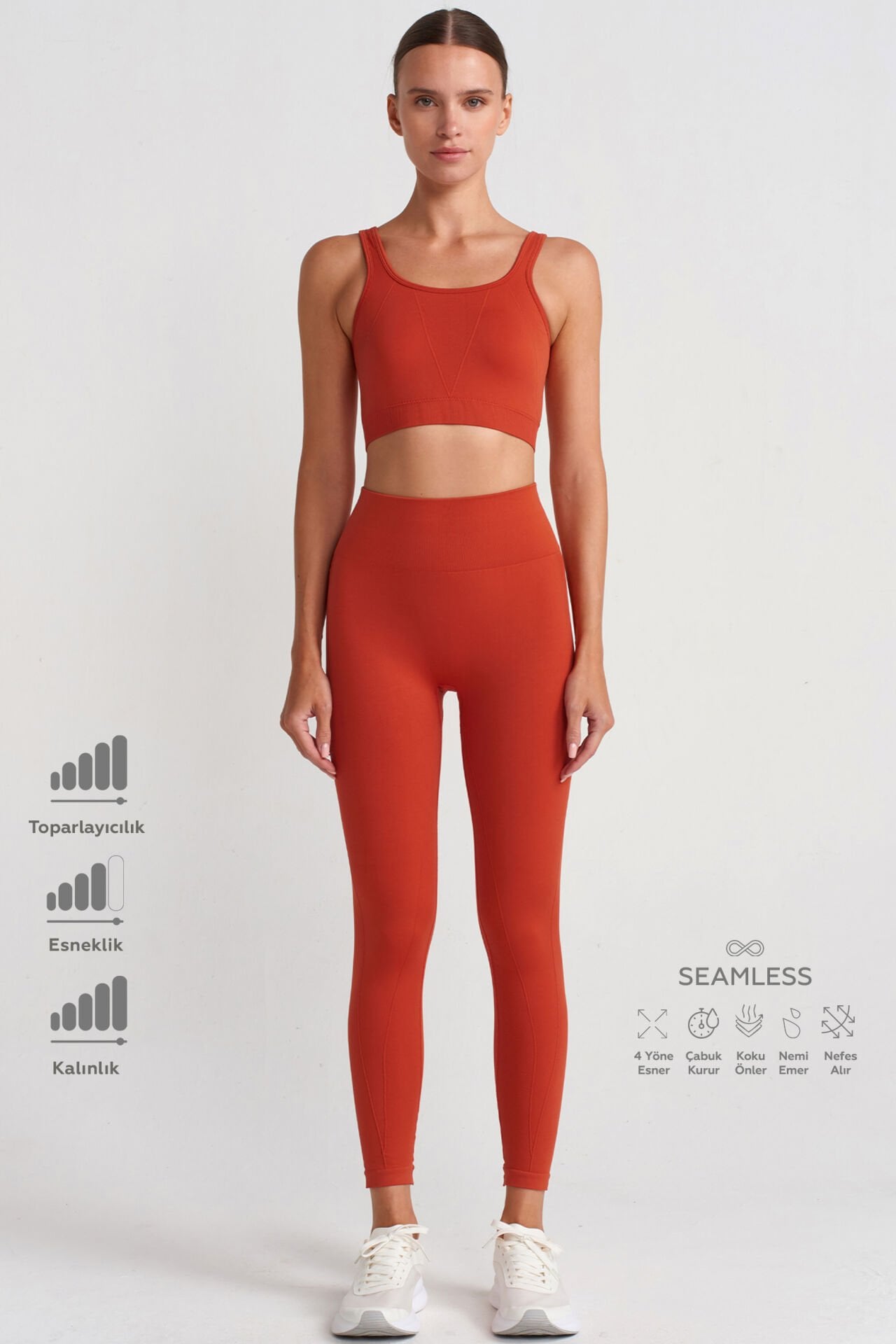 -Toparlayıcı tayt, dikişsizdir.