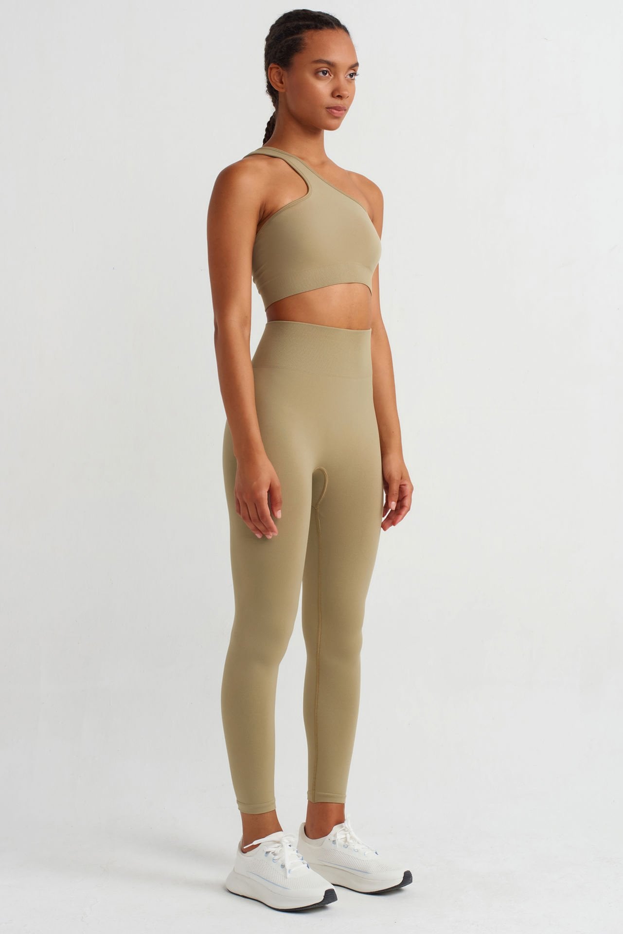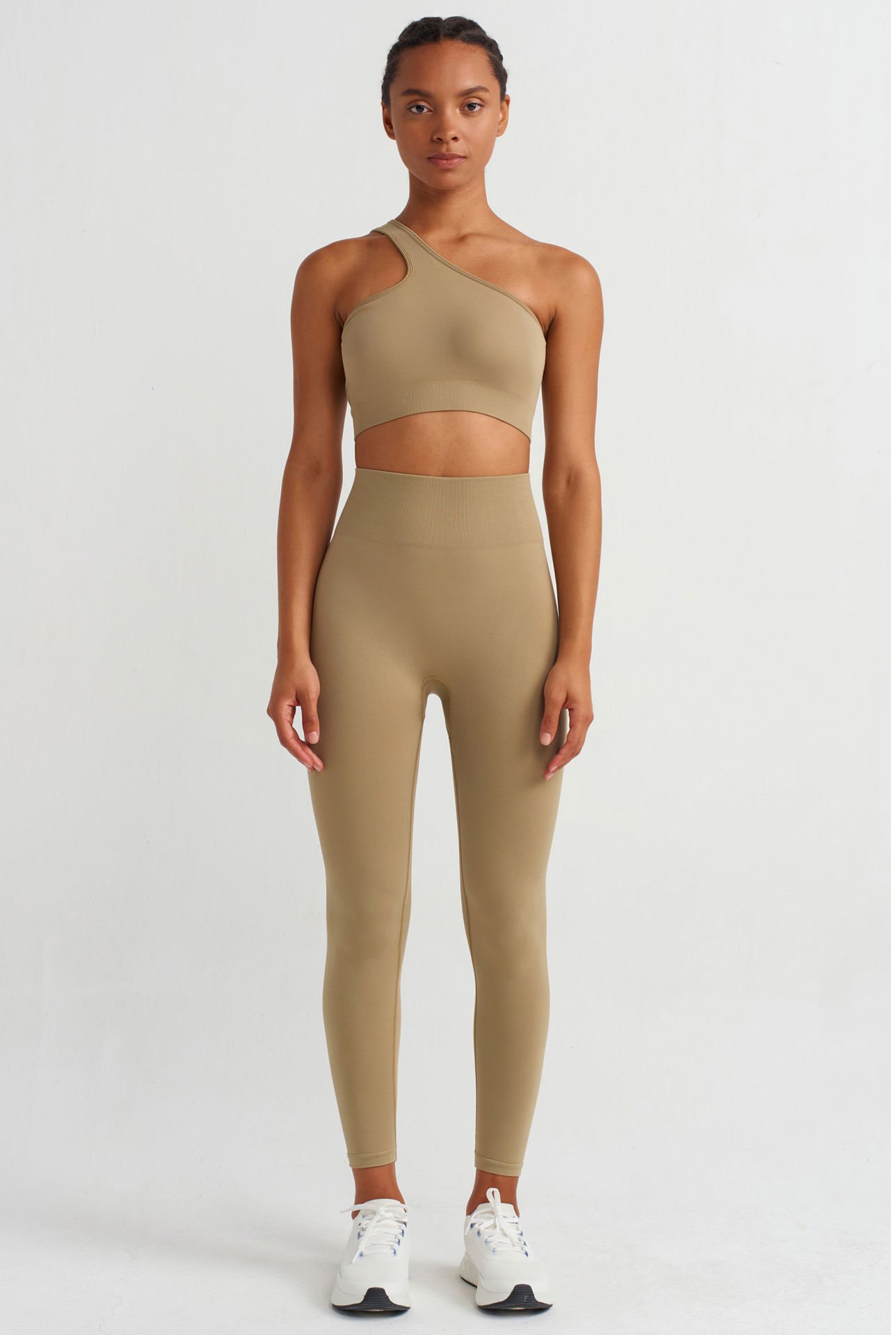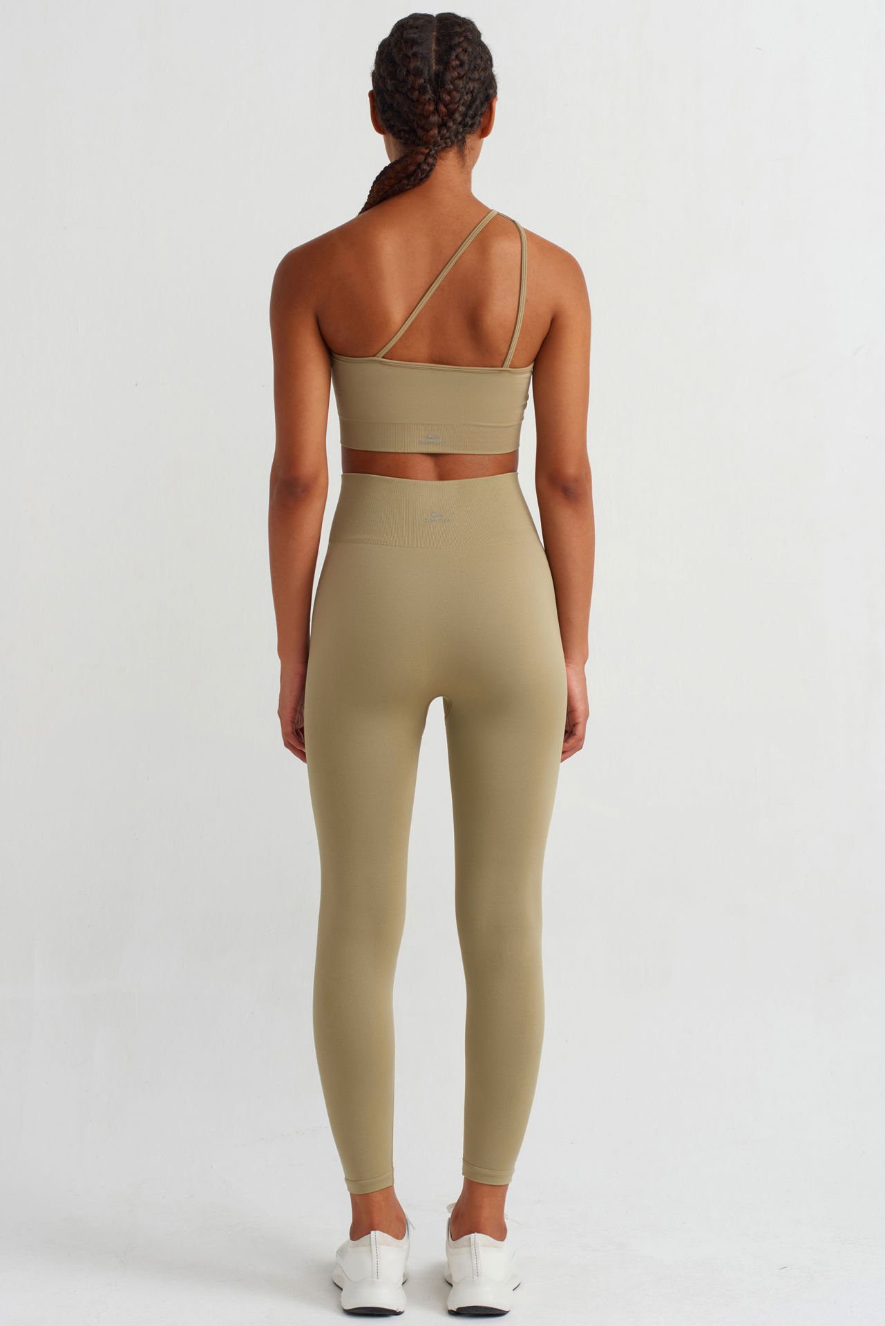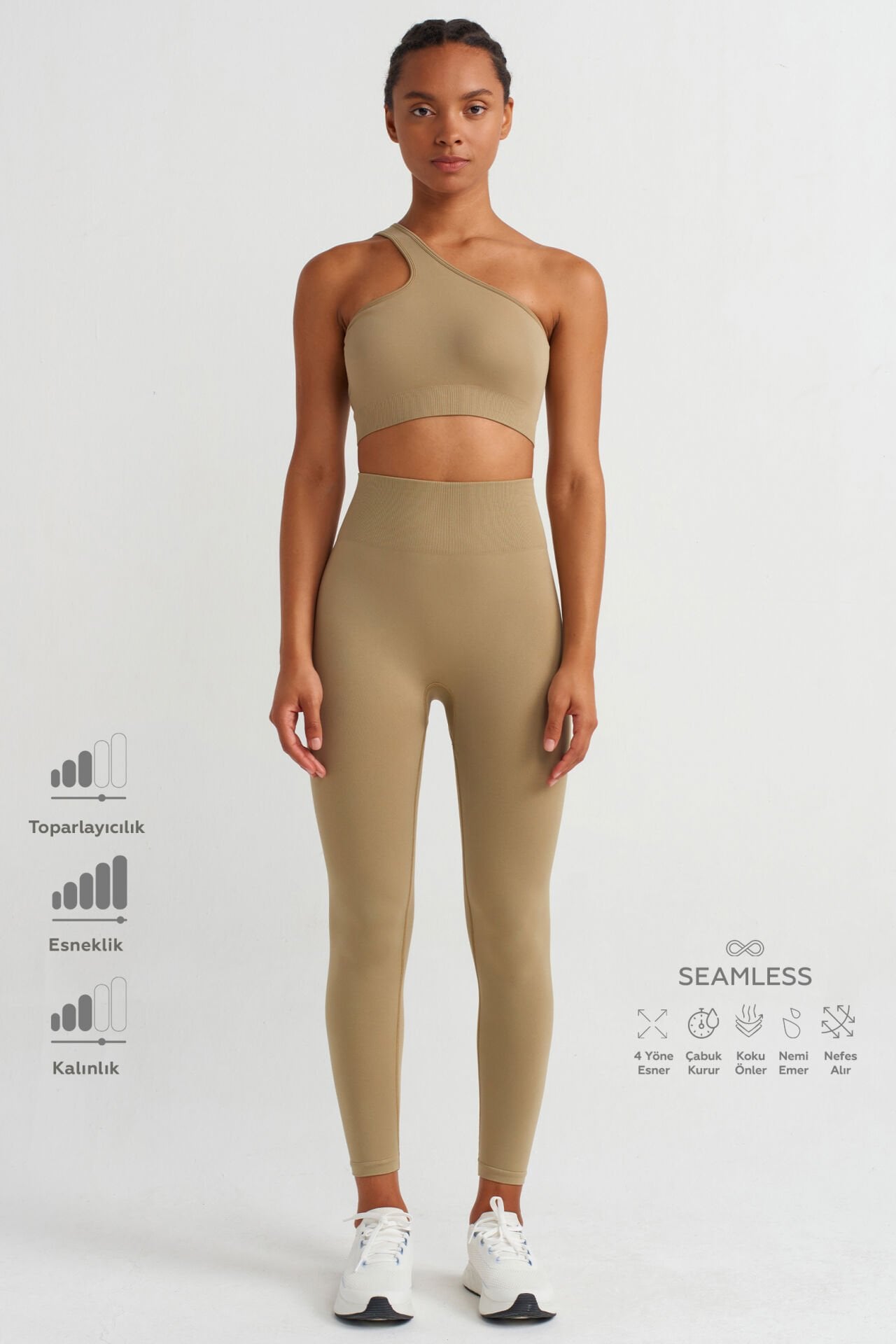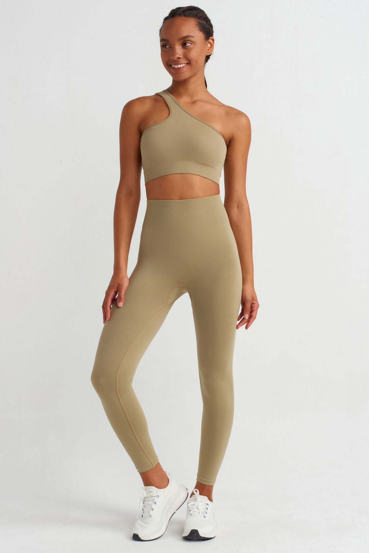 Doğanın tonlarından yansıyan basic tayt, toprak yeşili rengi ile naturel bir şıklık sunuyor.