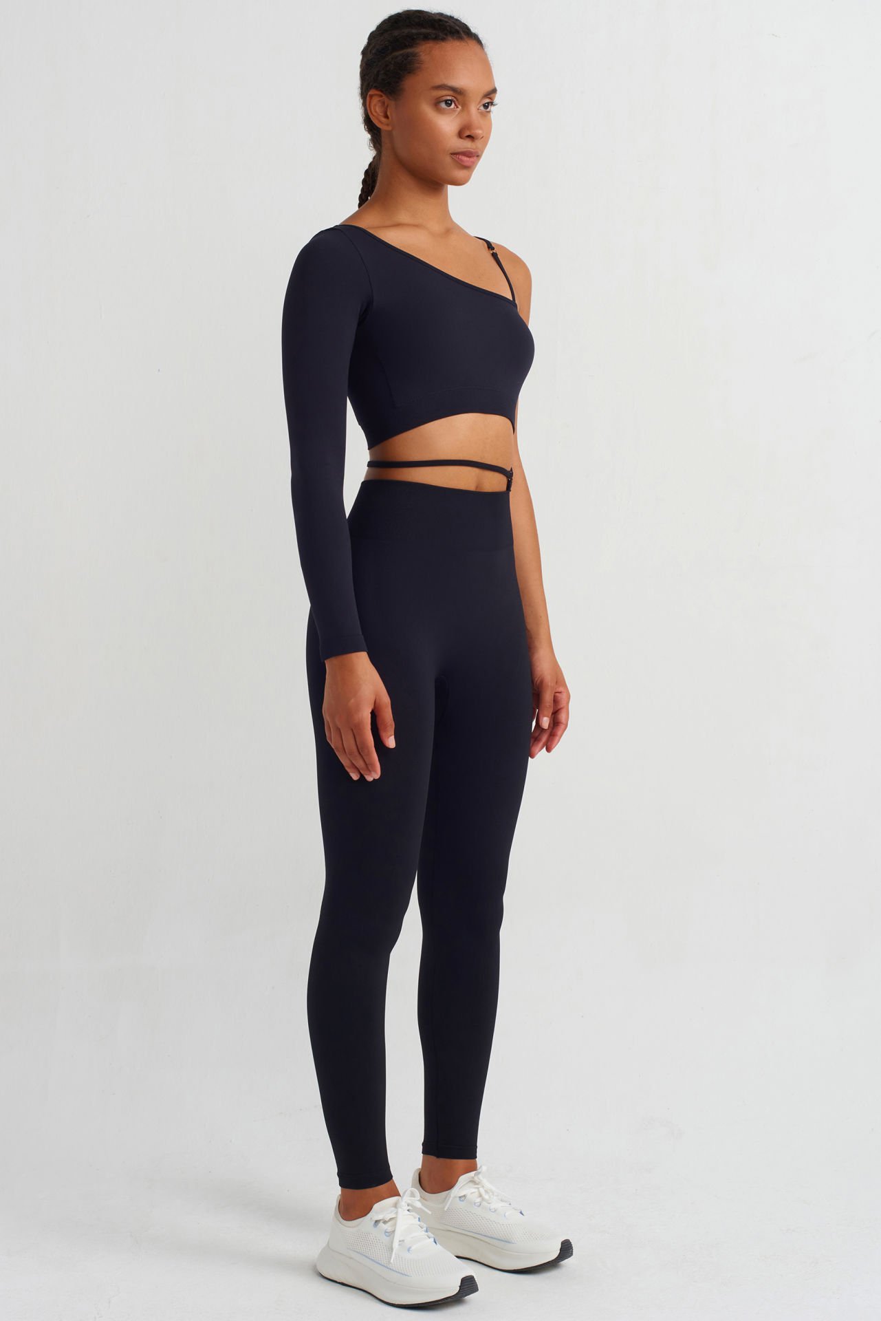 Güncel moda tasarımlarına uyum sağlayan spor tayt, siyah rengi ile her kombine ve her hareketine uyum sağlayan joker bir parçadır.