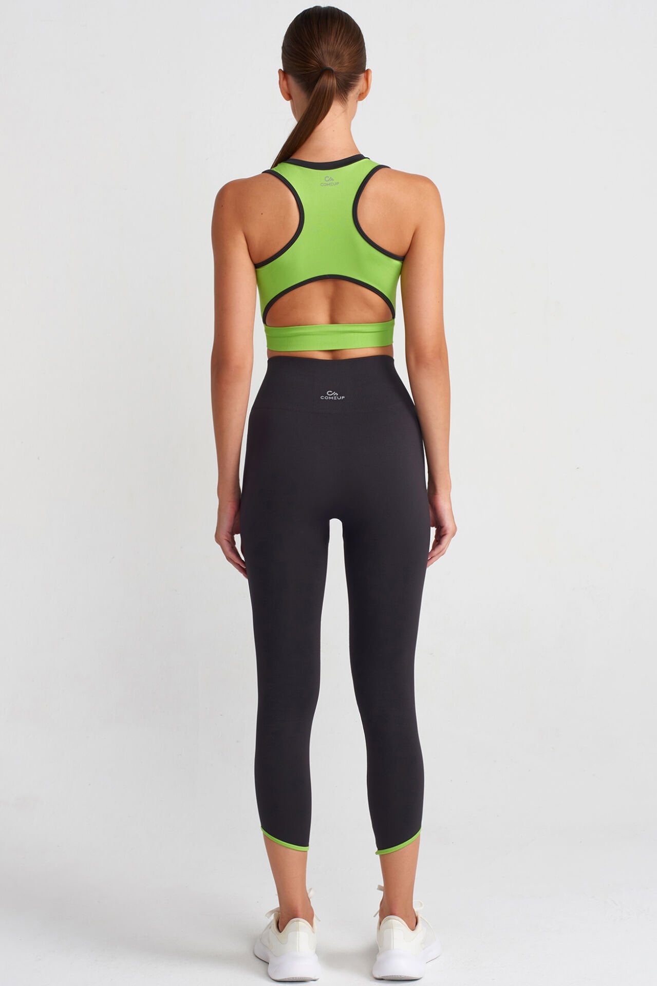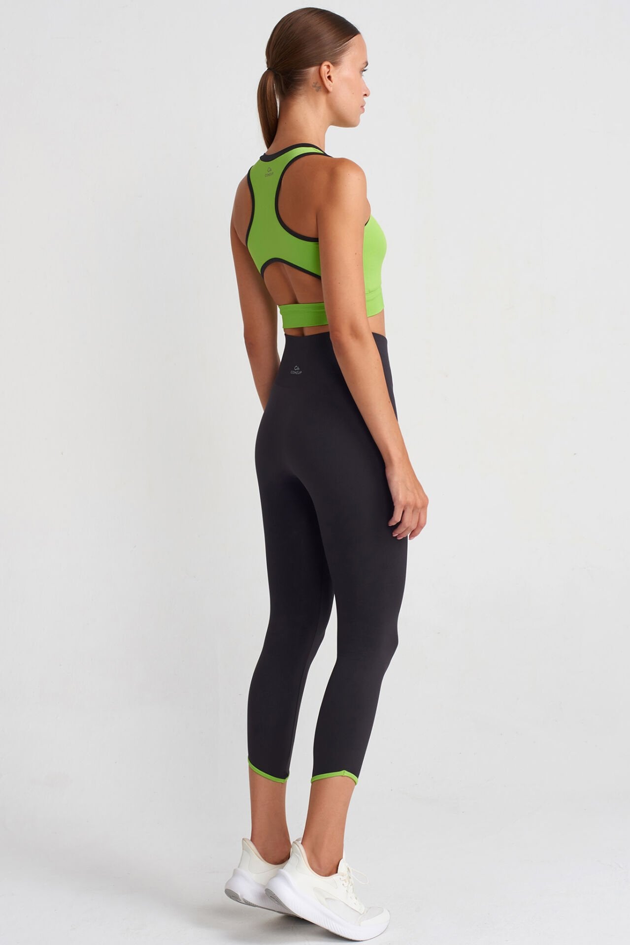 Biye Detaylı Toparlayıcı Tayt Küllü Siyah Egzotik Yeşil
