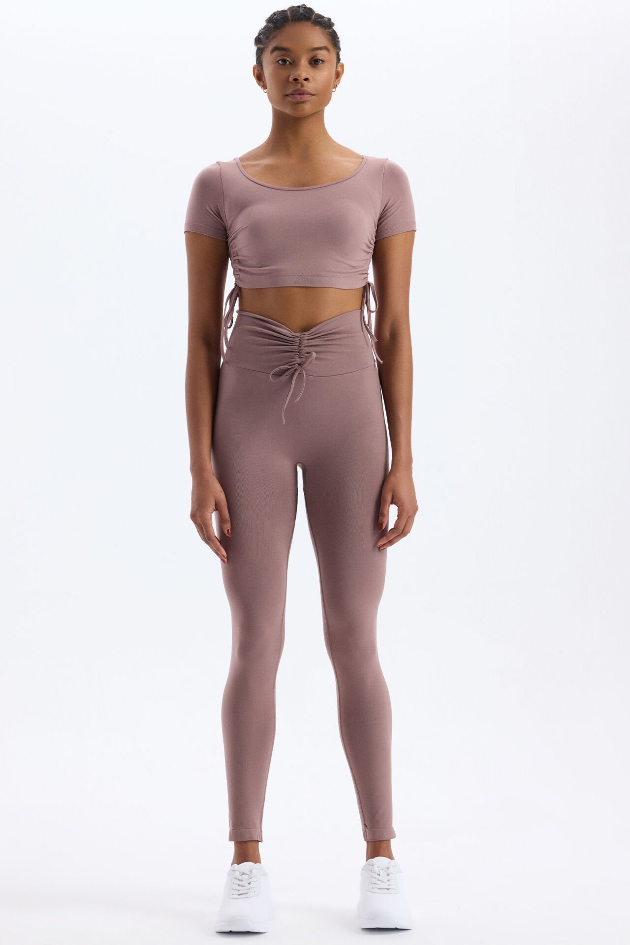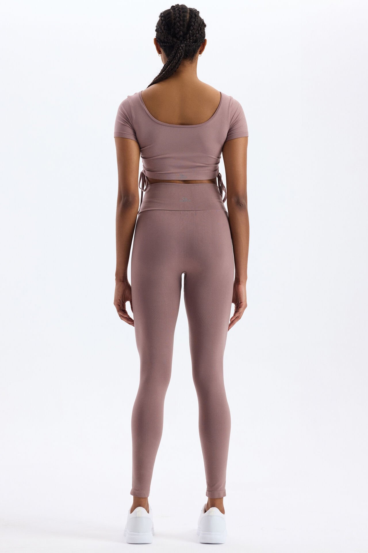 Zarif ve sofistike mocha spor tayt, şıklığı ve rahatlığı mükemmel bir şekilde bir araya getirdi. Beli büzgü bağlamalı tayt tasarımı, vücuda mükemmel uyum sağlar ve modern bir görünüm kazandırırken, beldeki bağcık detayı hareketli ve şık bir stil oluşturur.