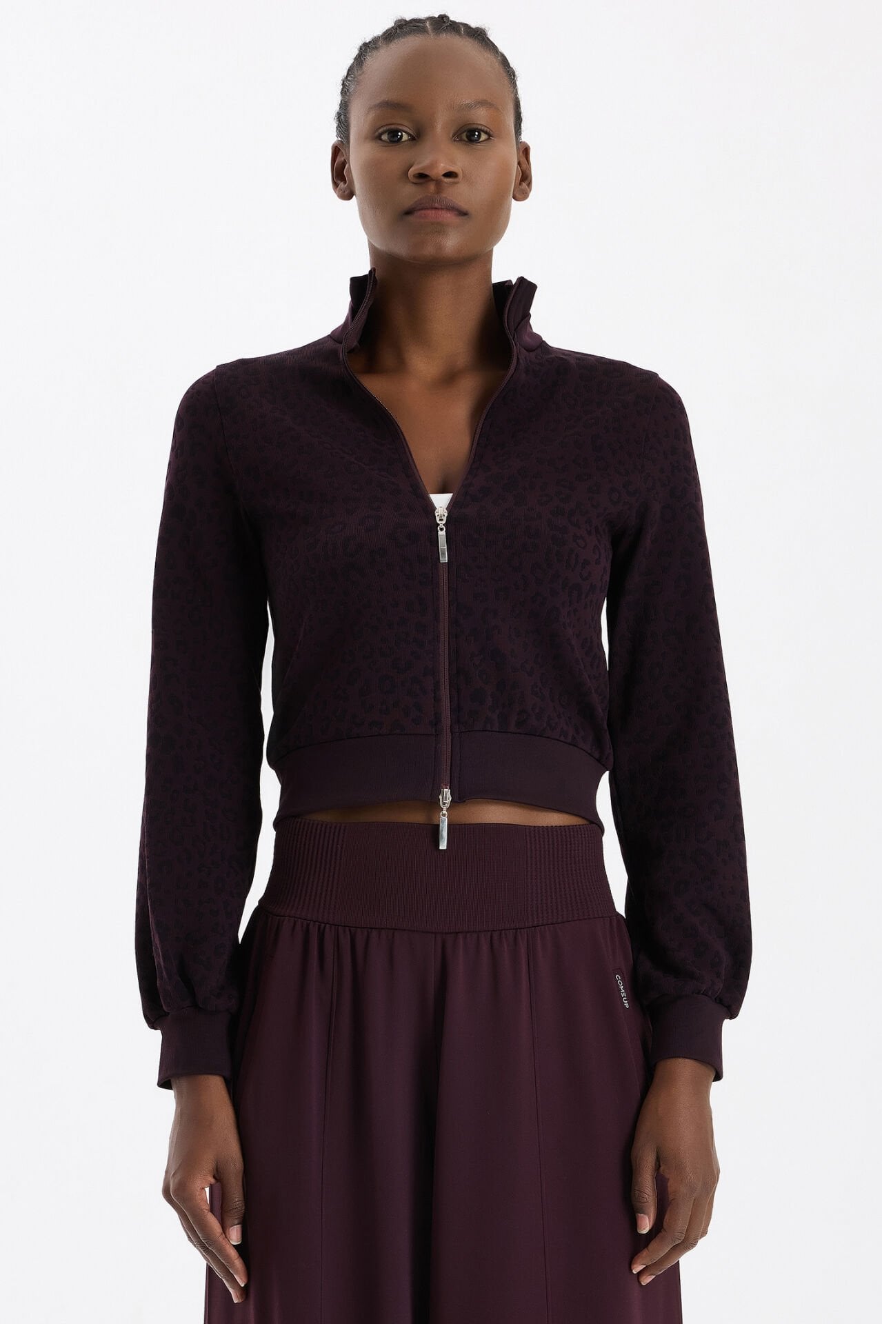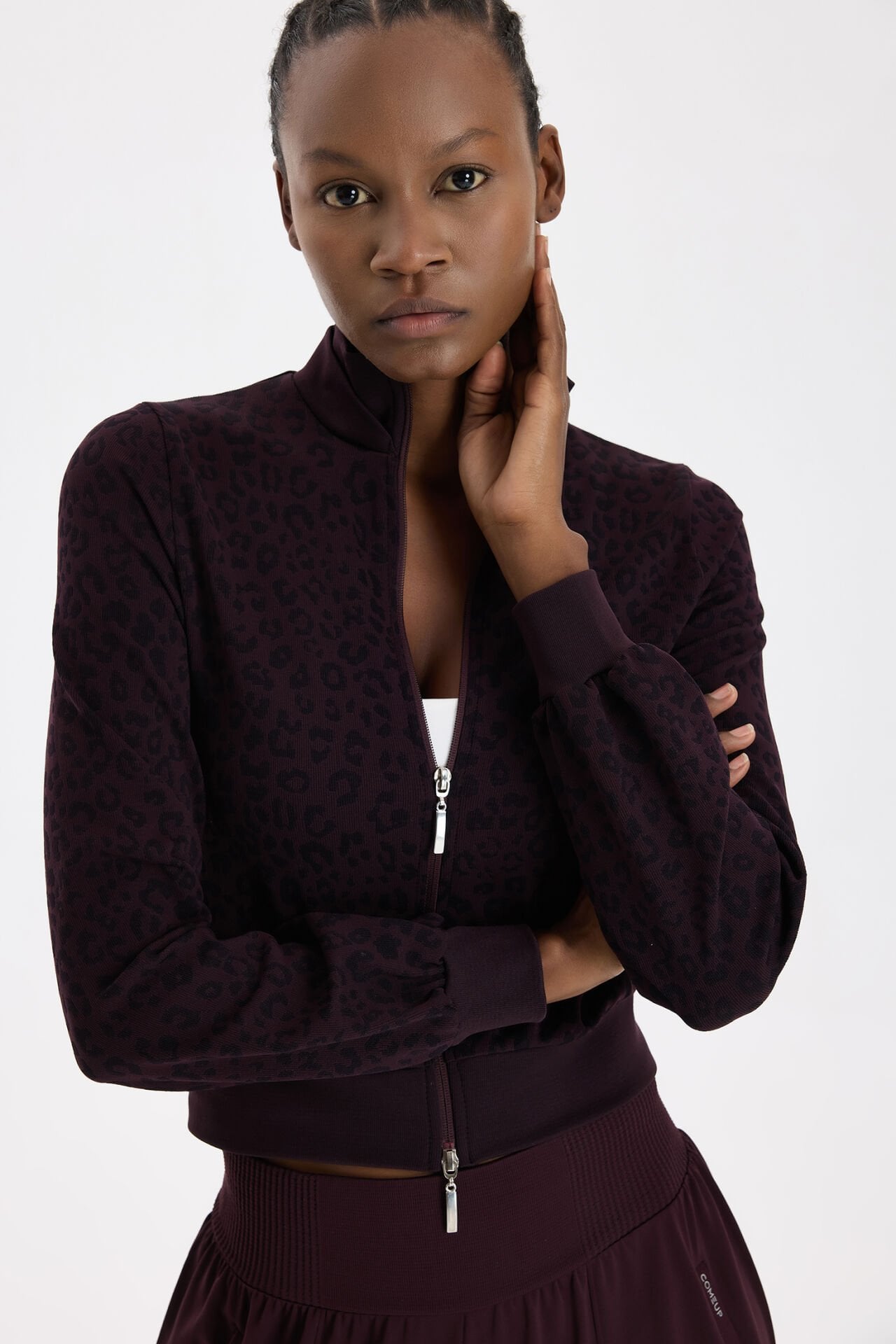 66791 Leopar Desenli Bomber Ceket, burgundy tonunun sofistike enerjisini leopar desenin güçlü karakteriyle bir araya getiriyor. Dikişsiz giyim teknolojisiyle üretilen bu özel model, yumuşak dokulu kumaşı sayesinde gün boyu konfor sağlarken modern ve iddialı bir görünüm sunar.