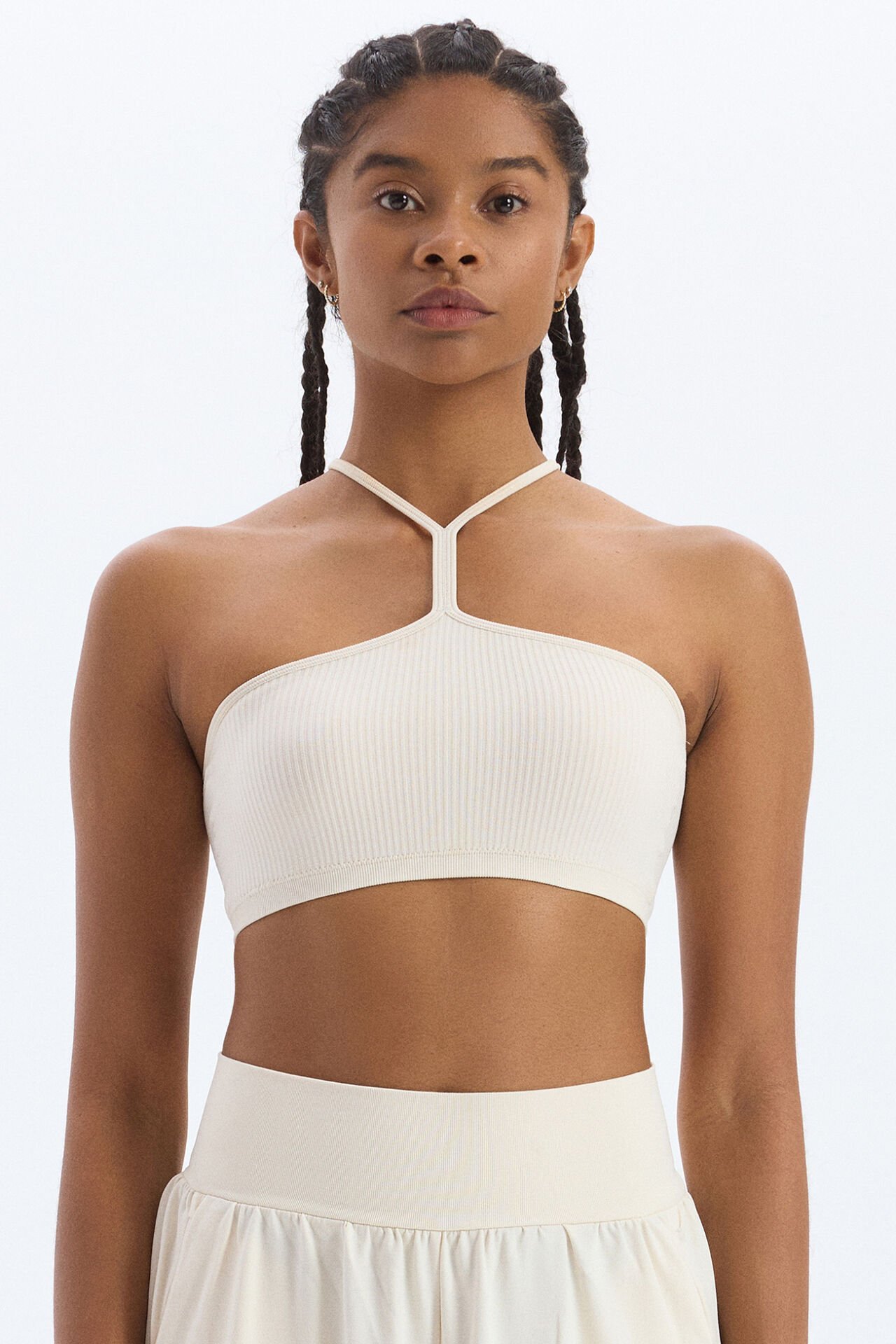 Boyun Askılı Sporcu Sütyeni Antik Beyaz