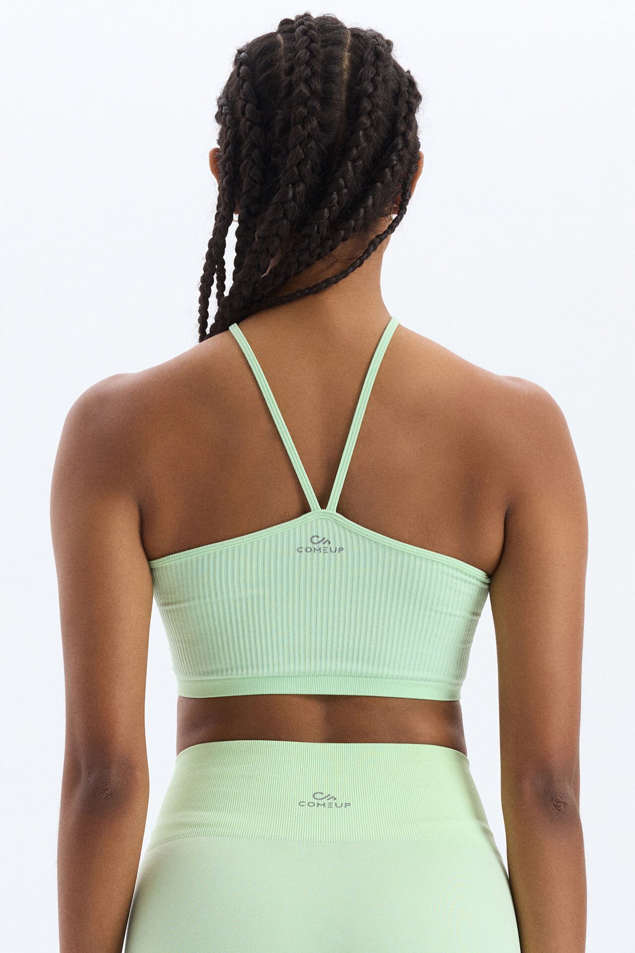 Buz yeşilinin taze ve ferah tonu, zarif bir dokunuş ekler, şıklığını ve rahatlığını ön plana çıkarır. Comeup sporcu sütyeni hem estetik hem de fonksiyonel özellikleriyle aktif yaşam tarzını destekler.