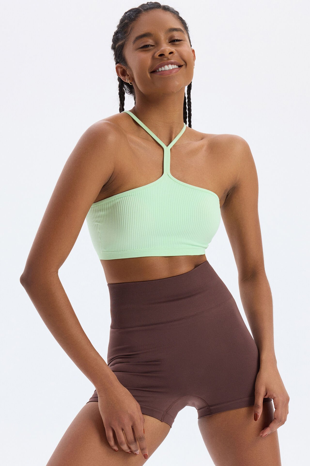 Enerjik ve şık bir görünüm için buz yeşili boyun askılı sporcu sütyeni, rahatlık ve fonksiyonu bir arada sunuyor. Takıp çıkarılabilir göğüs pedli tasarımı, kişisel ihtiyacına göre kolayca ayarlanabilir ve ekstra destek sağlar, böylece her an rahat hissedersin.