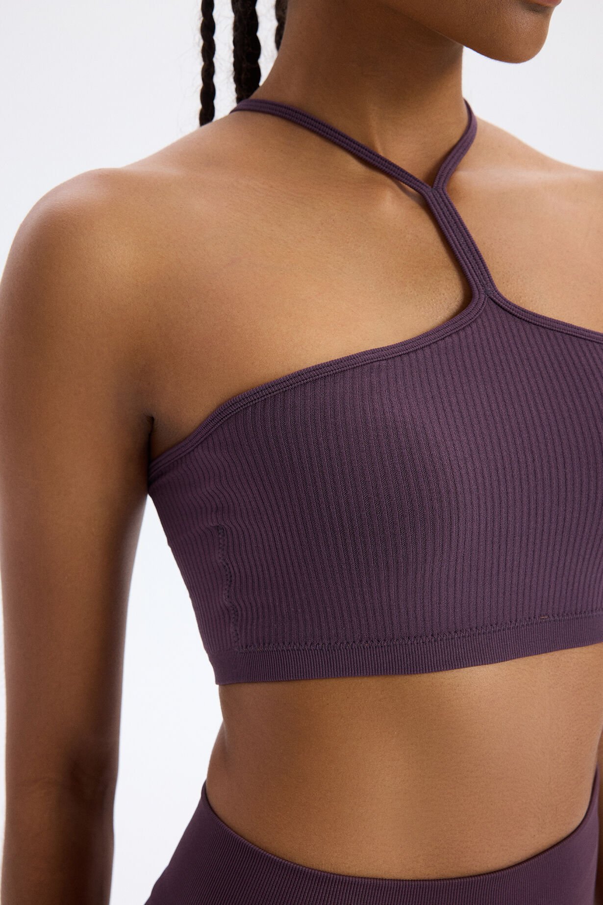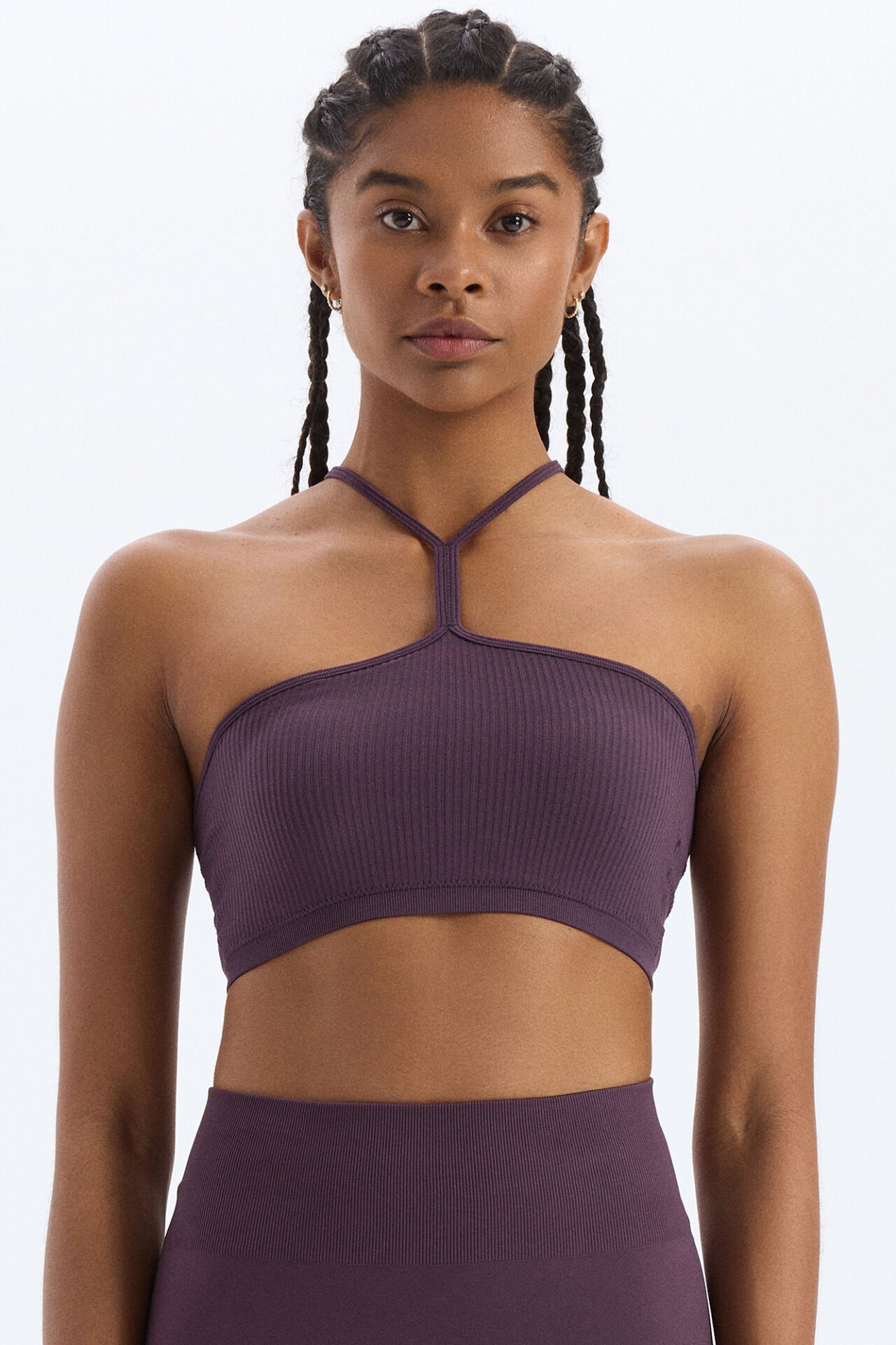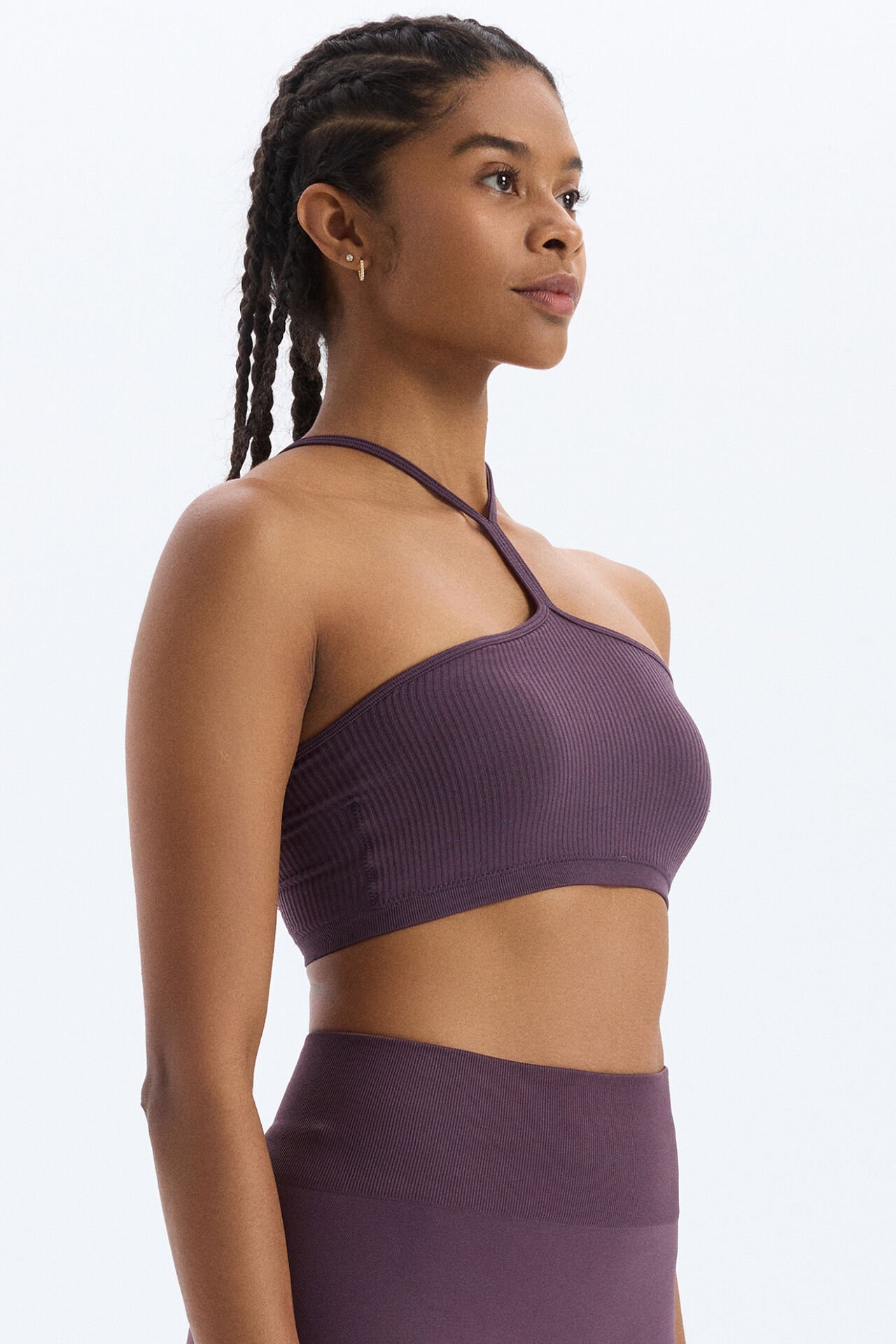 -Boyun askılı sporcu sütyeni. Takıp çıkarılabilir göğüs pedli tasarım.