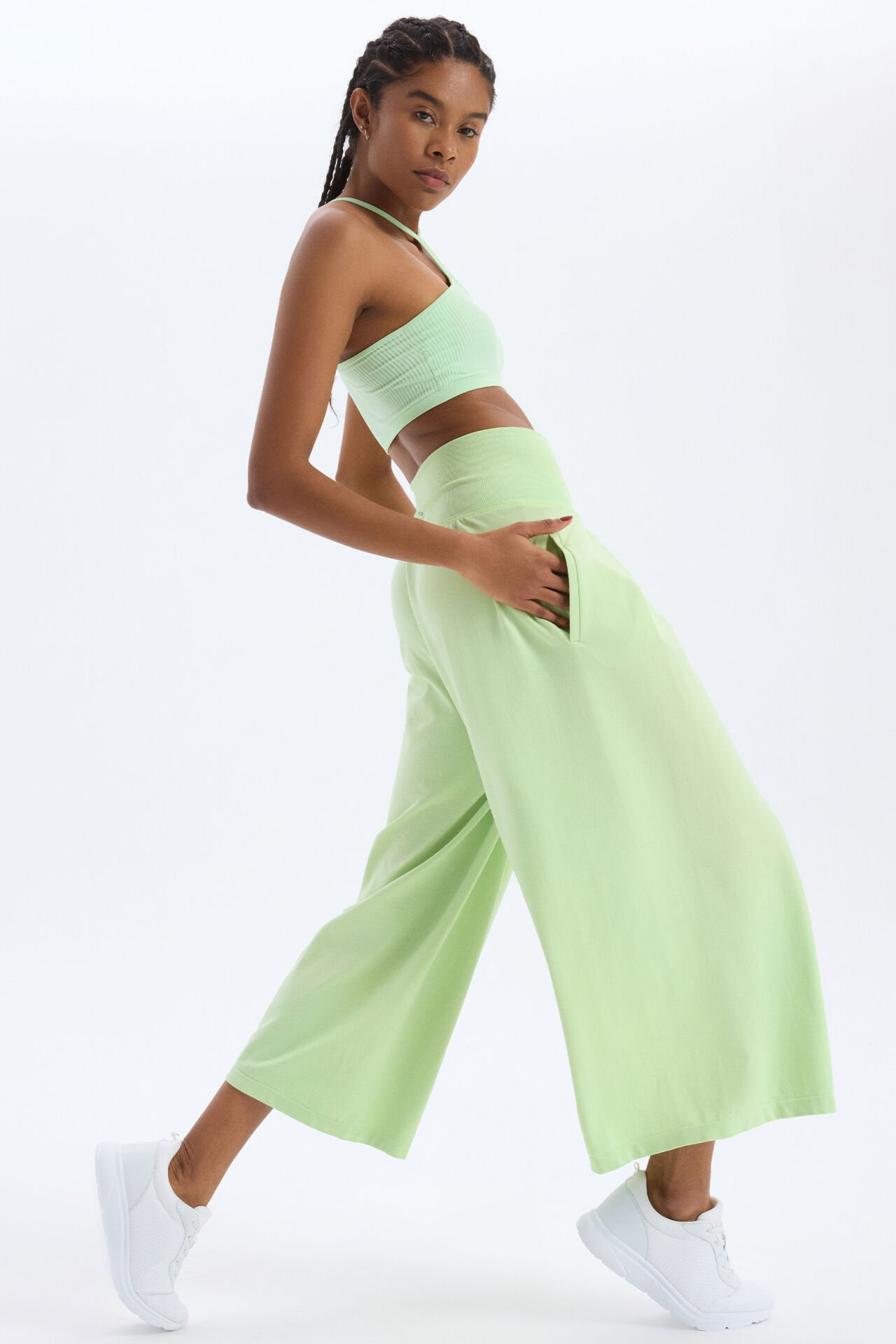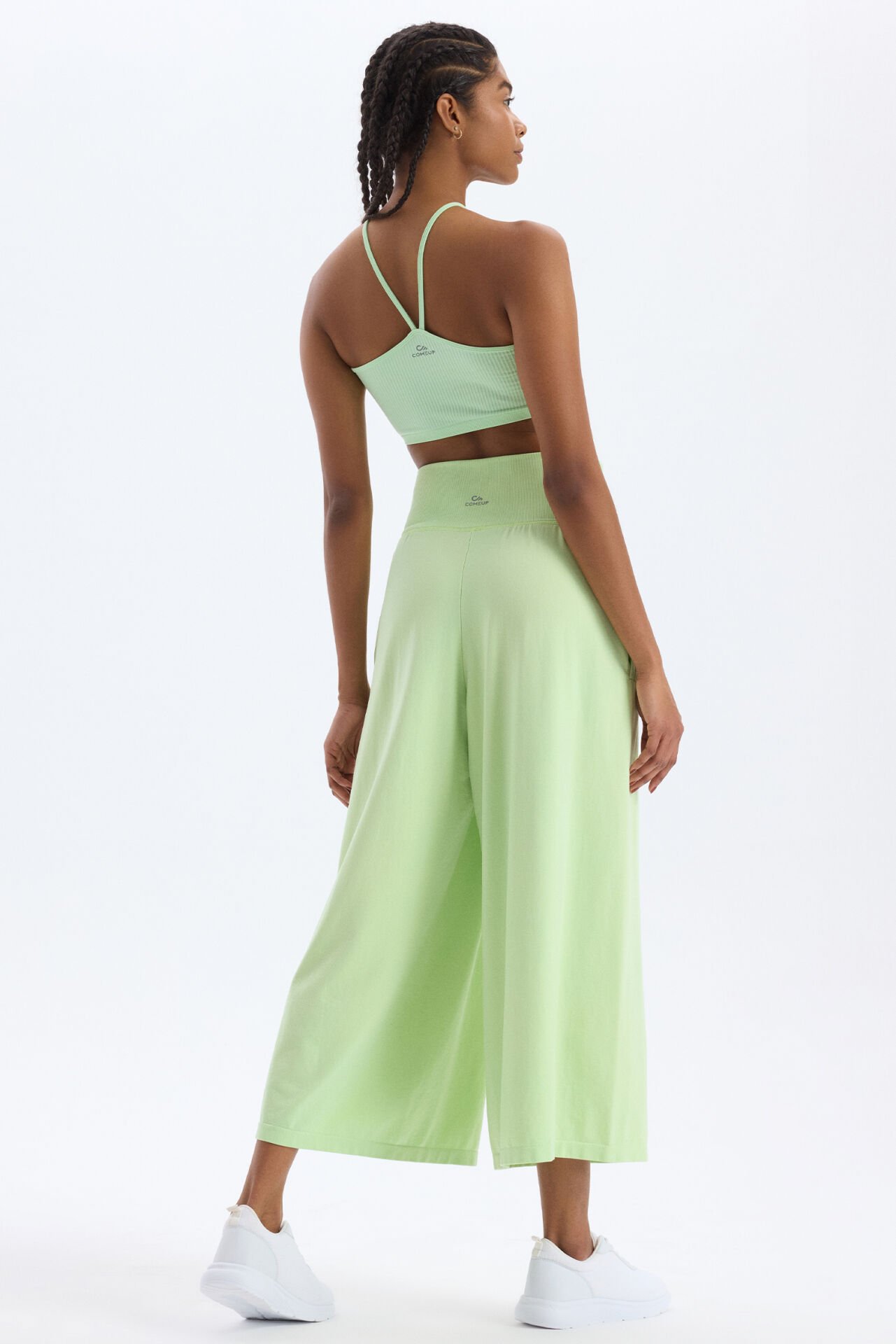 Rahatlığı ve şıklığı bir araya getiren cepli culotte pantolon, doğadan ilham alan buz yeşili rengiyle gardırobuna ferah bir enerji katıyor. Sakin ve zarif rengiyle göz kamaştırırken hafif ve yumuşak dokusu sayesinde gün boyunca seni sarıp sarmalayan bir konfor sunuyor.