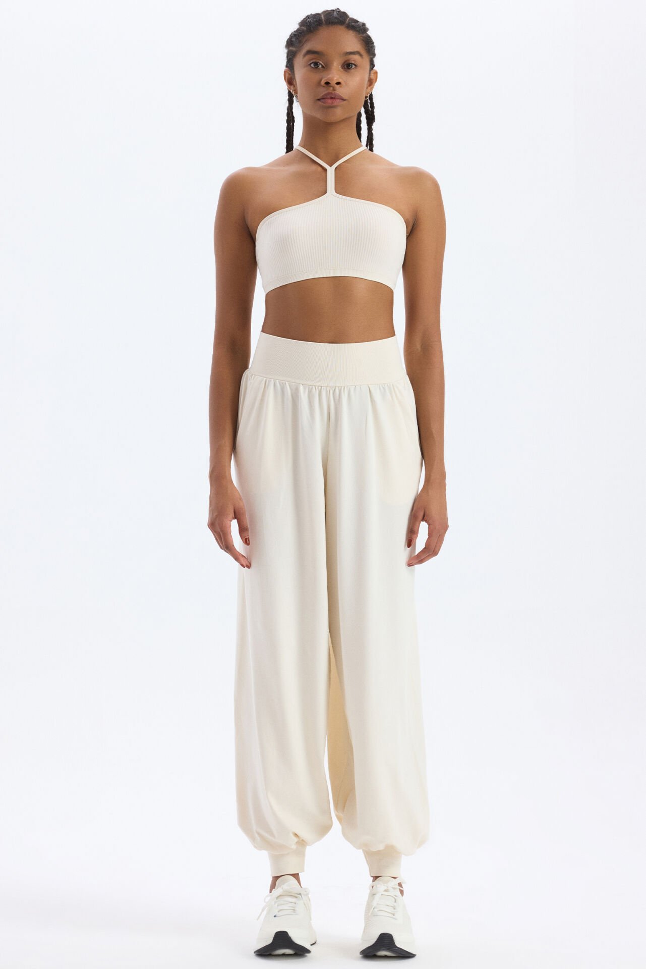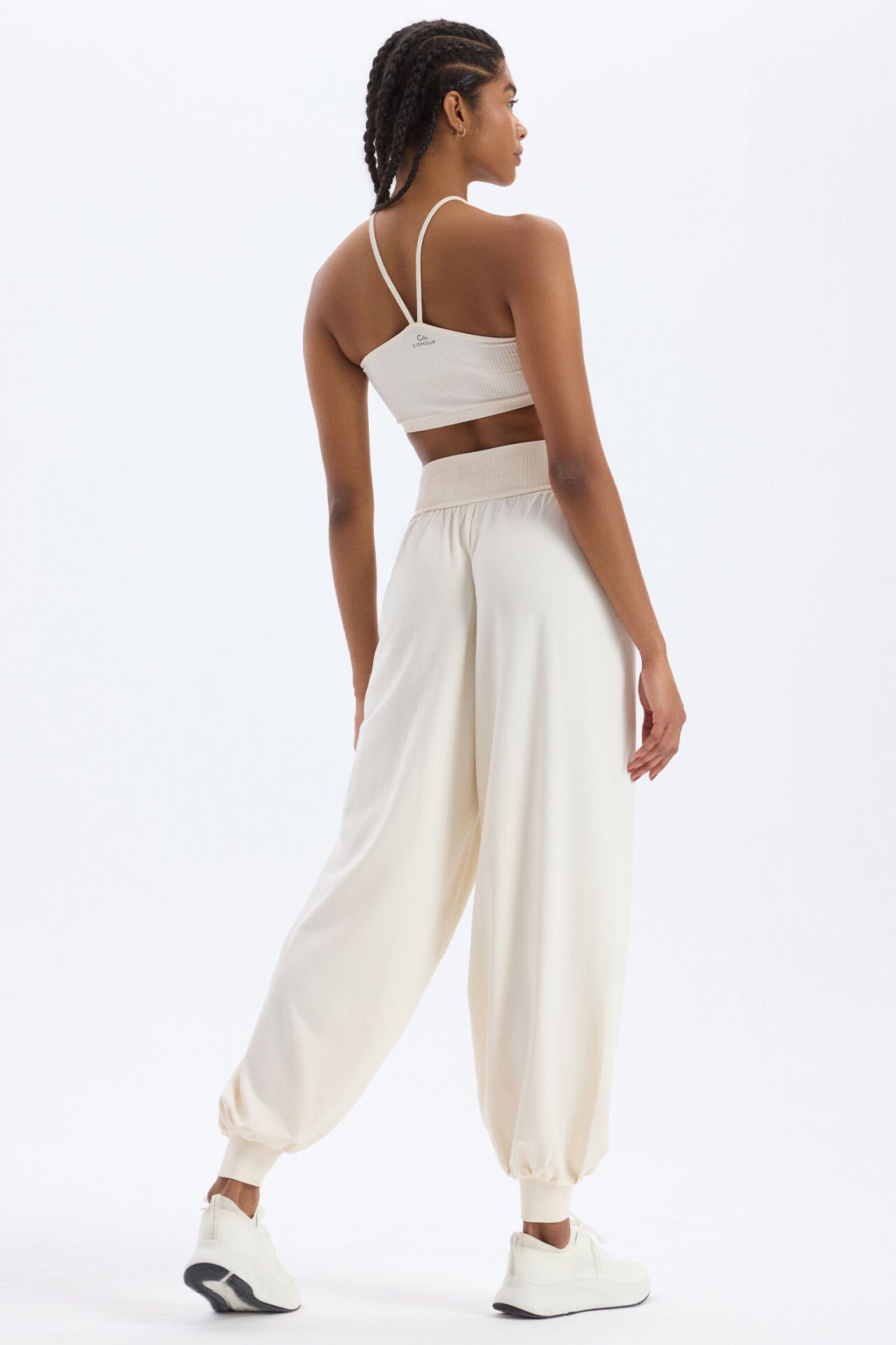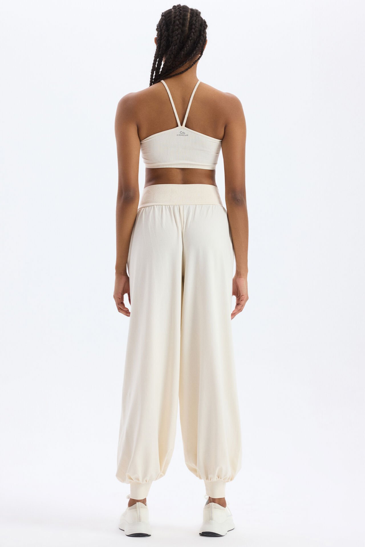 Antik beyaz cepli şalvar pantolon, şıklığını ve rahatlığını bir arada sunarak hem spor aktivitelerinde hem de günlük yaşamda mükemmel bir seçenek olacak.