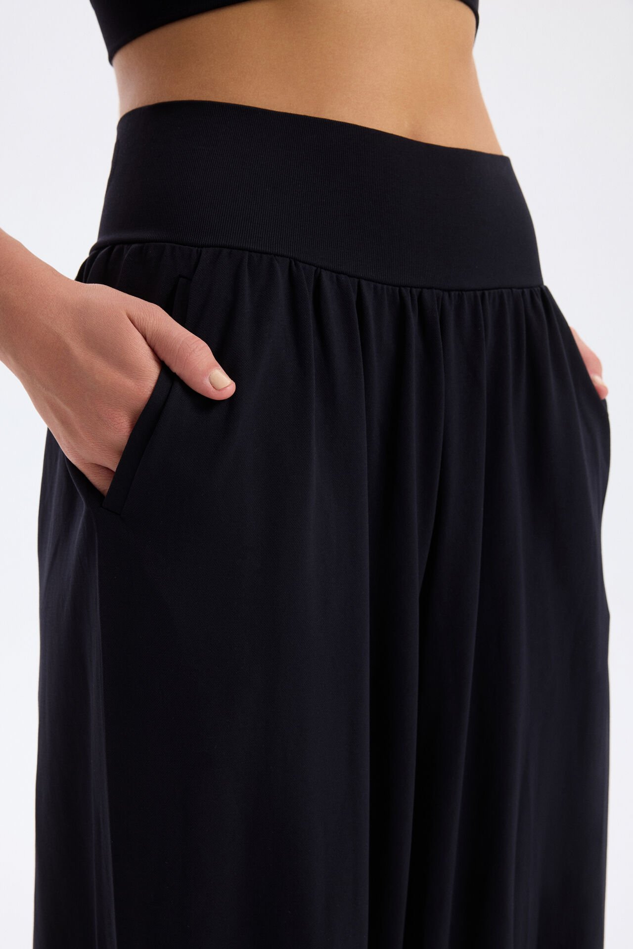 Yumuşak ve hafif kumaş dokusuyla öne çıkan şalvar pantolon, dikişsiz ve esnek yapısı sayesinde vücuda nazikçe oturur, hareketlerini kısıtlamadan özgürce hareket etmeni sağlar. İster evde, ister yürüyüşte, ister spor salonunda ol; her anında maksimum konfor sunar.