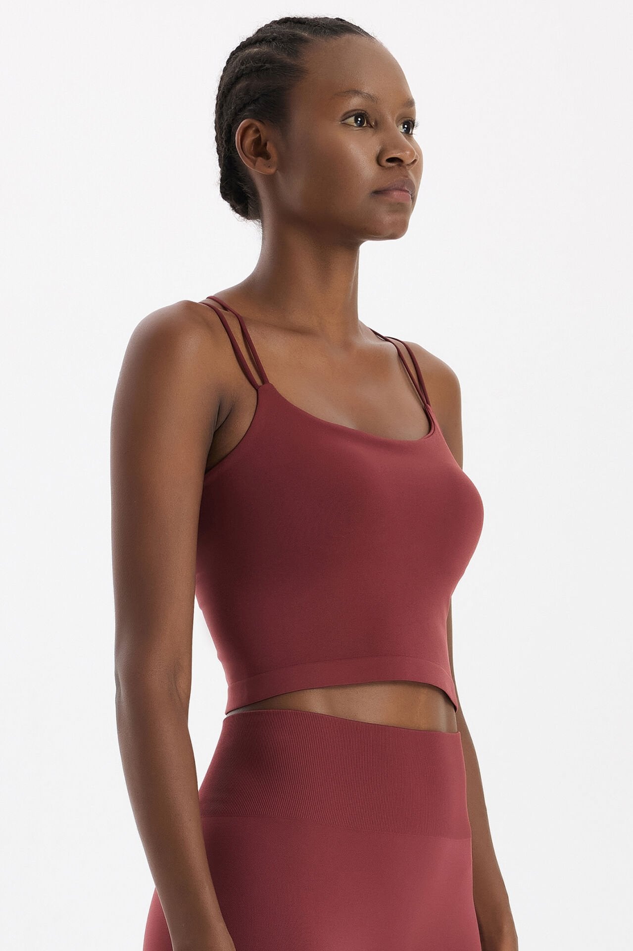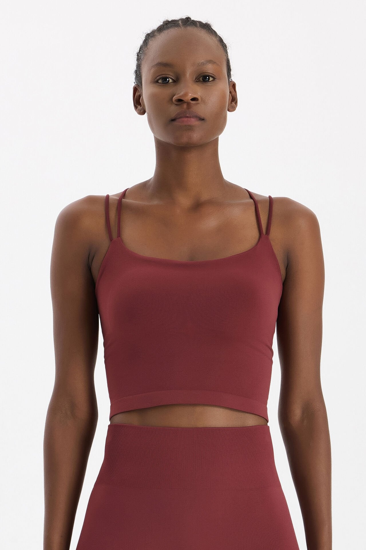 66779 Çift İp Askılı Pedli Atlet, göz alıcı kestane bordo rengiyle enerjik ve zarif bir görünüm sunar. Dikişsiz giyim teknolojisiyle üretilen bu spor atlet, yumuşak dokulu kumaşı sayesinde maksimum konfor sağlar.