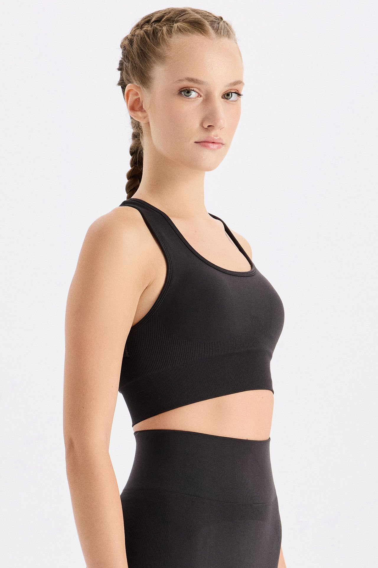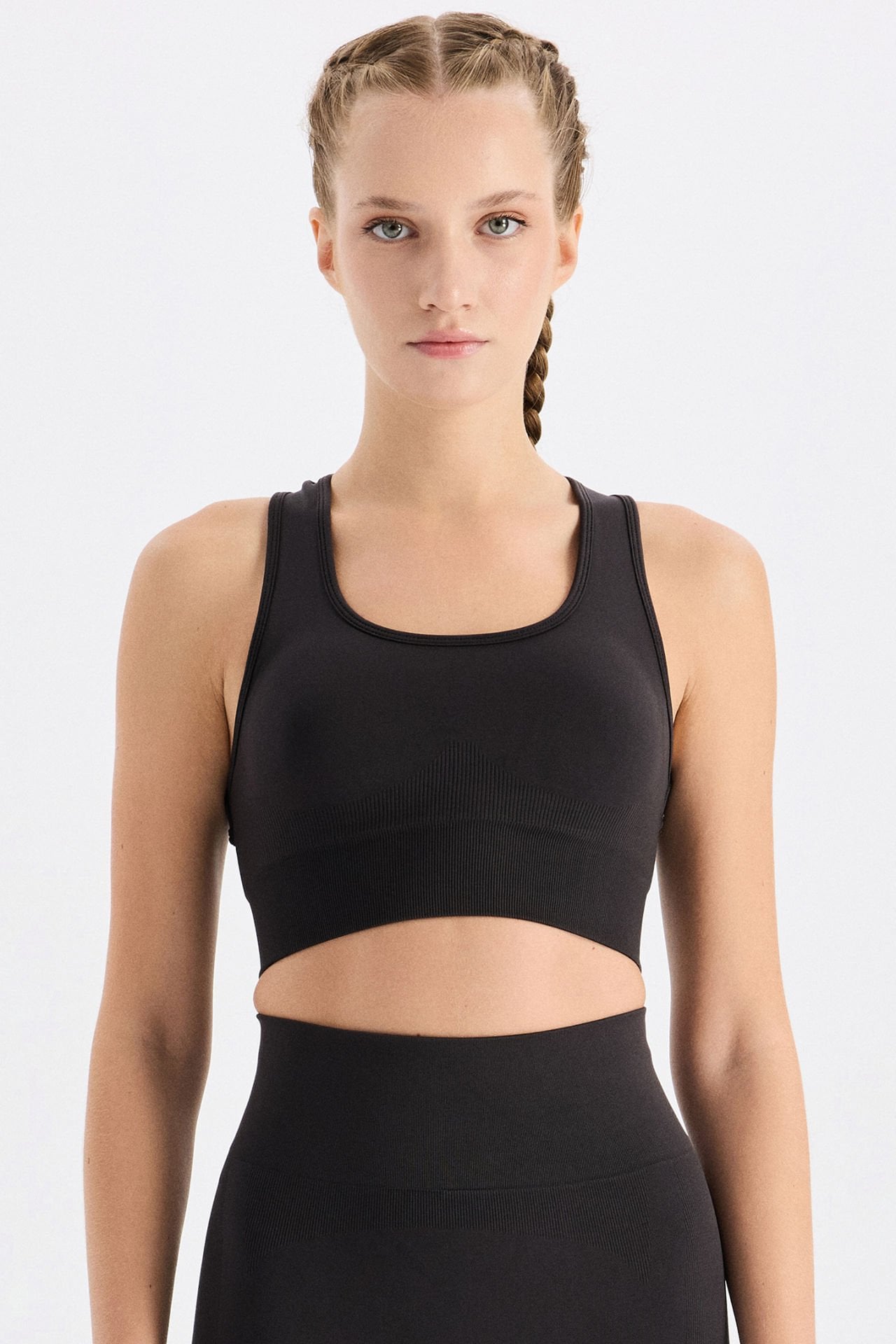 Çift Pencere Detaylı Sporcu Sütyeni Küllü Siyah