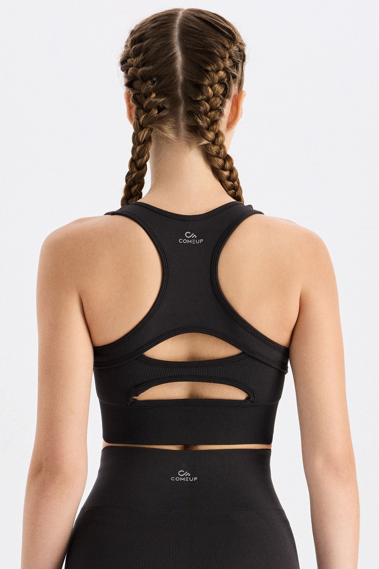 · Sırt çift pencere tasarımı ve rip detayların yer aldığı sporcu sütyeni sportif kombinlerinize şıklık katar.