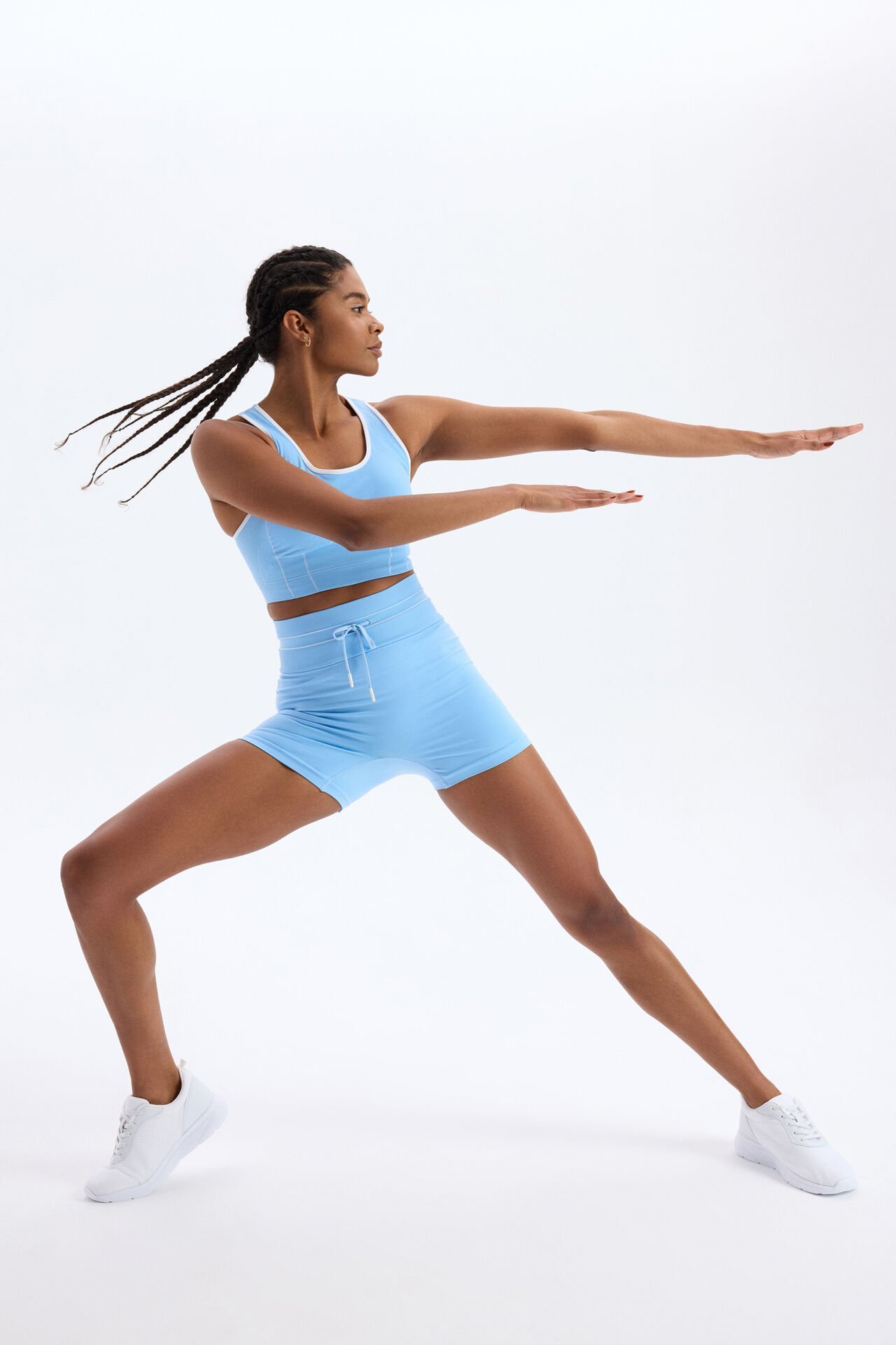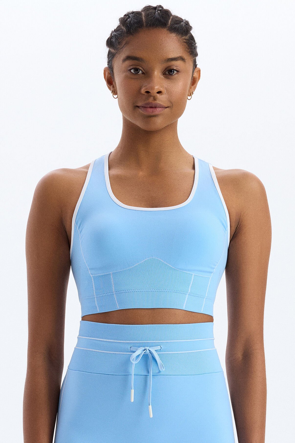 Soft mavi tonu ile huzur veren bir estetik görünüm sunan spor sütyen, hem sportif aktivitelerinde hem de günlük kullanımda stilinin plana çıkaracak.