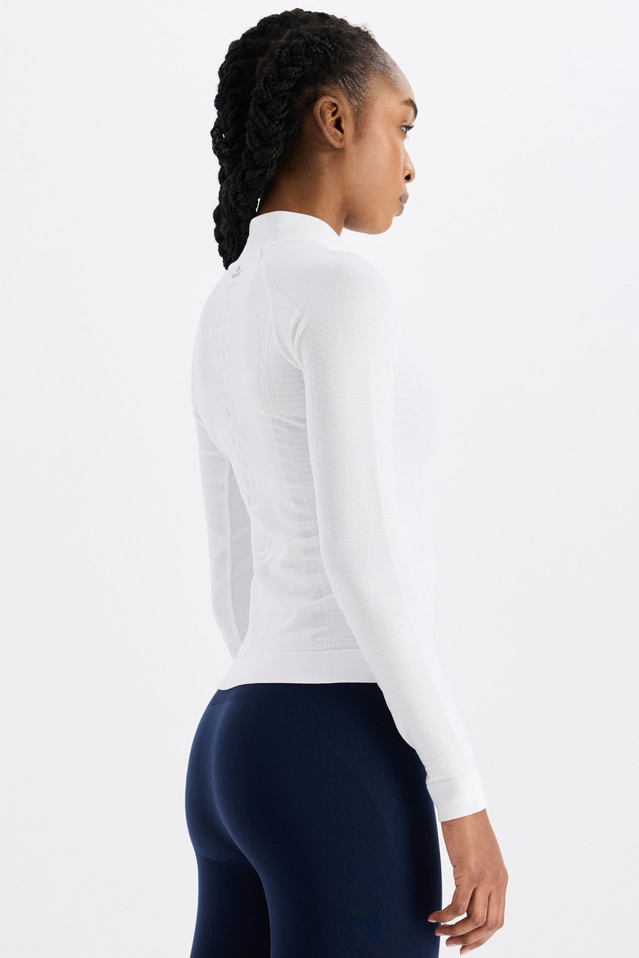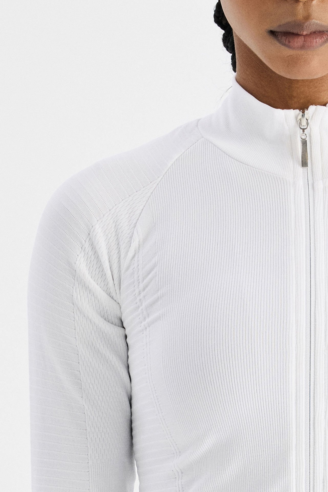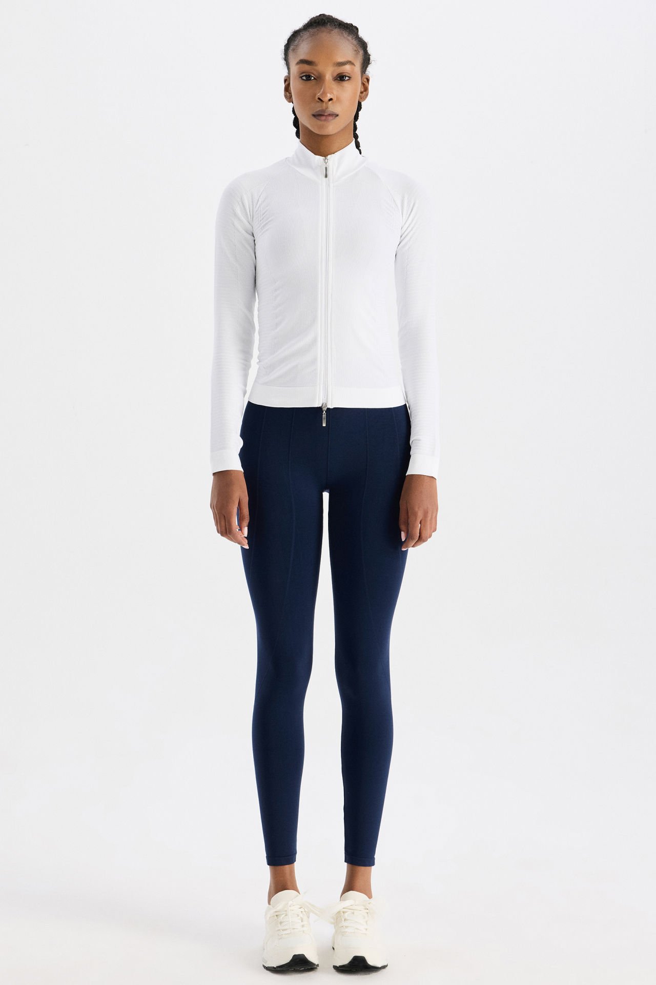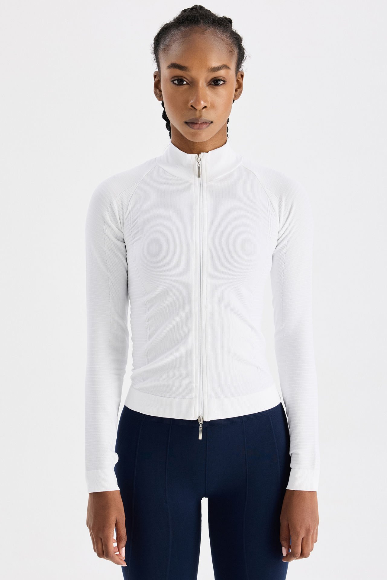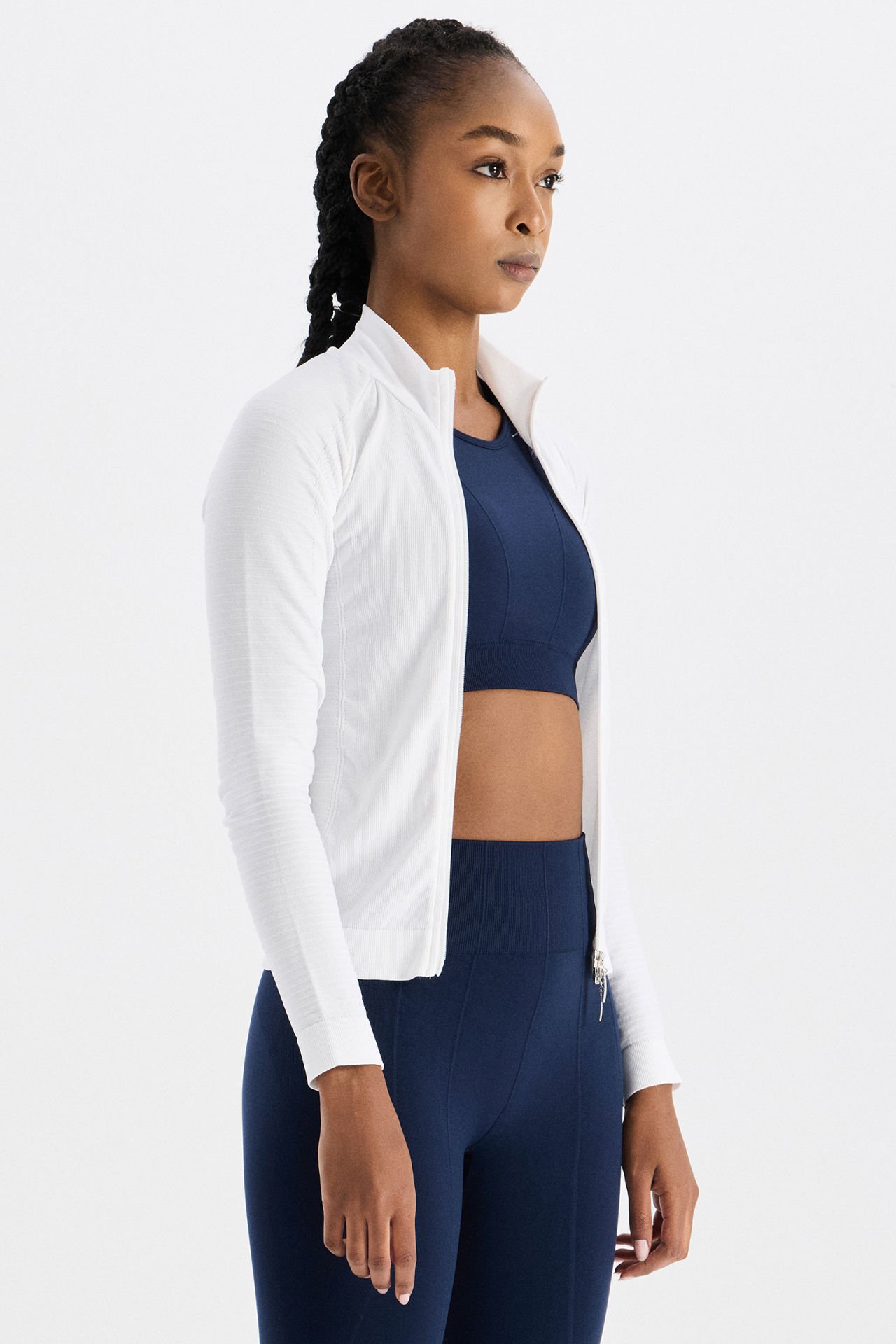 Dikişsiz Fermuarlı Spor Ceket Beyaz