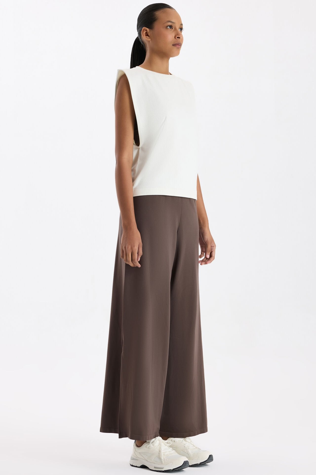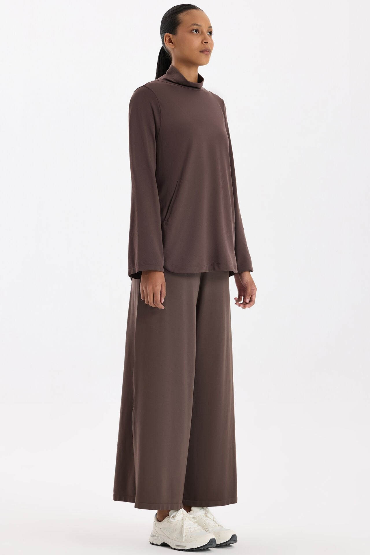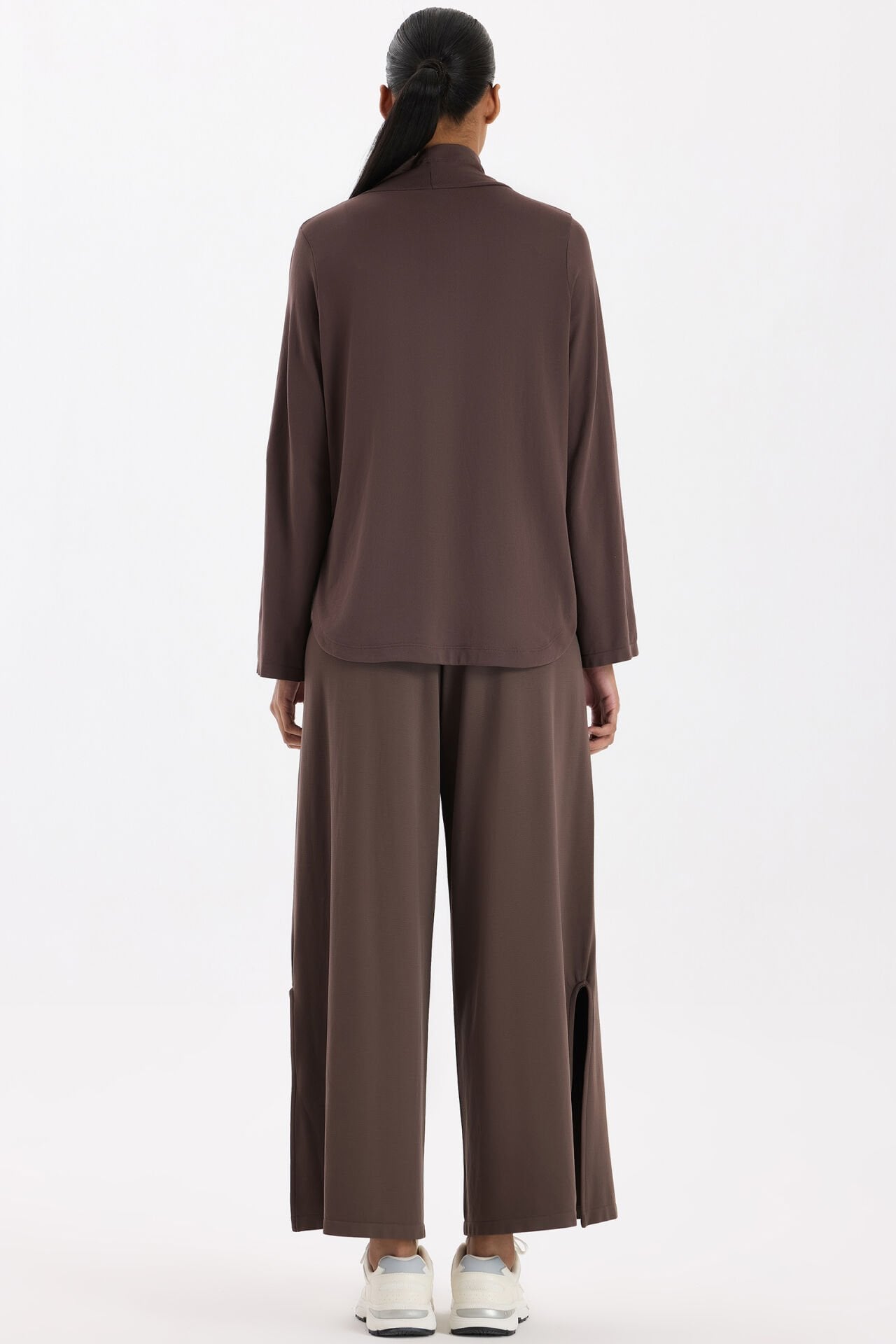 Dikişsiz Yırtmaçlı Pantolon Kakao Dansı