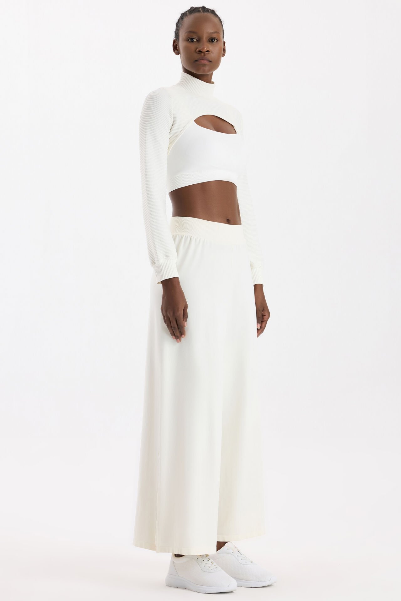 Dikişsiz Yırtmaçlı Pantolon Kırık Beyaz