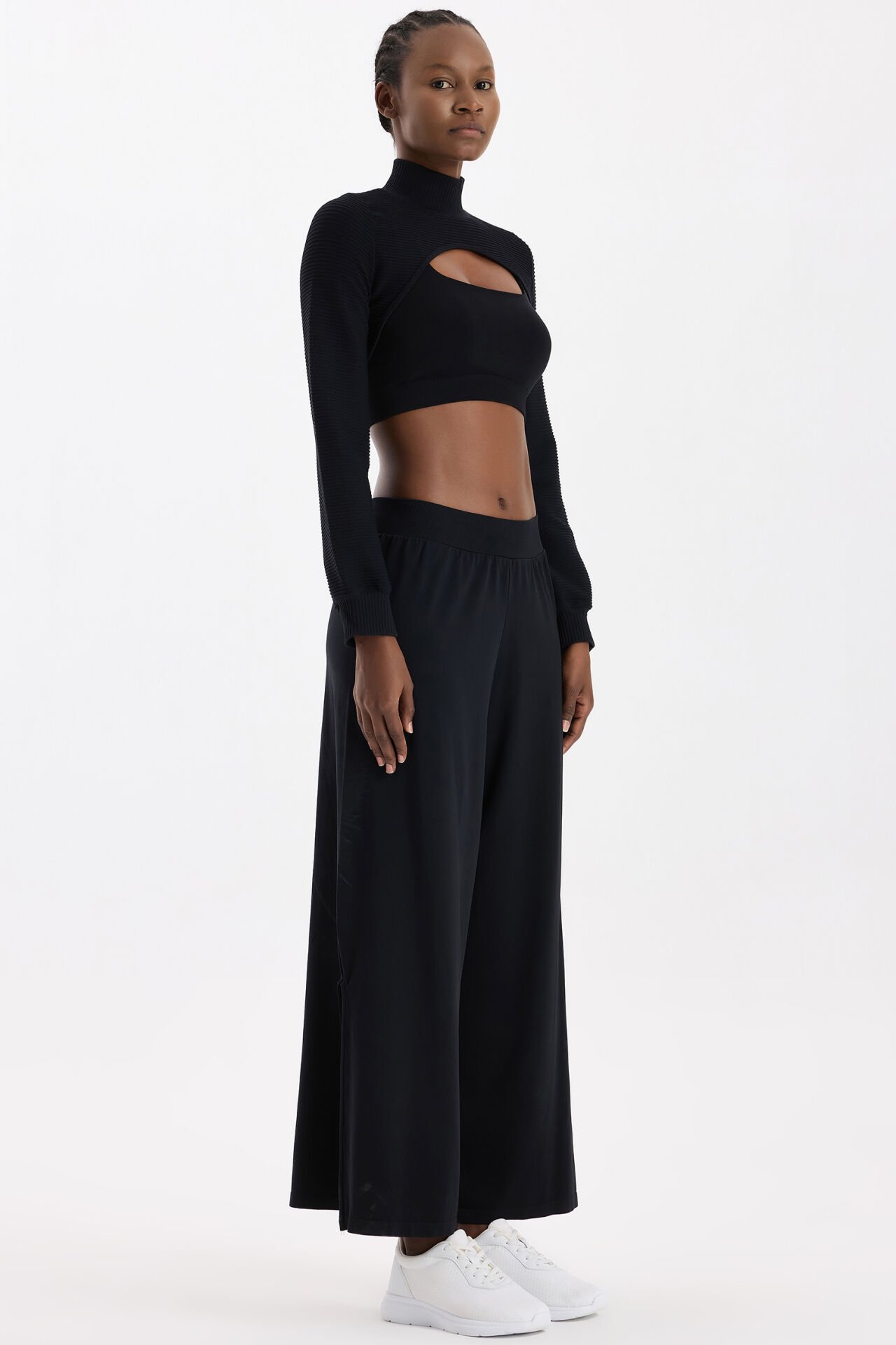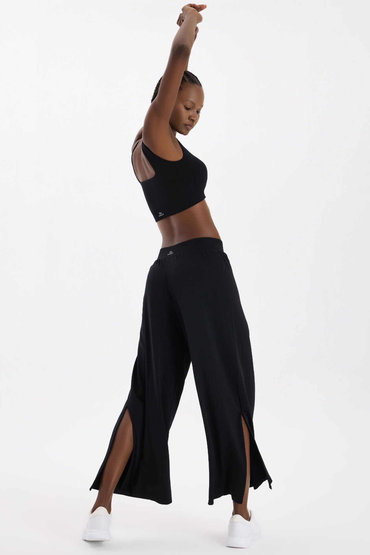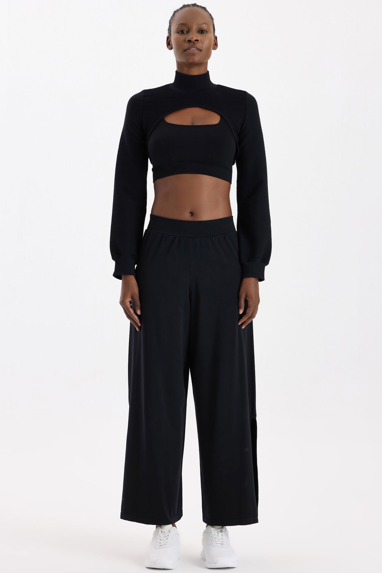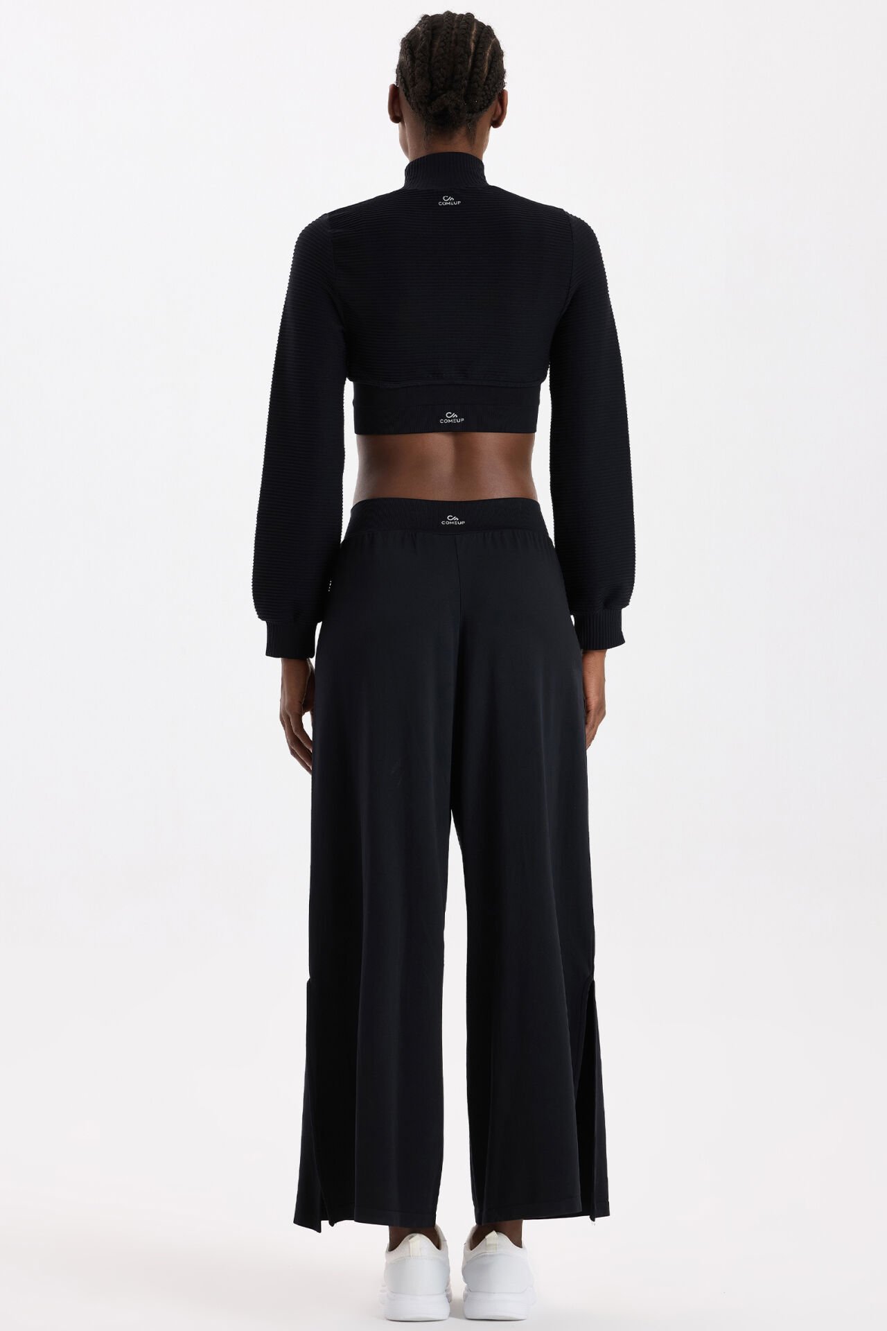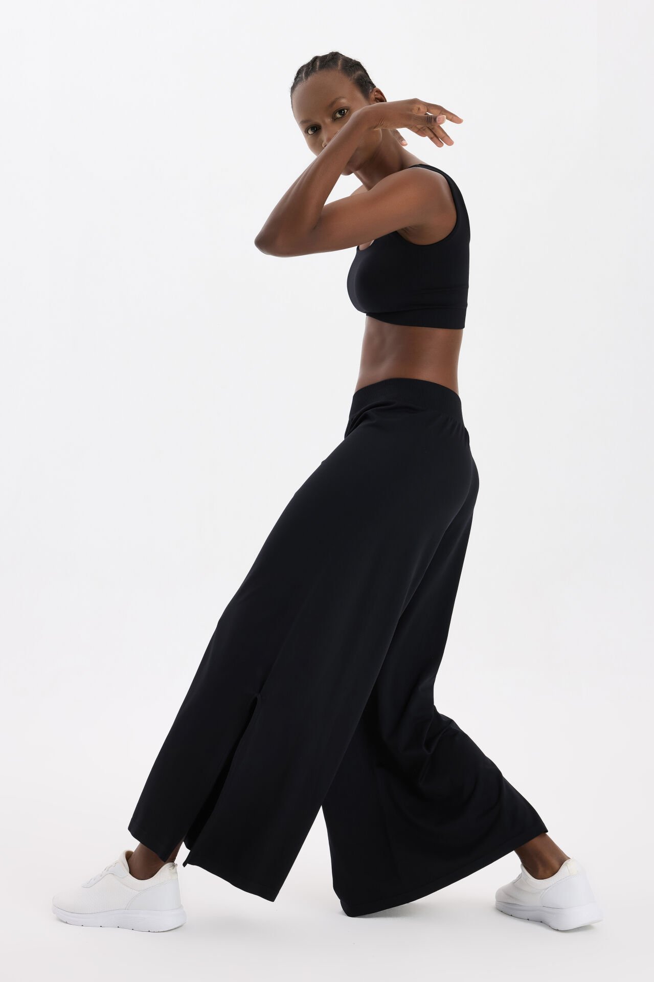 Dikişsiz Yırtmaçlı Pantolon Siyah