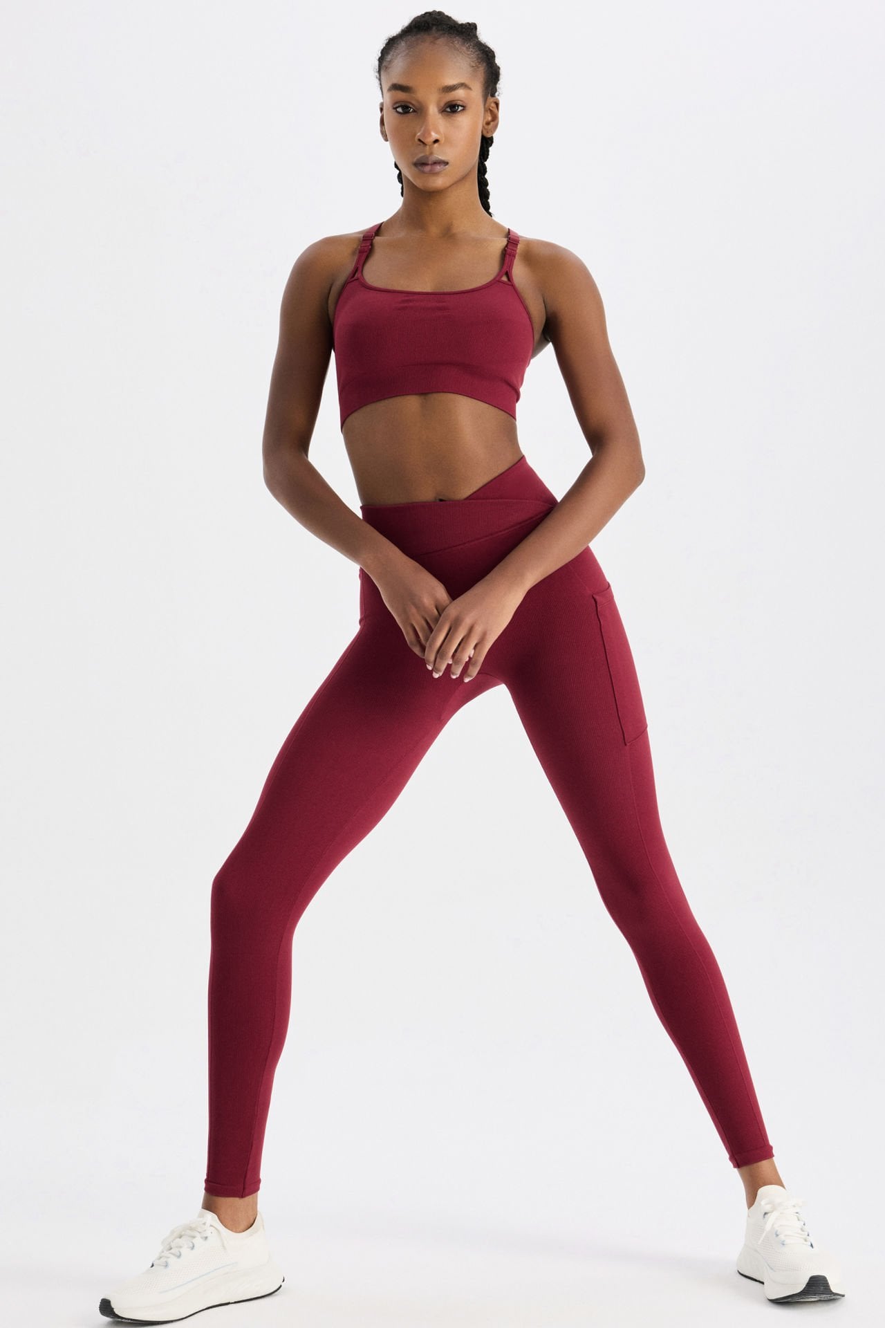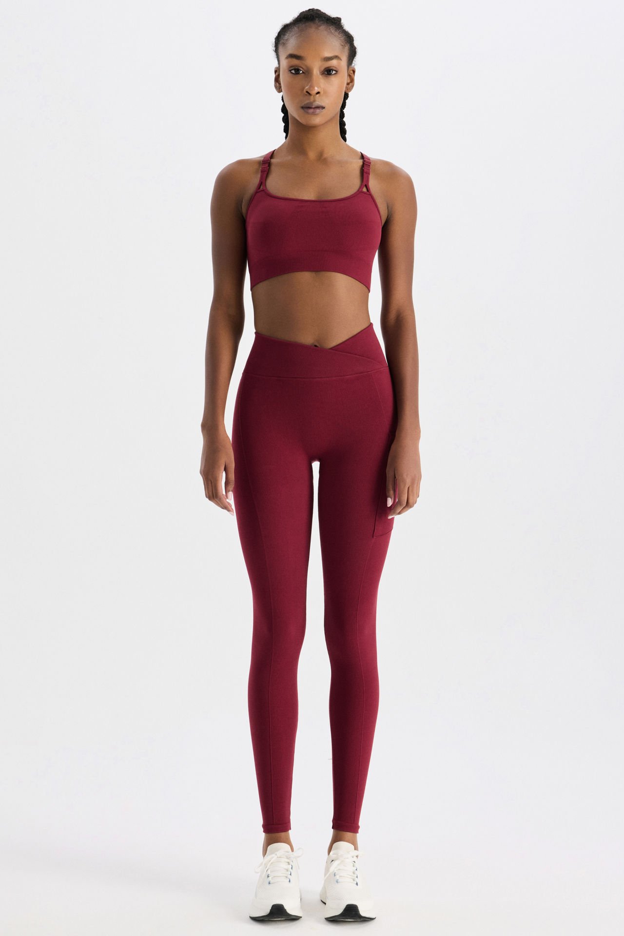 Fitilli Cepli V Çapraz Bel Spor Tayt Scarlet Kırmızısı