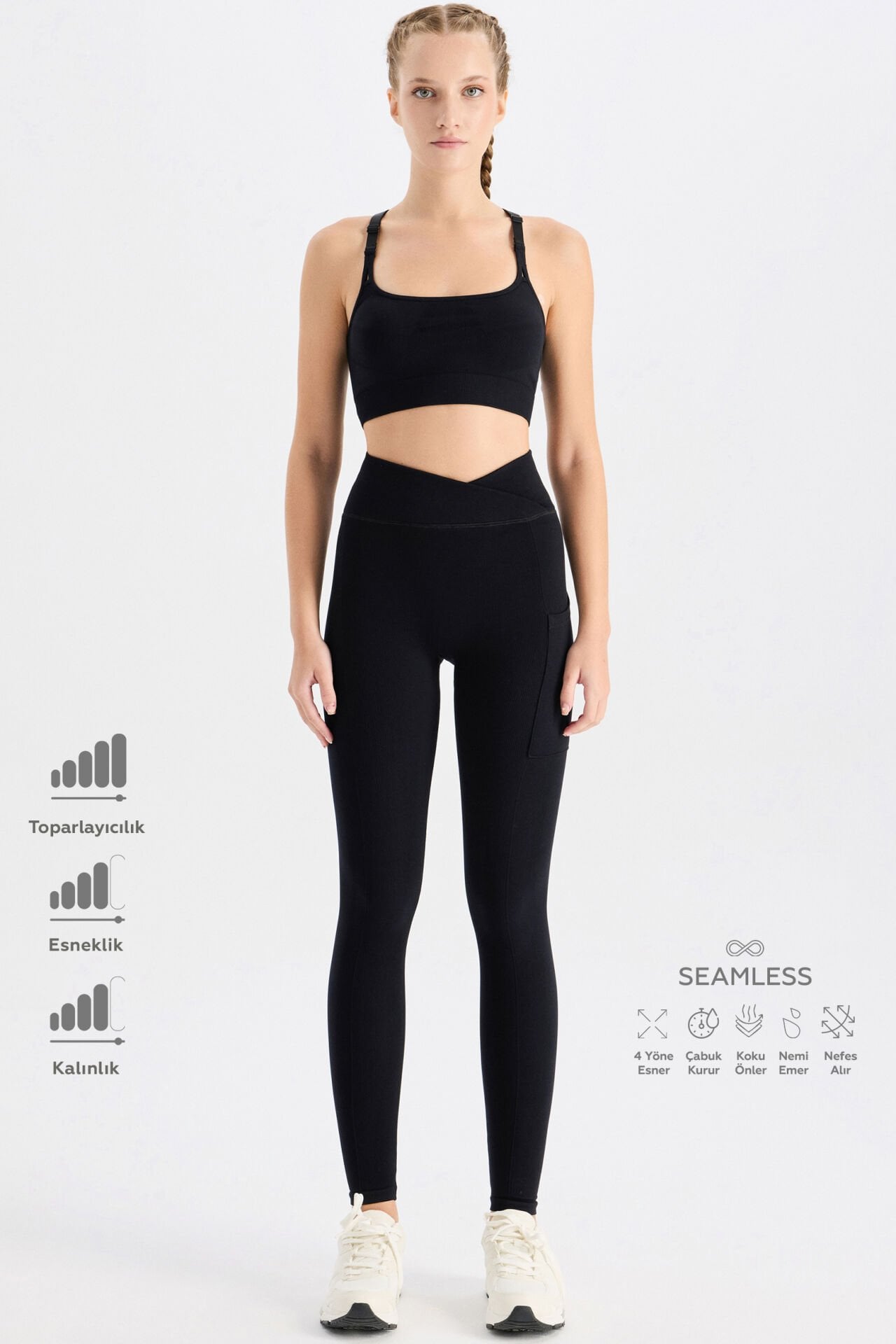 -Tayt modelimiz, dikişsiz kumaş teknolojisi ile üretilmiştir.