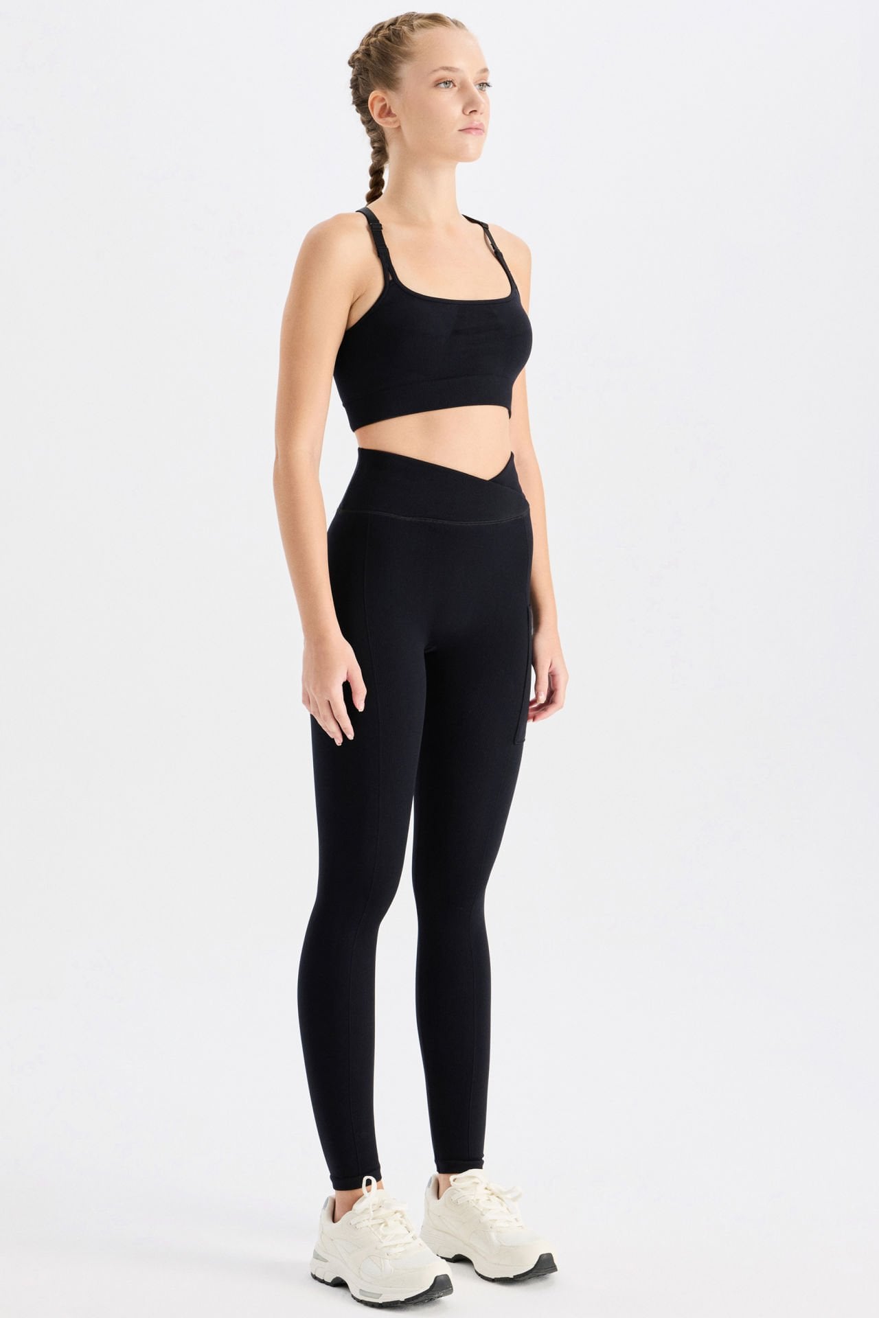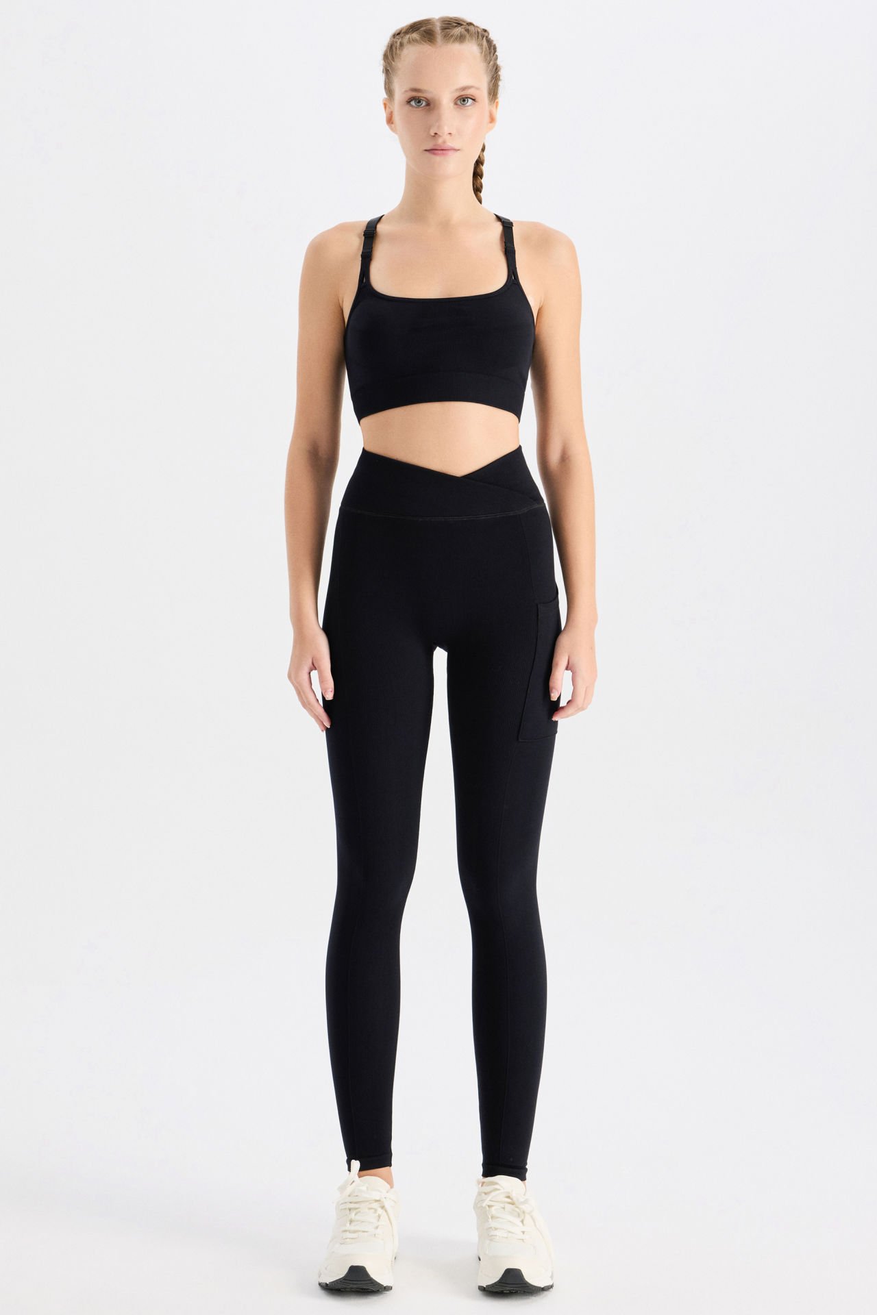 Fitilli Cepli V Çapraz Bel Spor Tayt Siyah