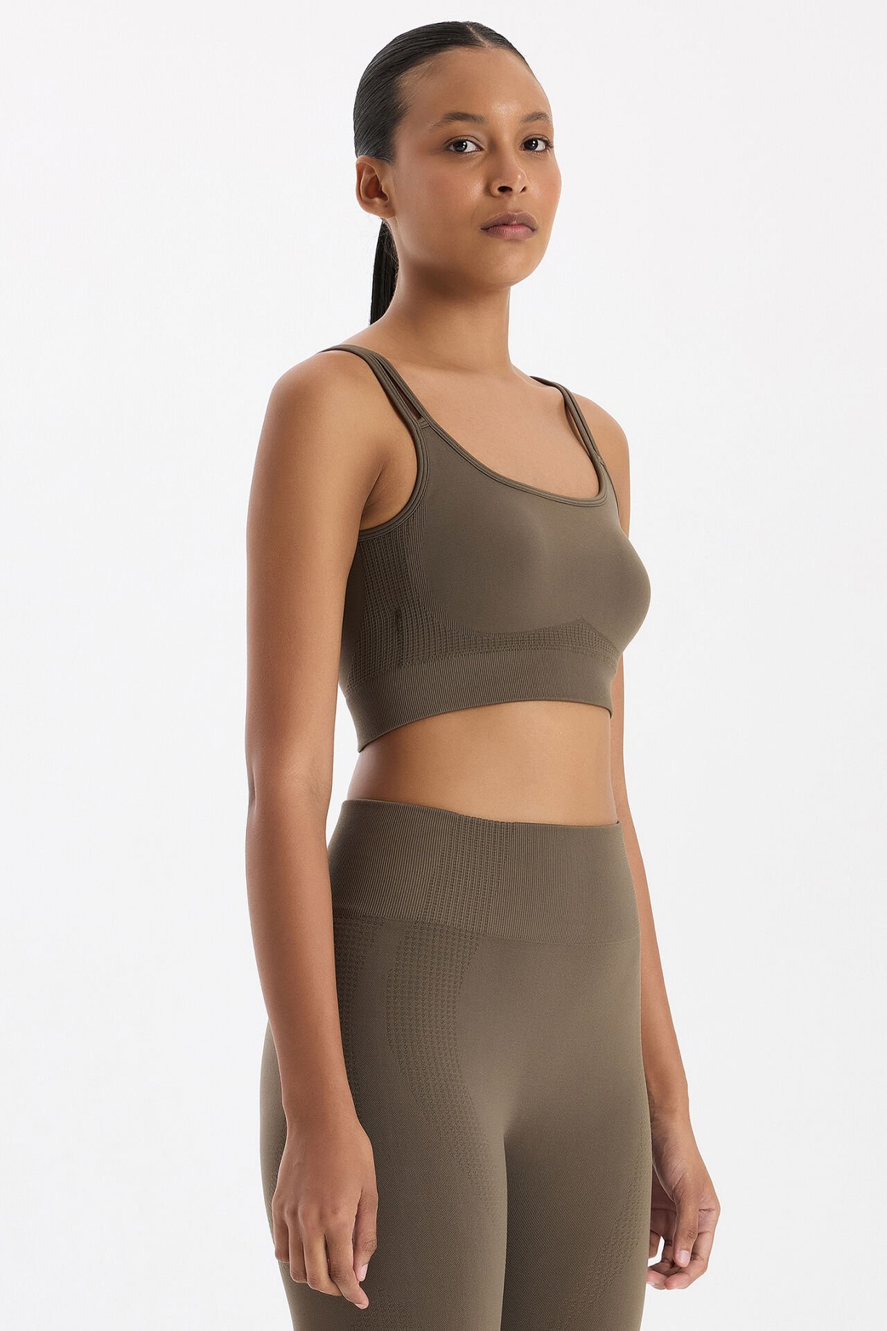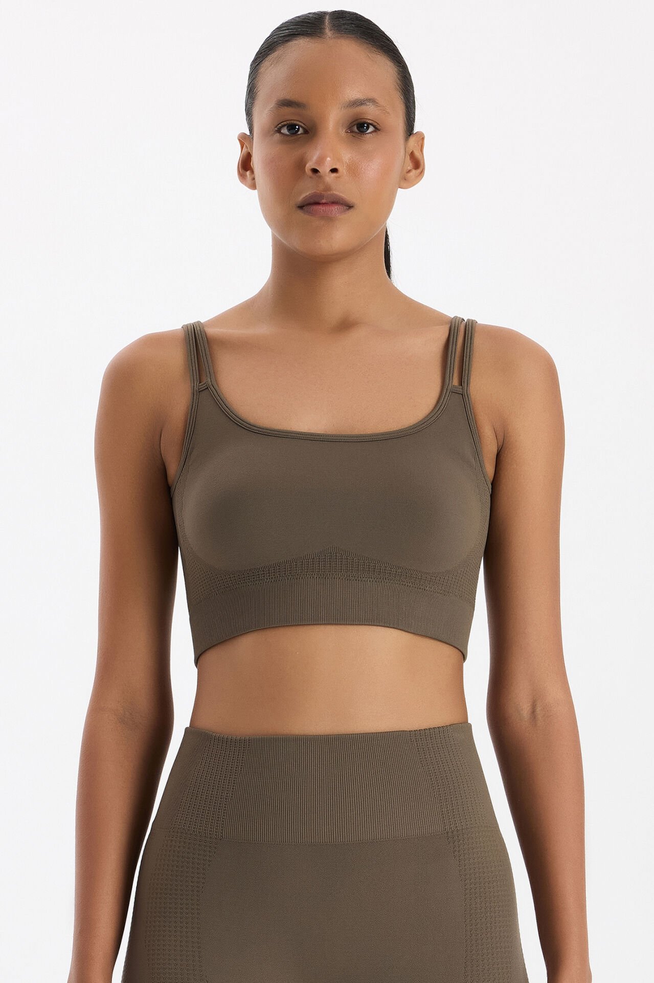 Jakar Detaylı Çift Askılı Sporcu Sütyeni Küllü Haki