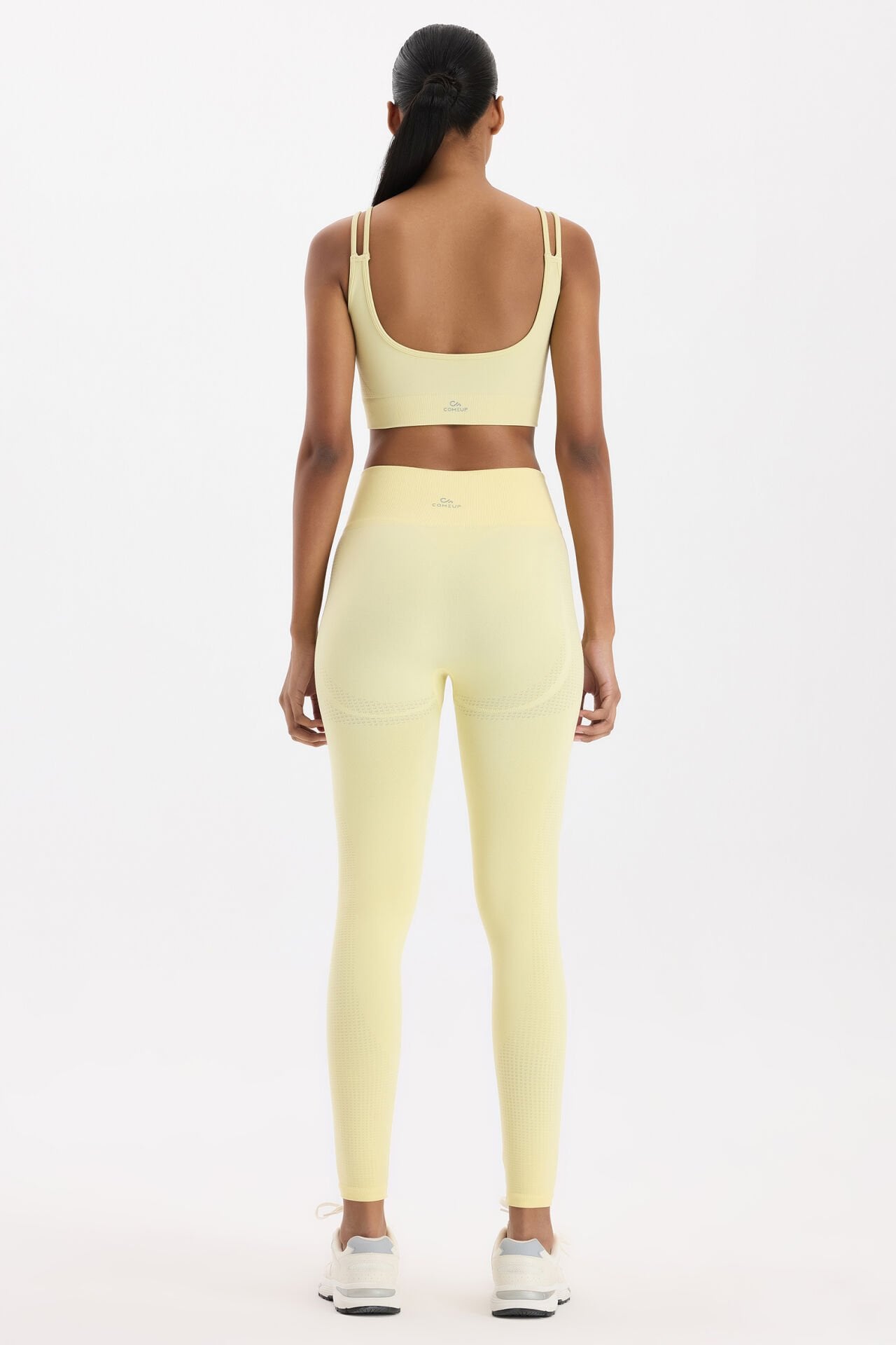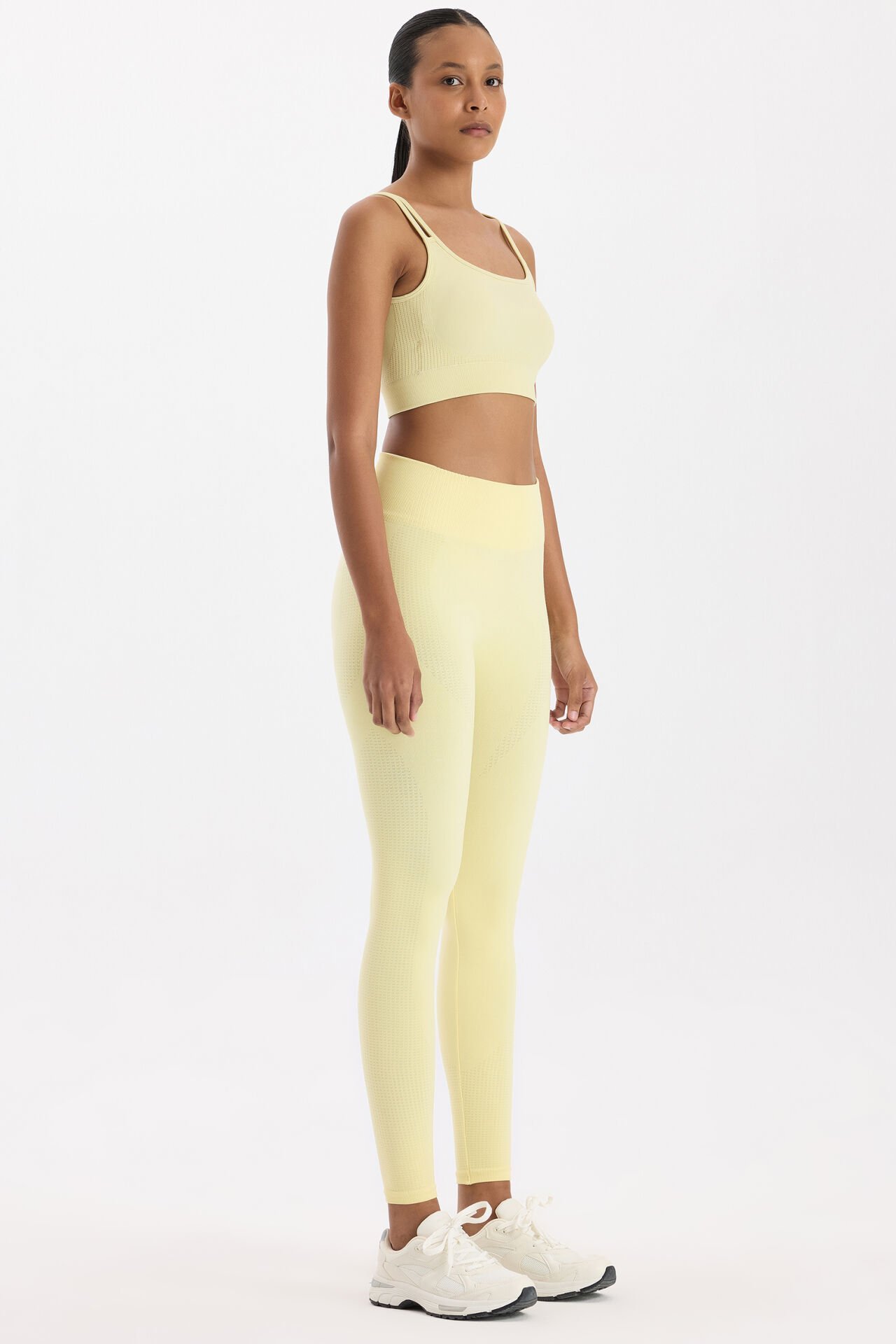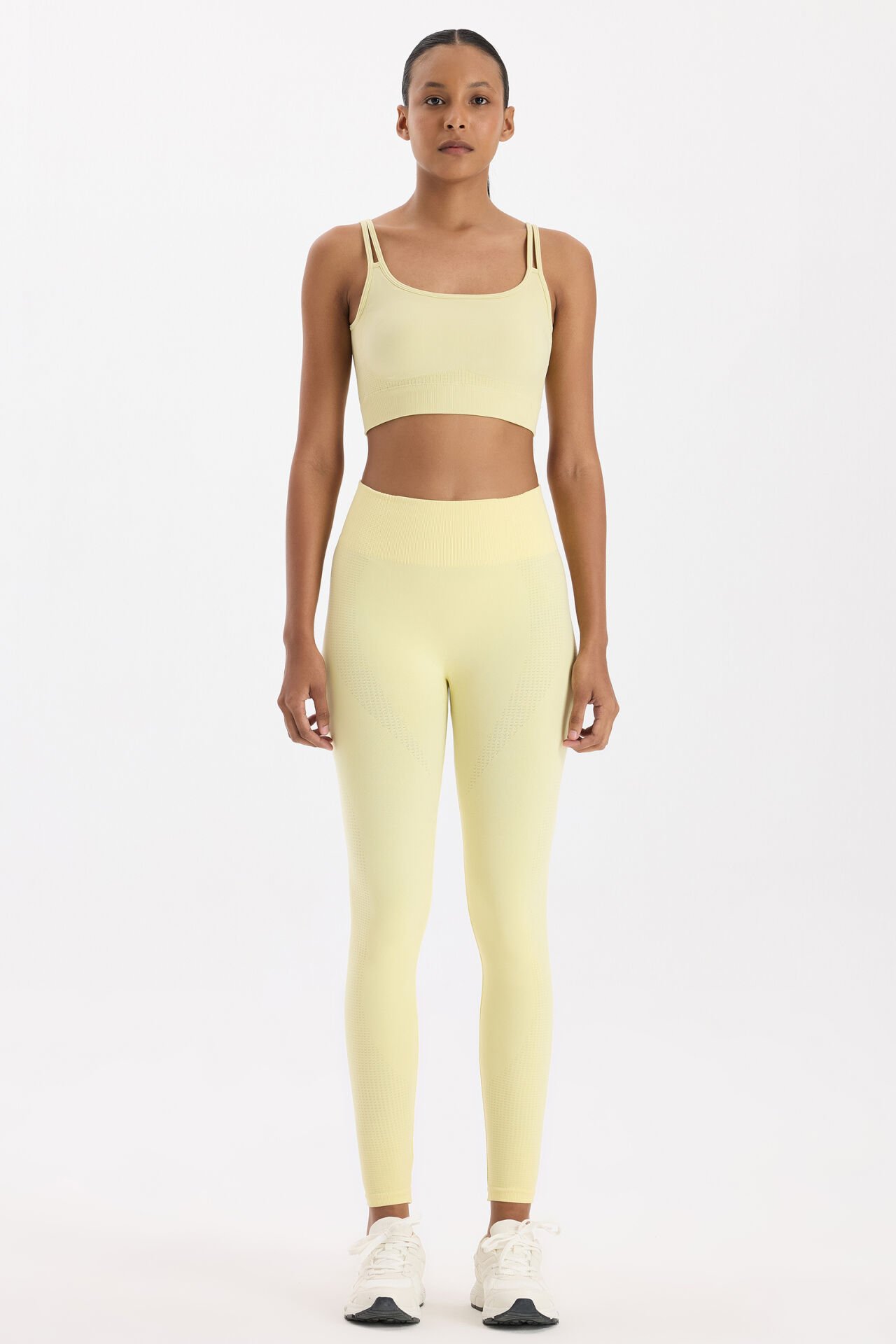 Spor dolabına ferah ve modern bir dokunuş eklemek isteyenler için tasarlanan Jakar Detaylı Spor Tayt – Açık Sarı, soft rengi ve şekillendirici dokusuyla dikkat çeker. Bacak hattı boyunca uzanan ve kalça altında yoğunlaşan jakar paneller, silüeti optik olarak daha ince ve toparlanmış gösterirken tayta şık bir dokusal hareket kazandırır.