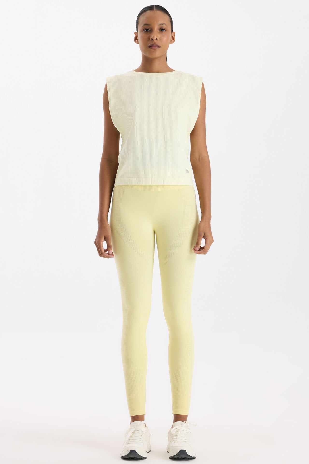 Dikişsiz üretim teknolojisi sayesinde tayt, vücudu saran ama sıkmayan ikinci ten hissi verir. Koku oluşumunu önlemeye yardımcı, çabuk kuruyan kumaşı; terle geçen yoğun antrenmanlarda bile ferahlık hissini destekler. Tam boy kesimi ve yüksek bel formu ise hem spor kombinlerinde hem de günlük athleisure stilinde dengeli ve şık bir duruş sunar.