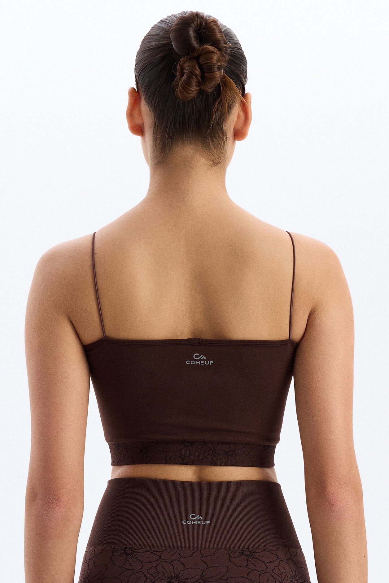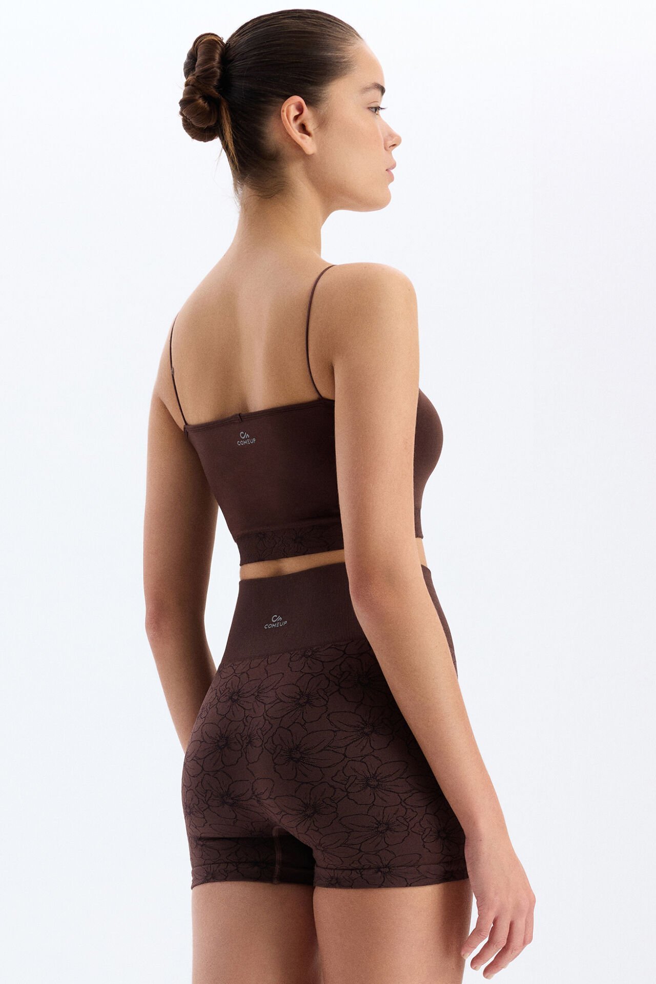 Jakarlı Çiçek Desenli İp Askılı Sporcu Bra Kakao Kahve