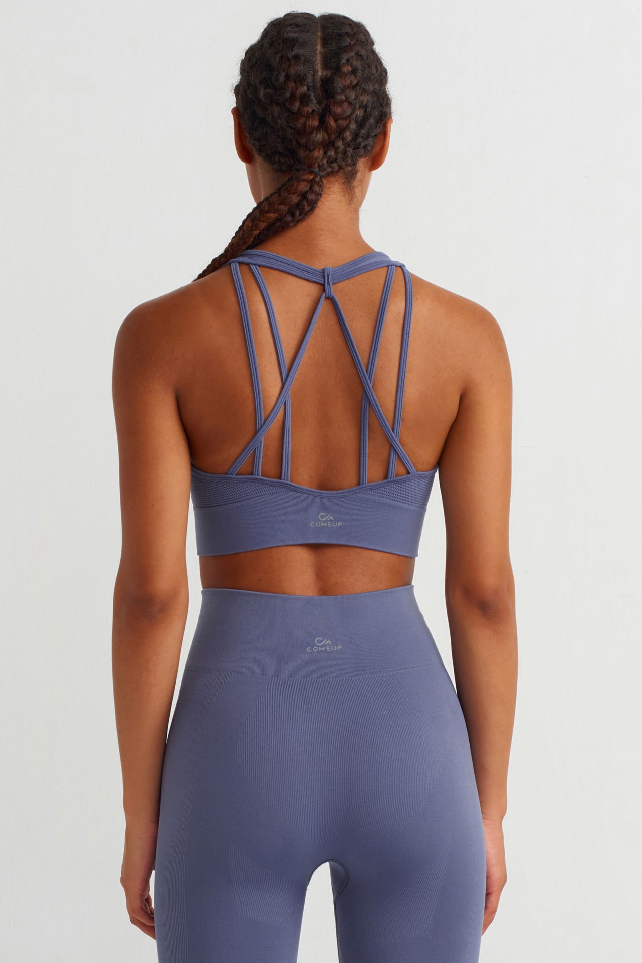 -Estetik sırt detayı olan spor sütyen, yuvarlak yakadır.