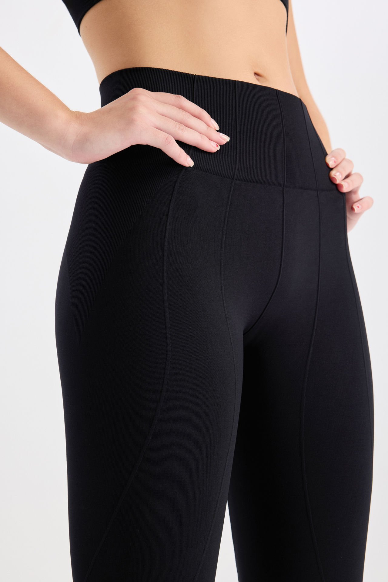 Kabartma Çizgili Toparlayıcı Tayt Siyah