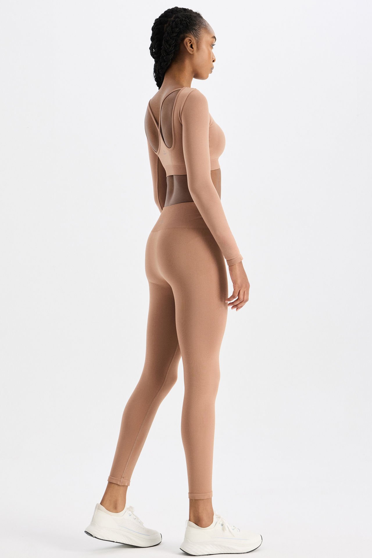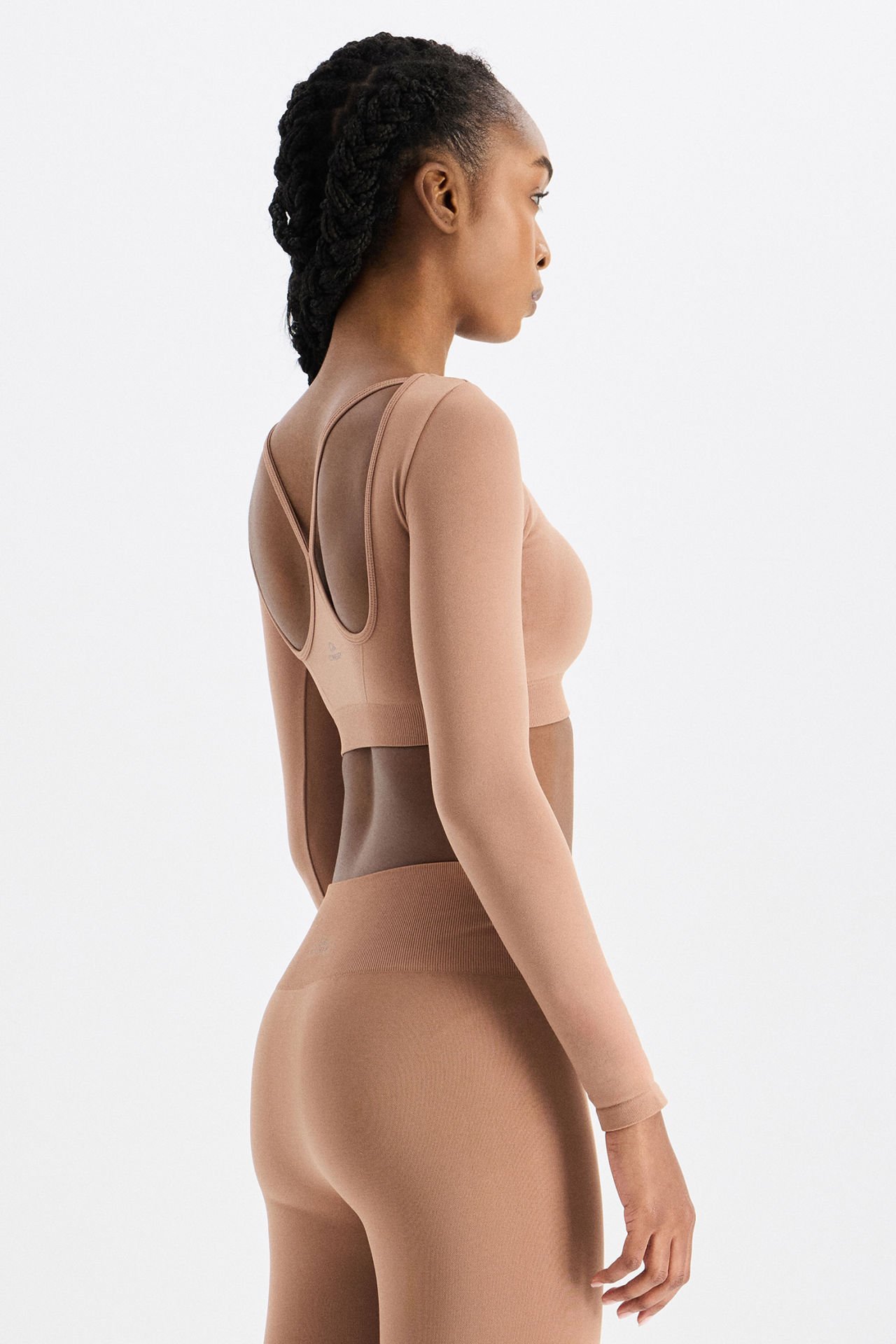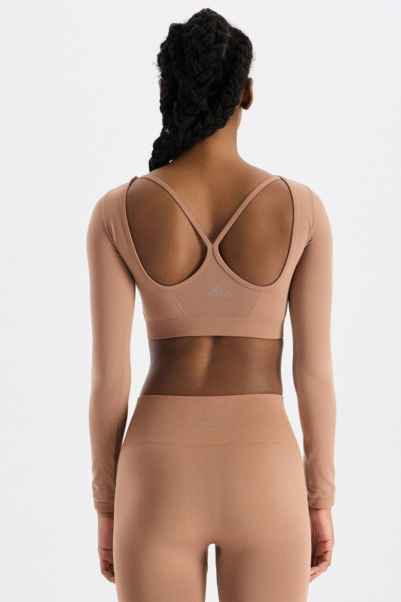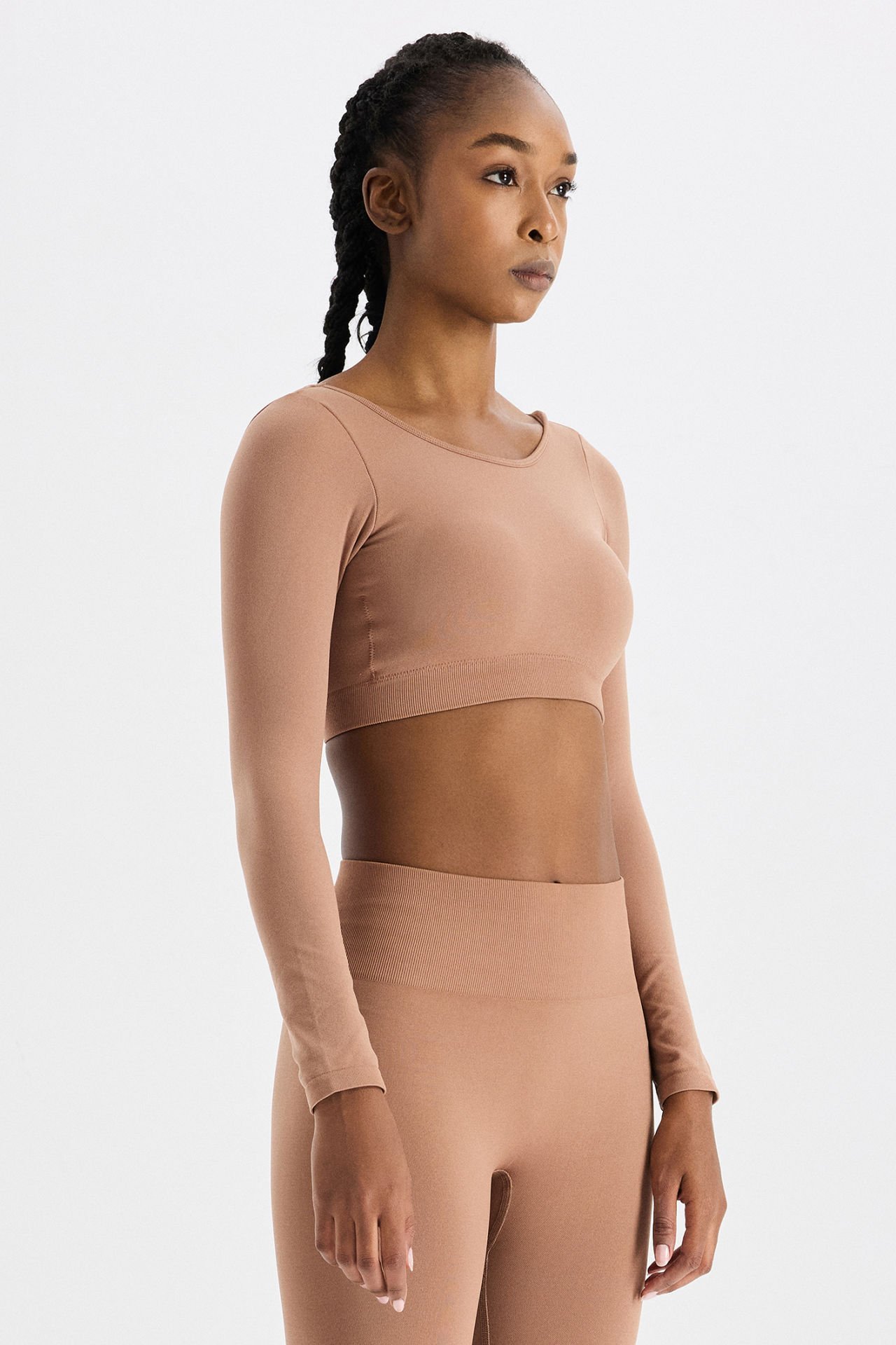 Takıp çıkarılabilir pedli tasarımı, ekstra destek sunarak rahatlıkla hareket etmeni sağlar, aynı zamanda şık bir siluet oluşturur. Amber rengi crop üst, günlük giyiminden yoga ve pilates antrenmanlarına kadar her alanda mükemmel bir seçenek olarak öne çıkıyor.