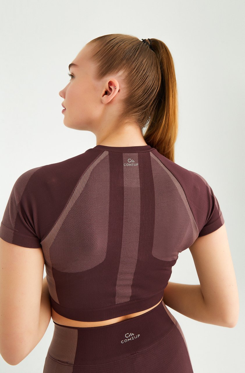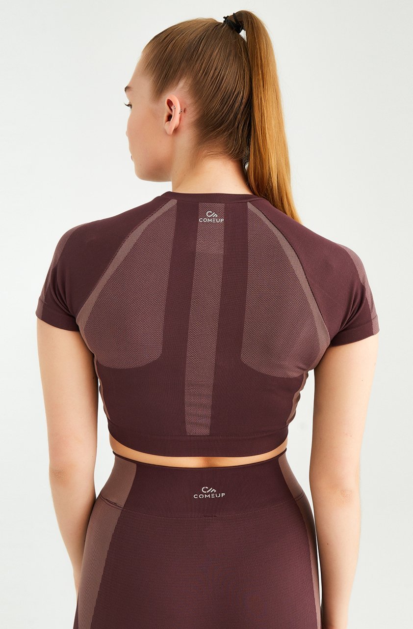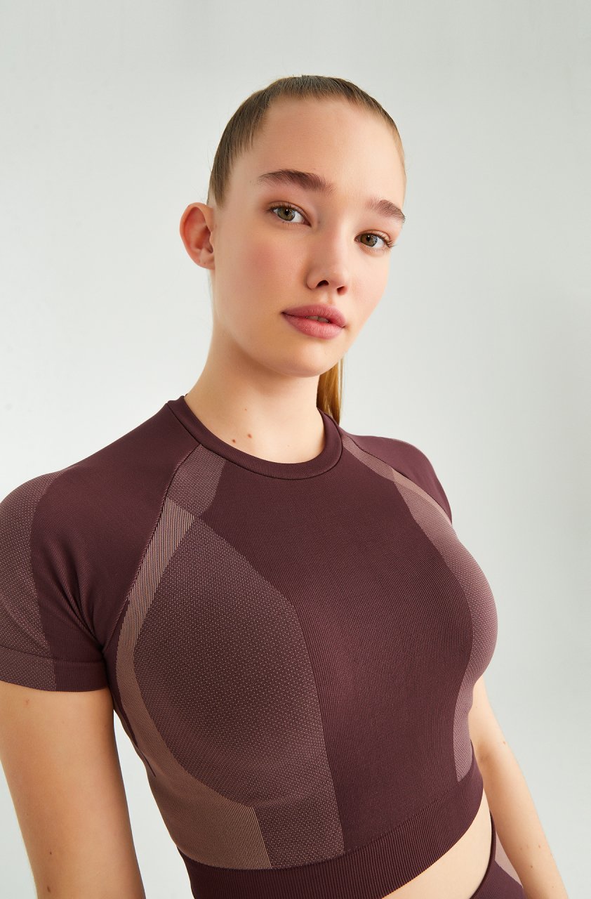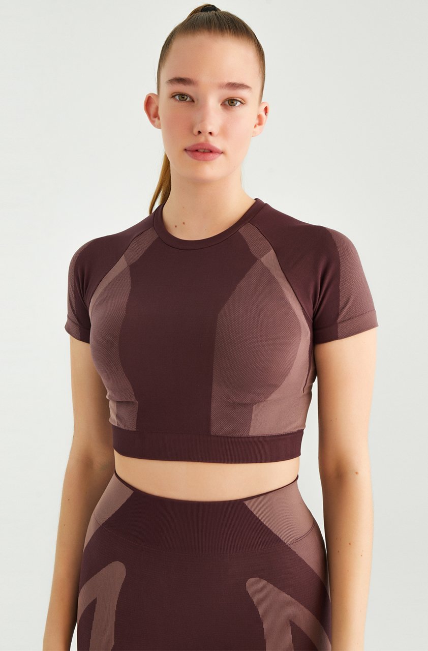 Kısa Kollu Crop Top Bordo Rose