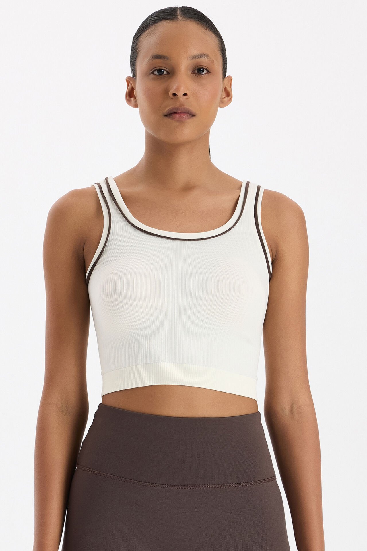 Kontrast Biyeli Fitilli Atlet Kırık Beyaz