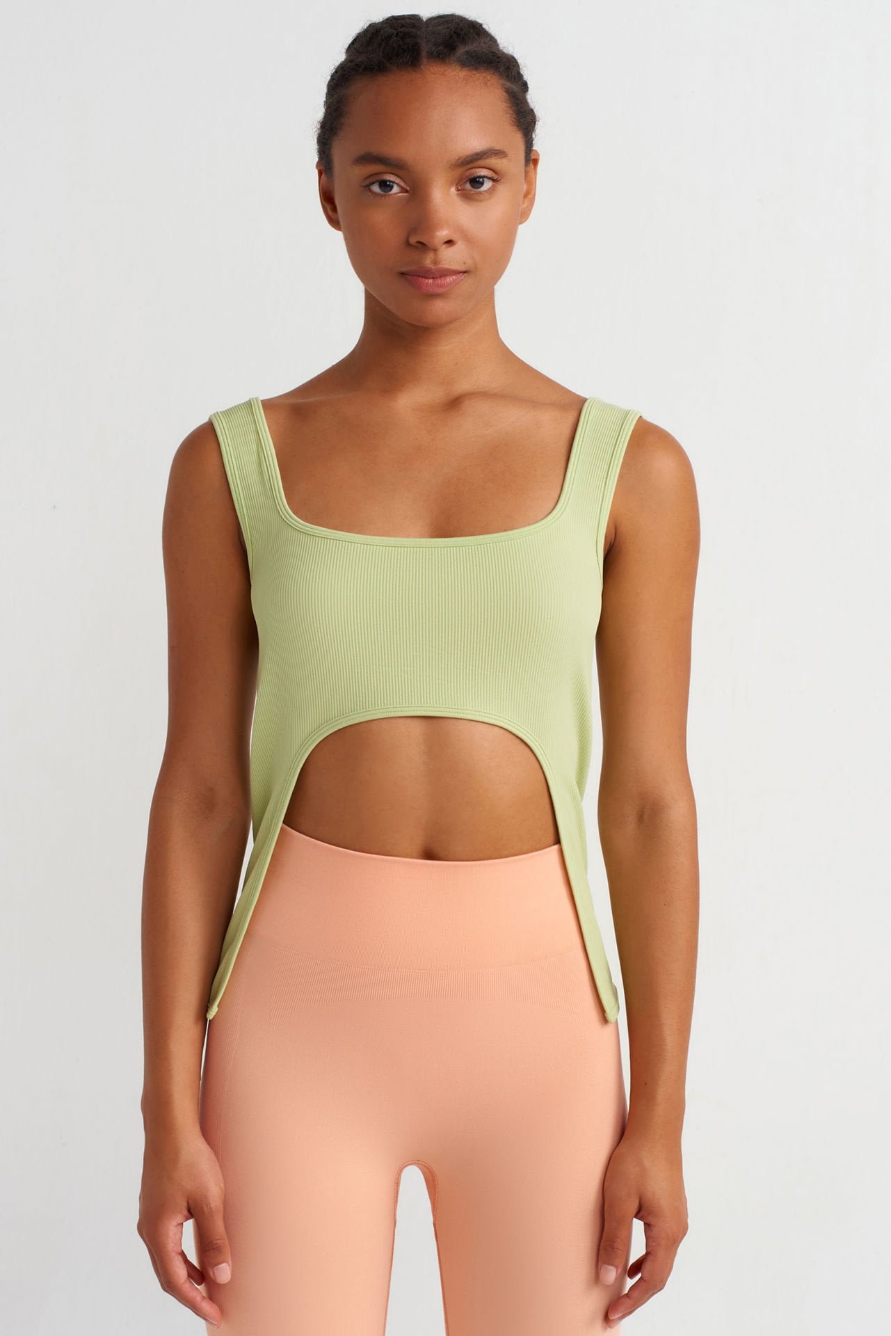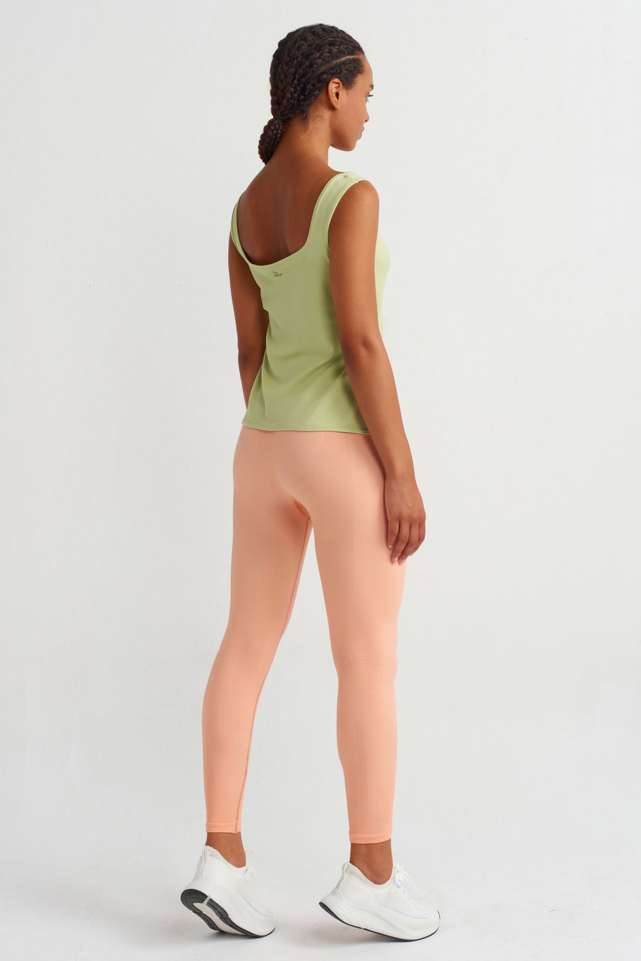 Her detayıyla incelikle tasarlanmış spor atlet, önde zarif pencere detayı ve ince fitilli kumaş yapısı ile dikkat çekiyor. İnce fitilli kumaşı, vücuda mükemmel bir şekilde otururken, zarif pencere detayı spor şıklığını tamamlıyor.