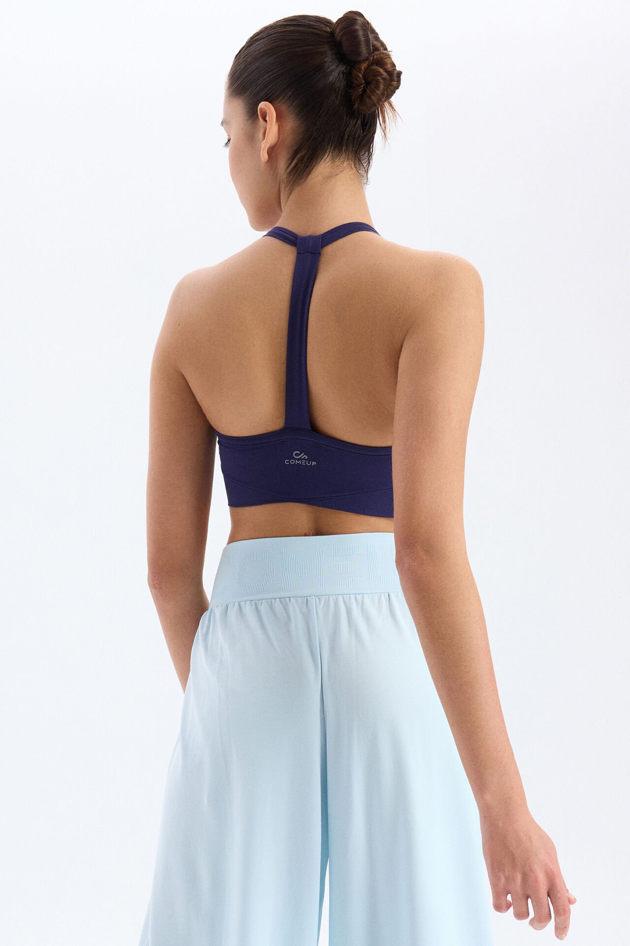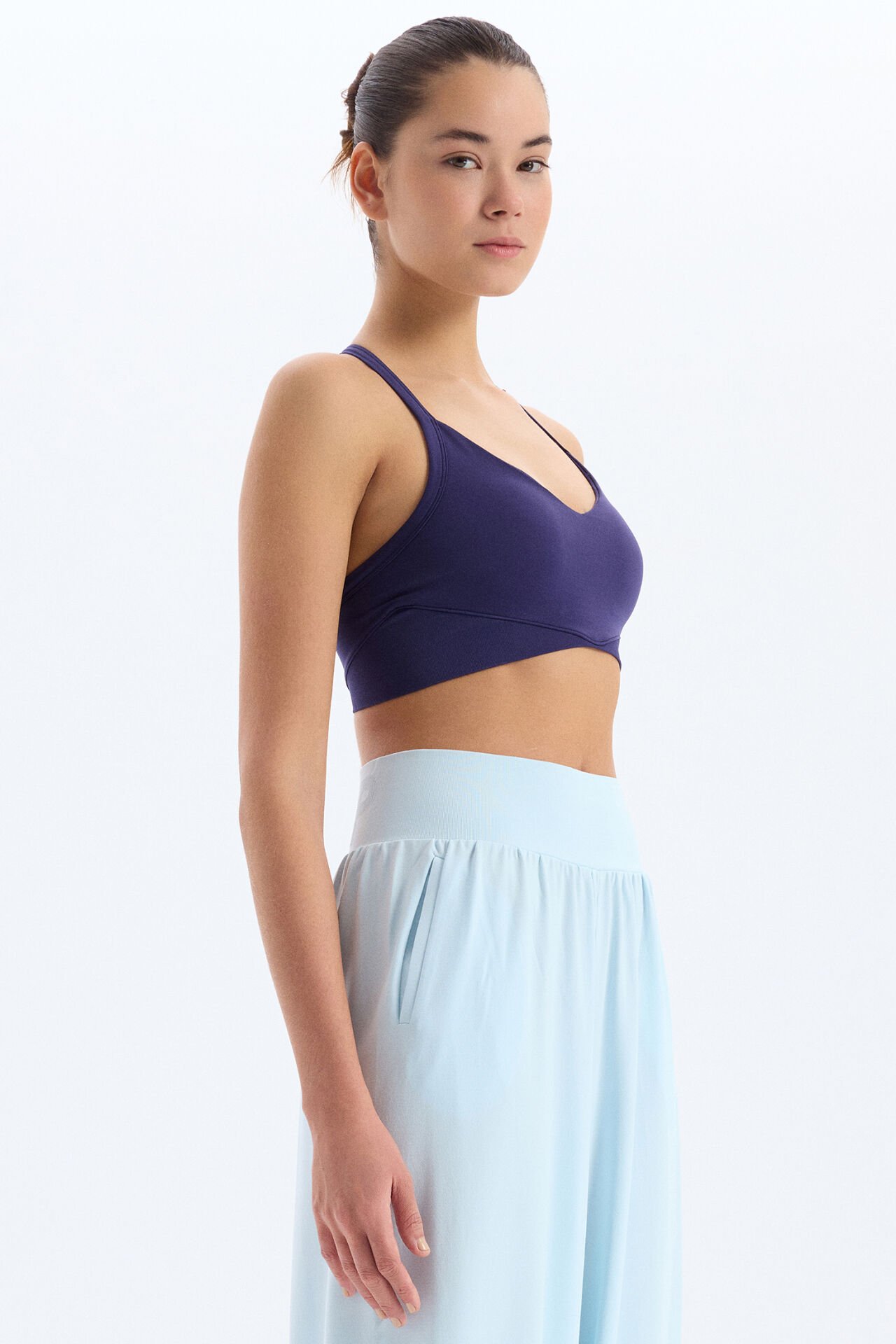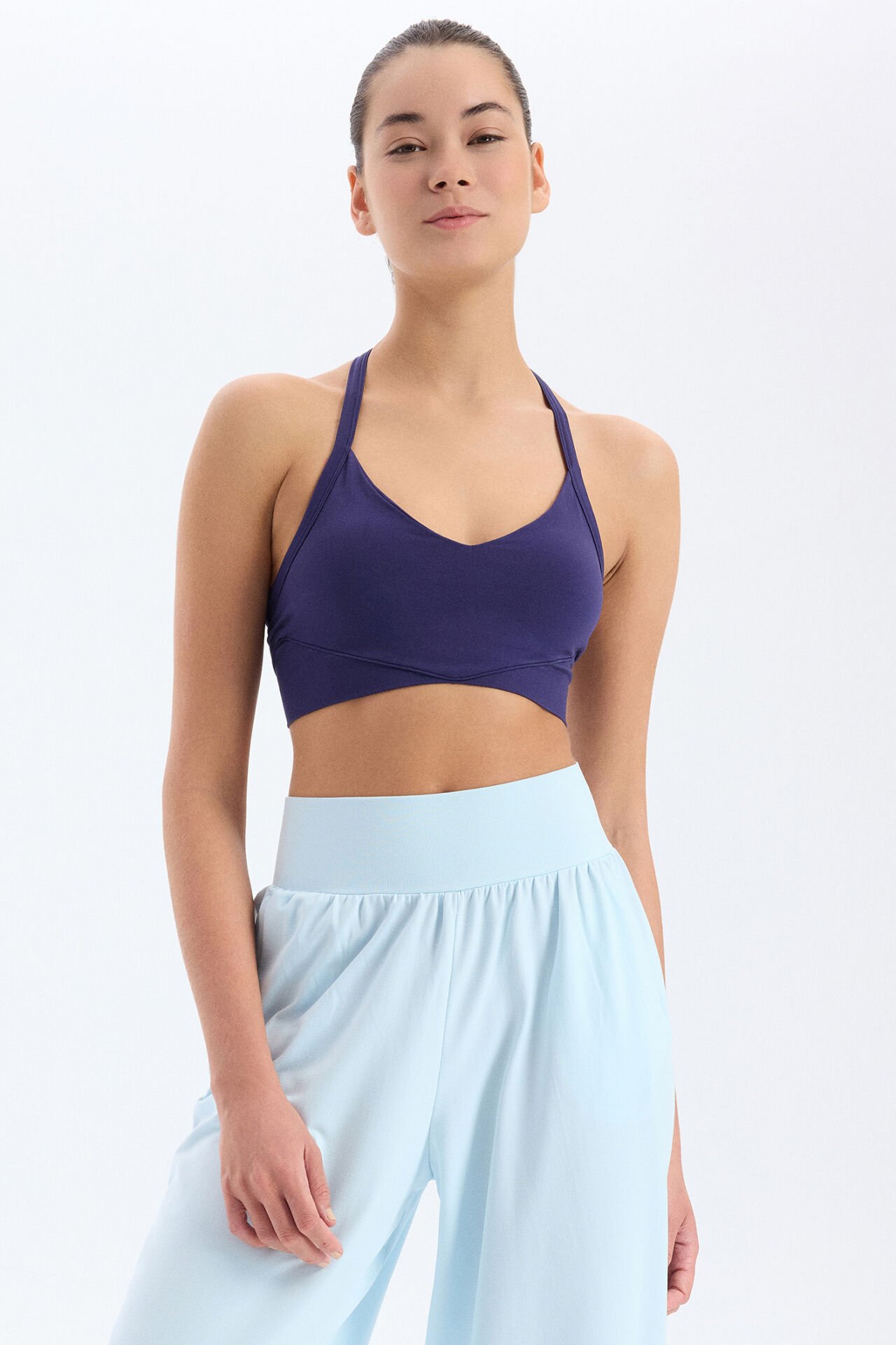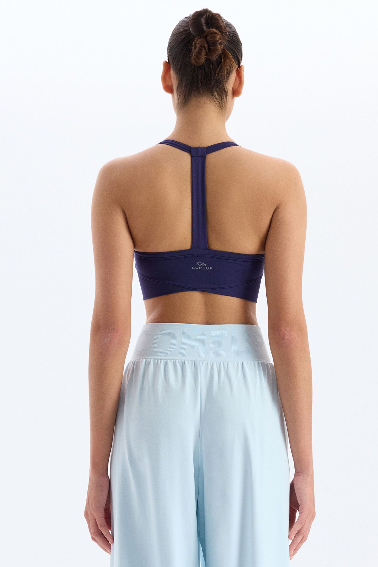 Önü V Arkası Şerit Detaylı Sporcu Sütyeni Prusya Mavisi