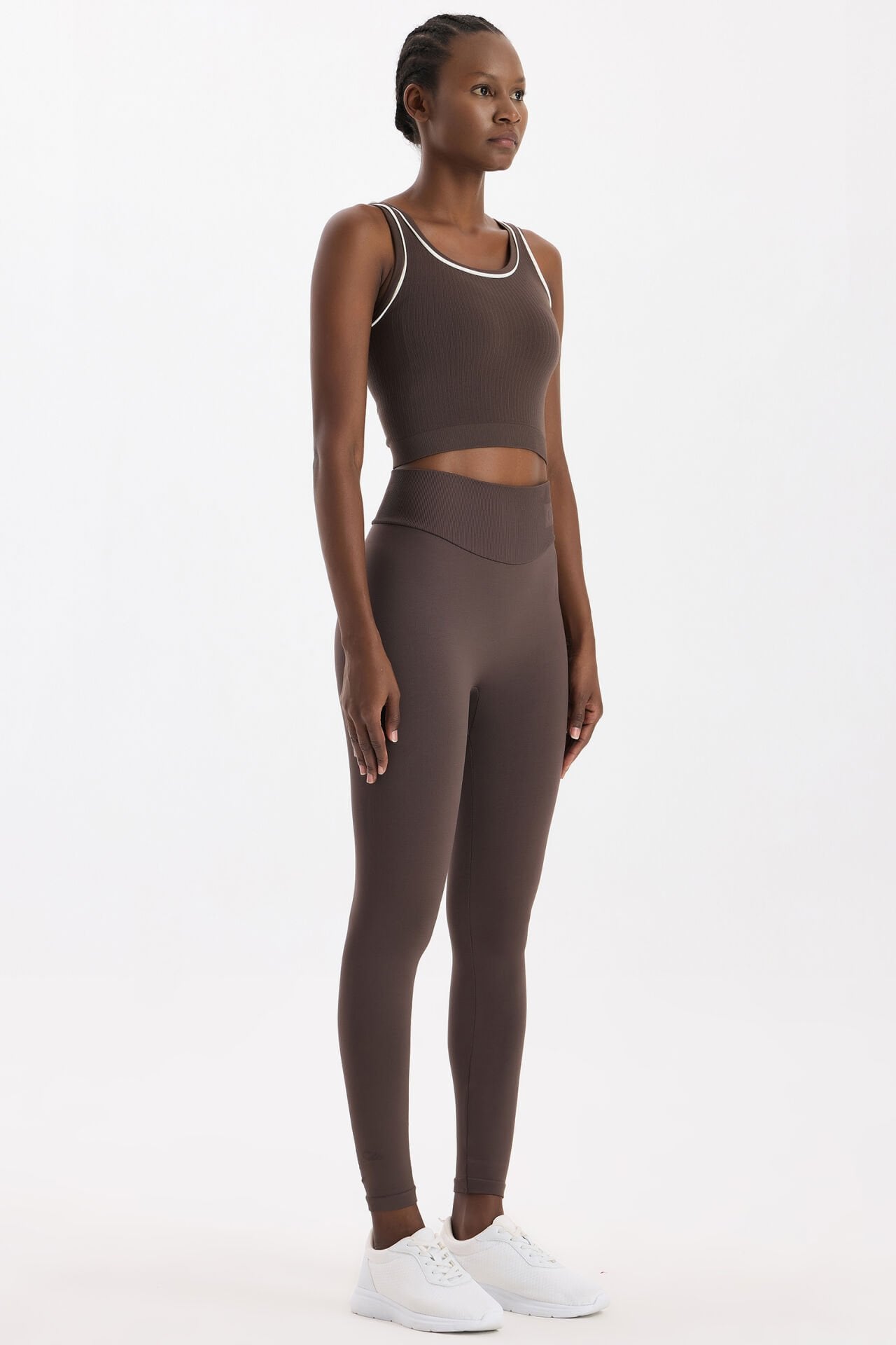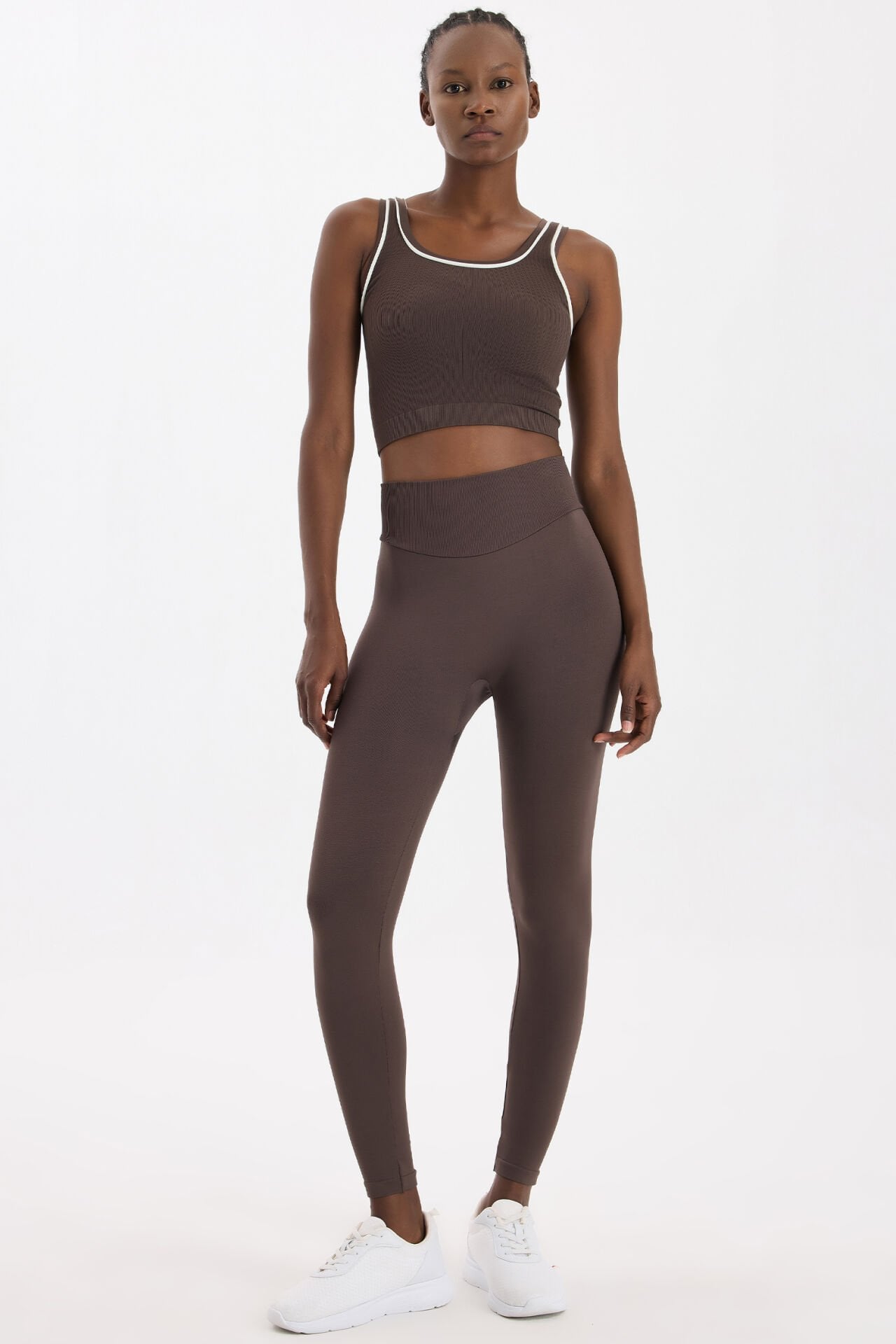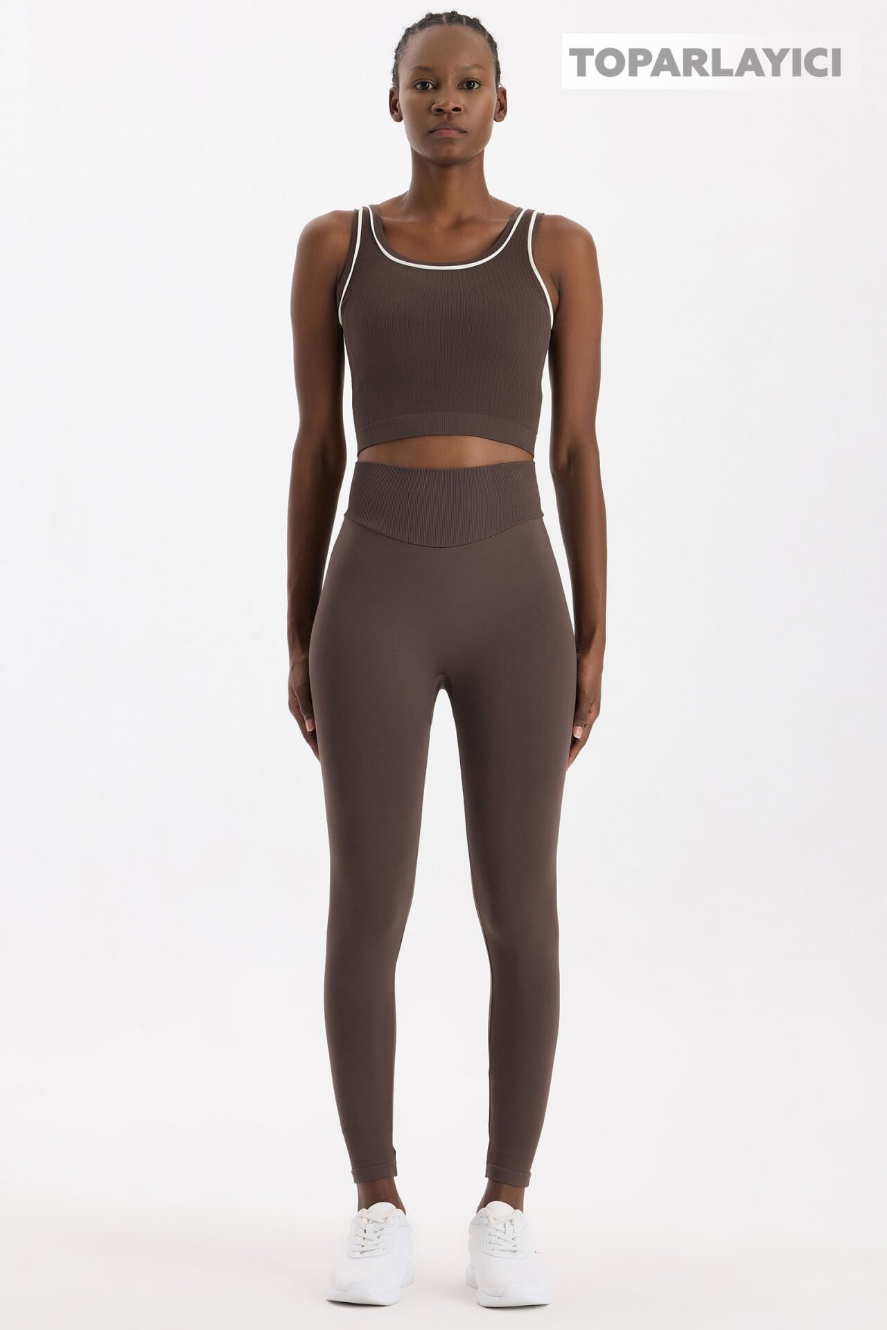 Kakao Dansı rengiyle doğallığın zarafetini yansıtan bu tayt, hem şıklığı hem performansı aynı anda isteyenler için mükemmel bir tercihtir.