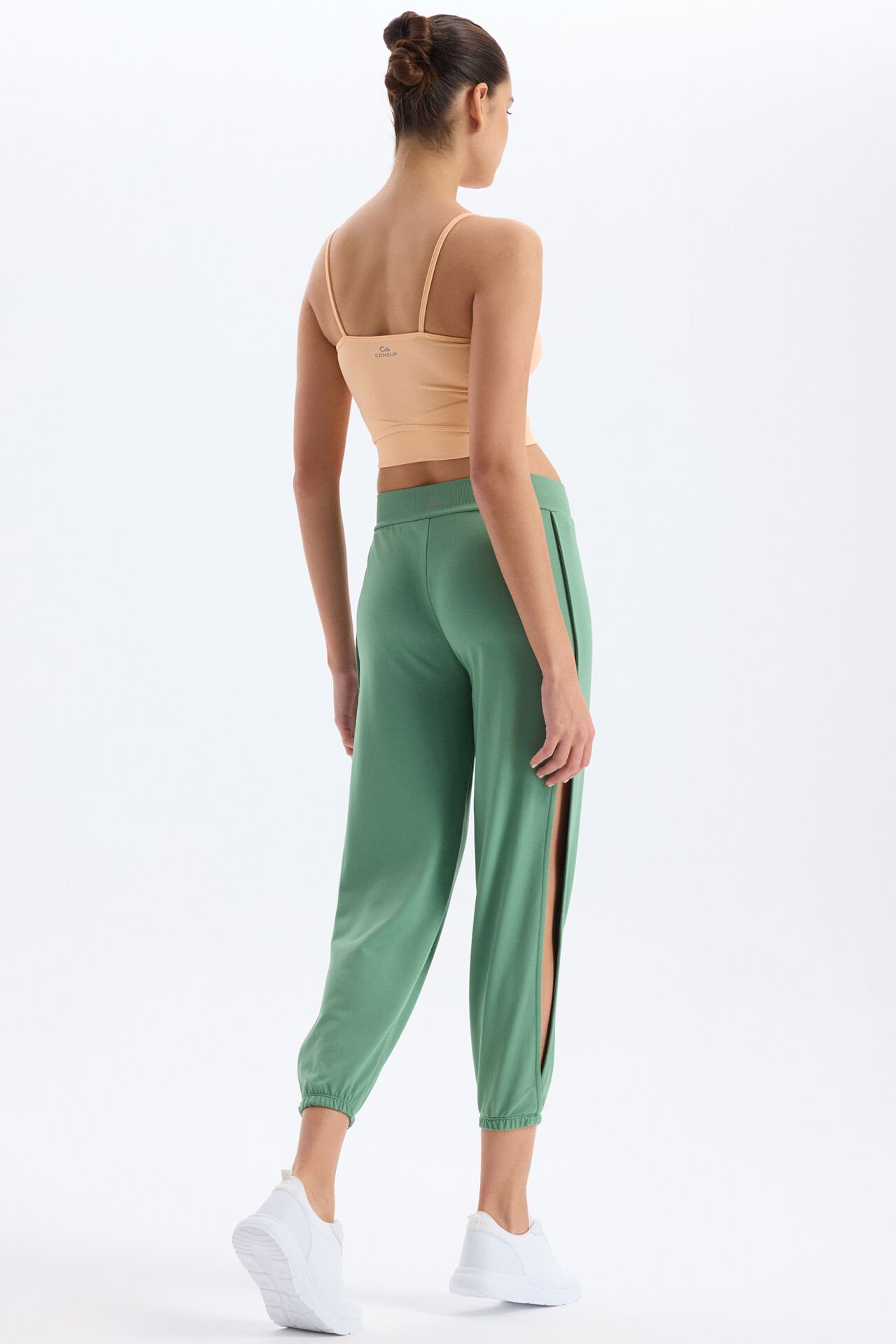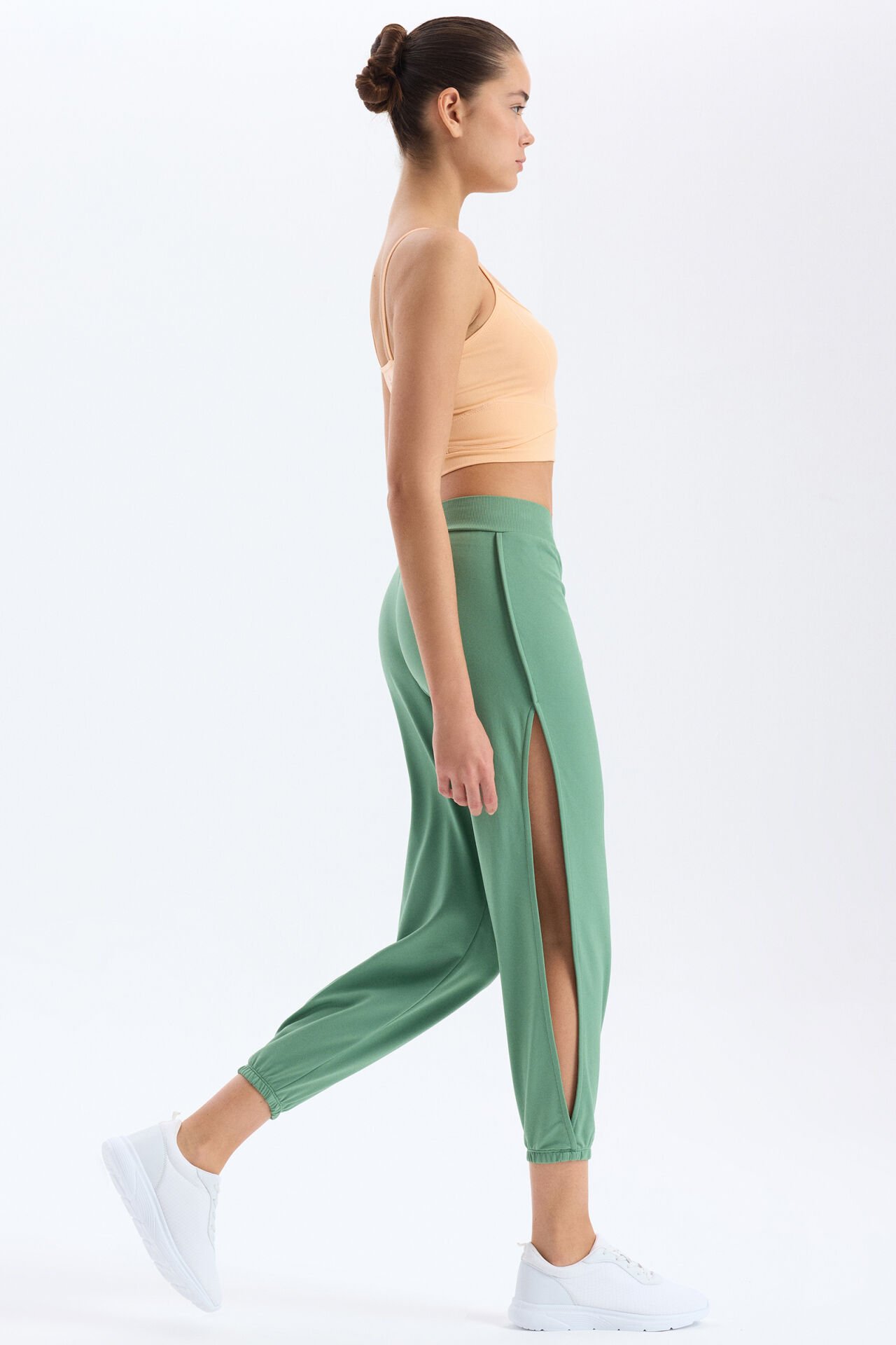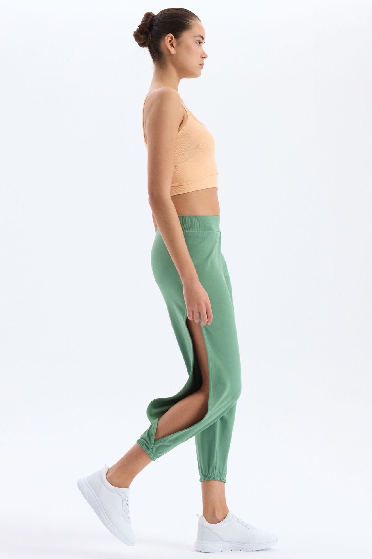 Paça Lastikli Yanları Yırtmaçlı Pantolon Çağla