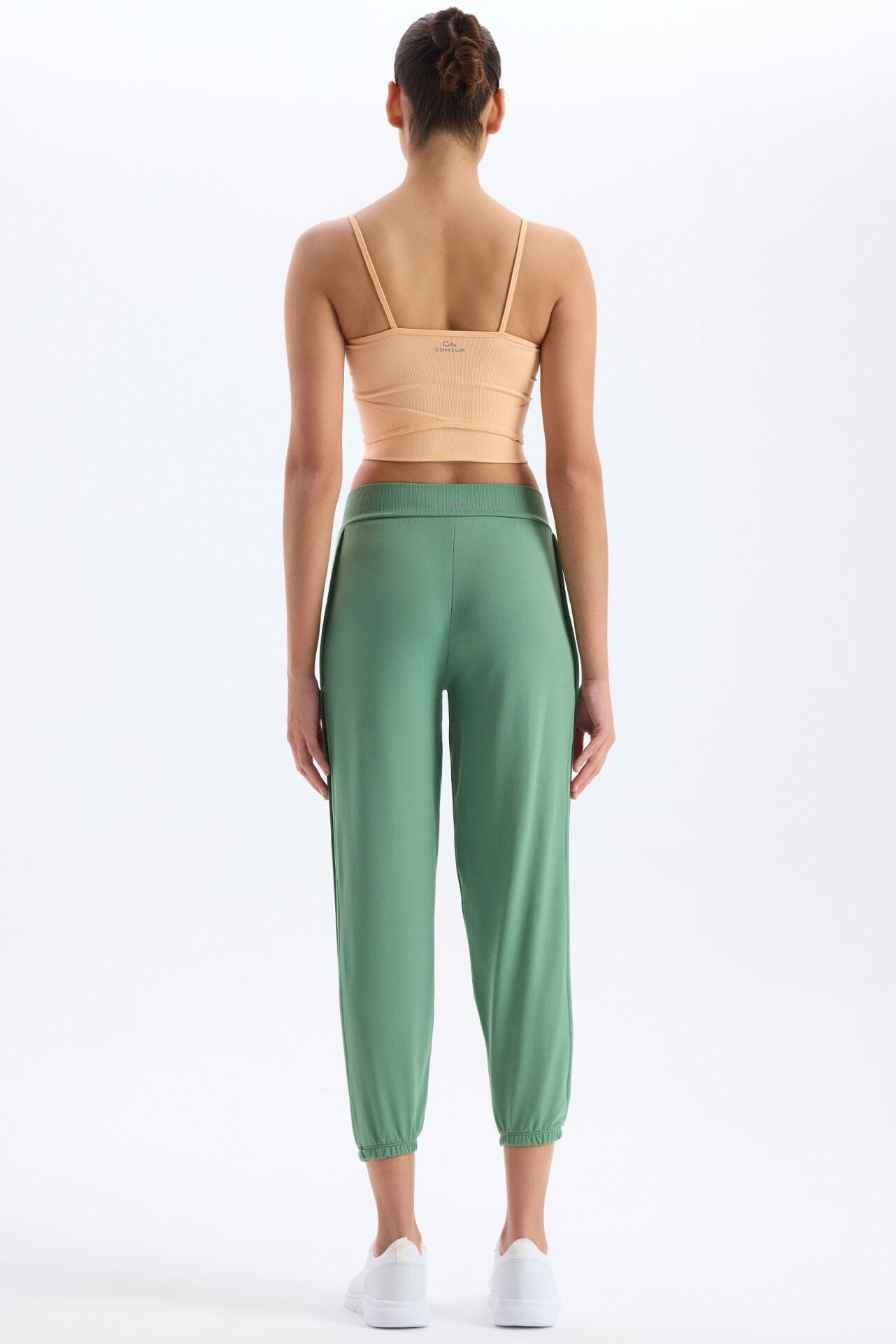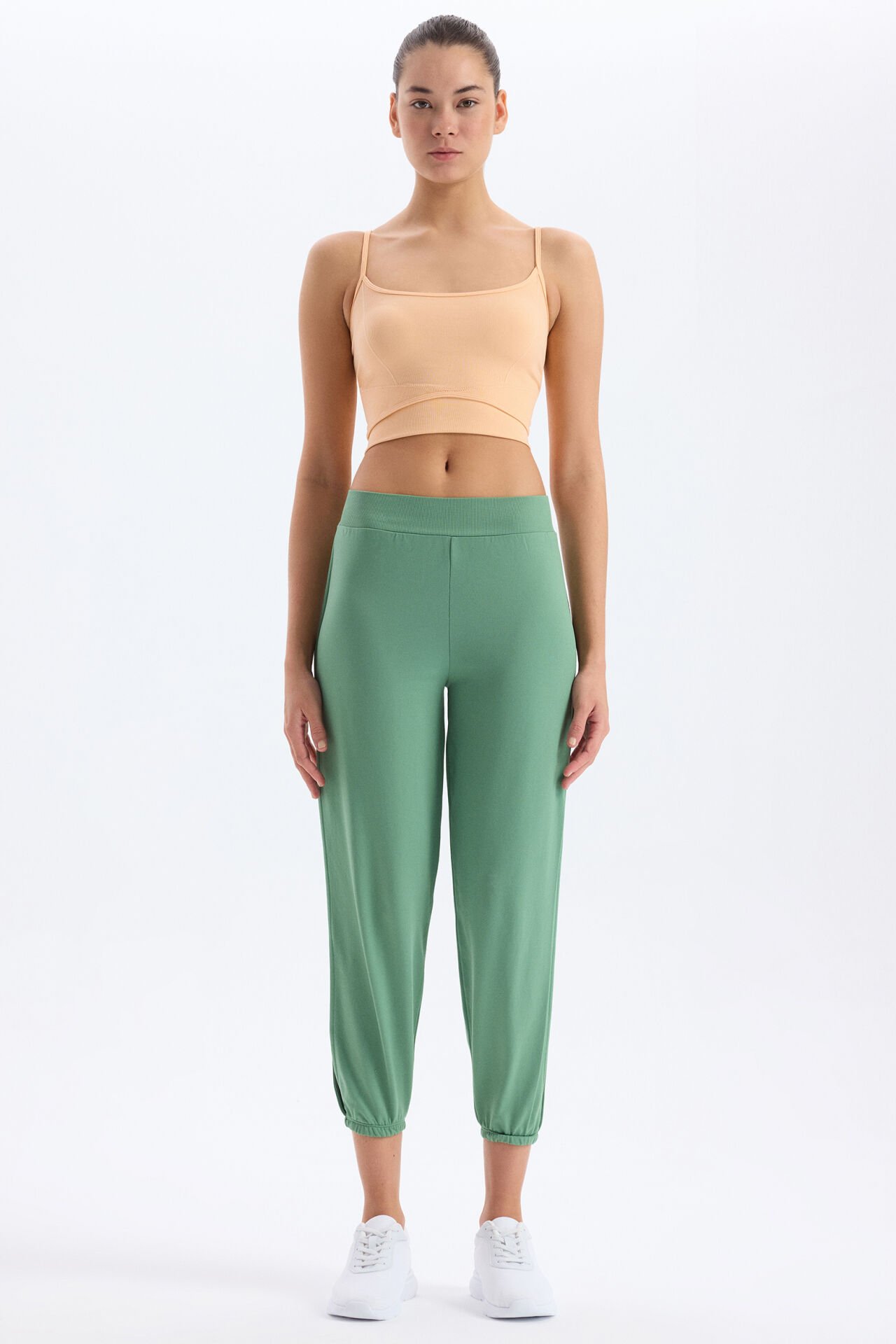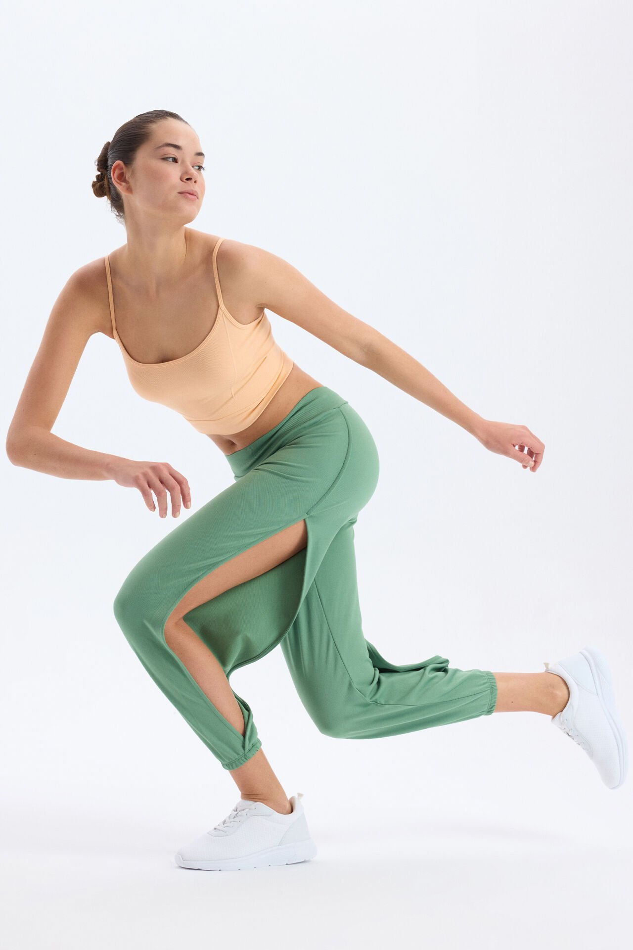 Paça Lastikli Yanları Yırtmaçlı Pantolon Çağla