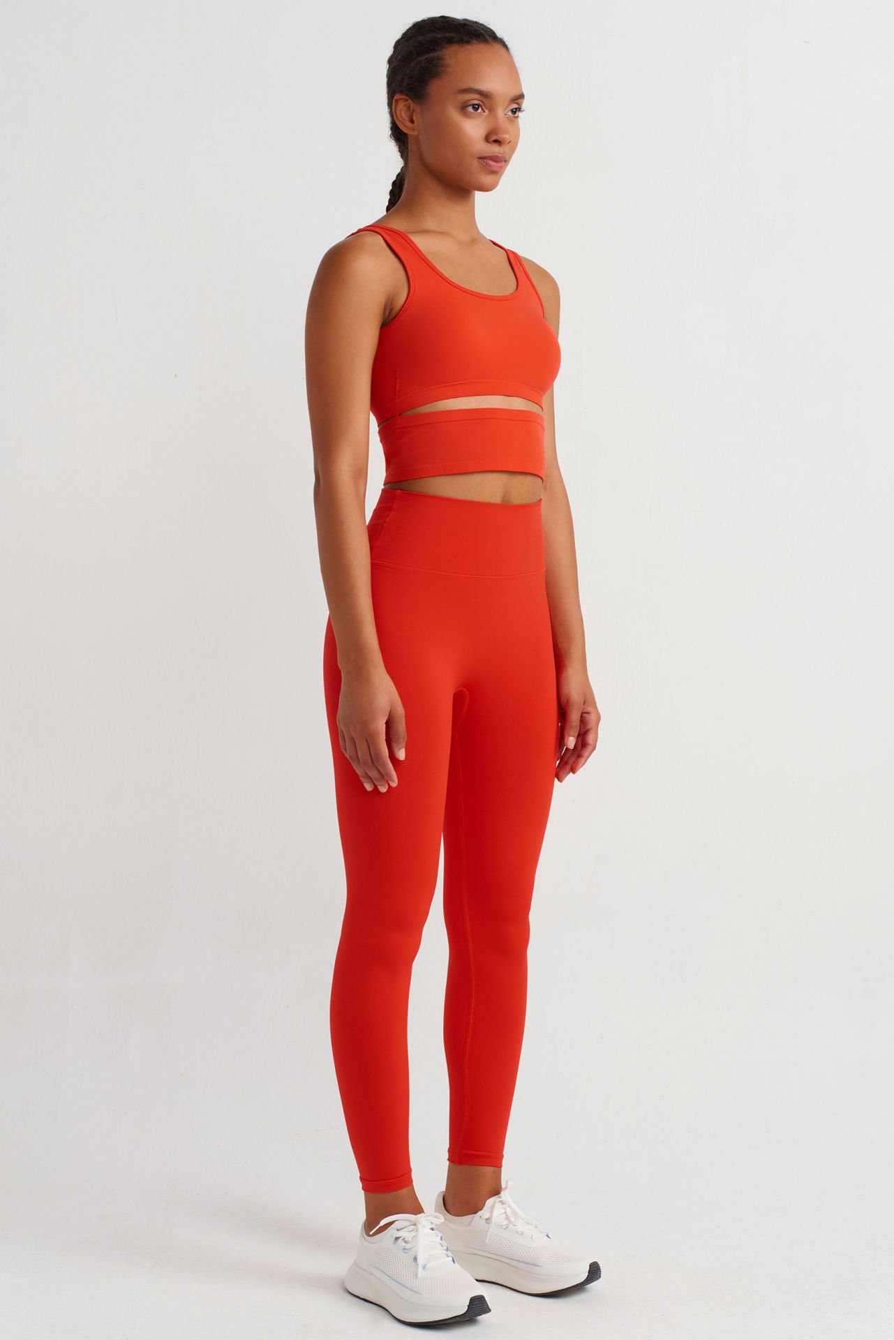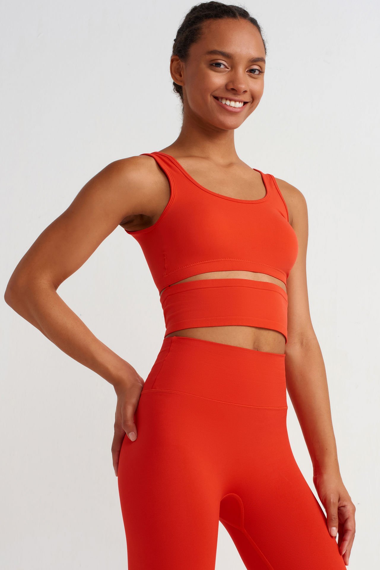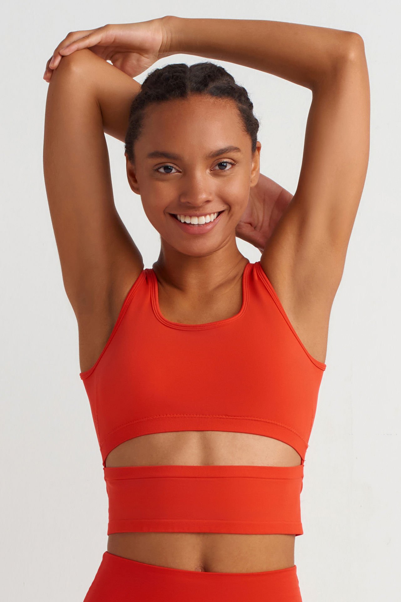 Parçalı ve Pedli Crop Top Ateş Kırmızı