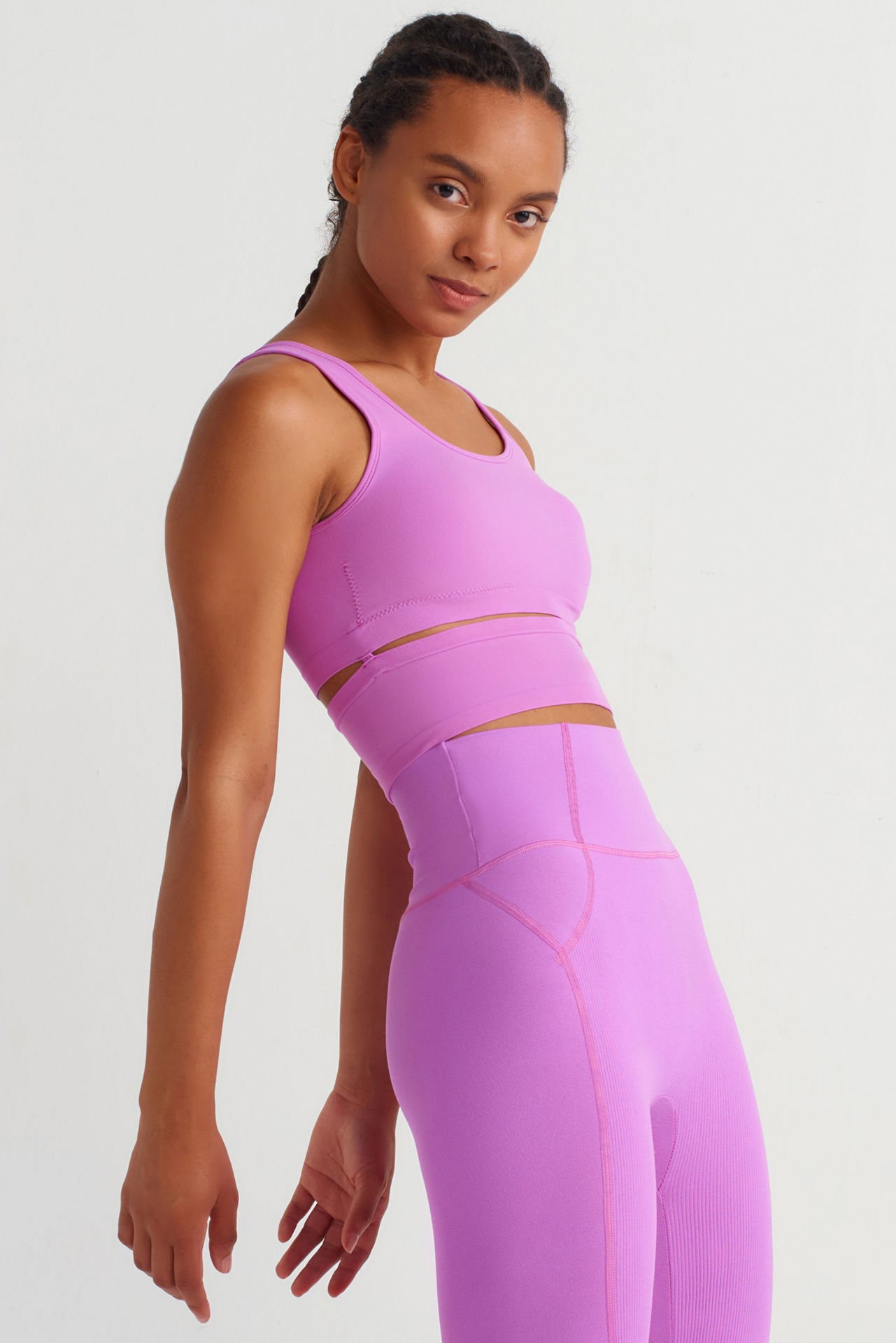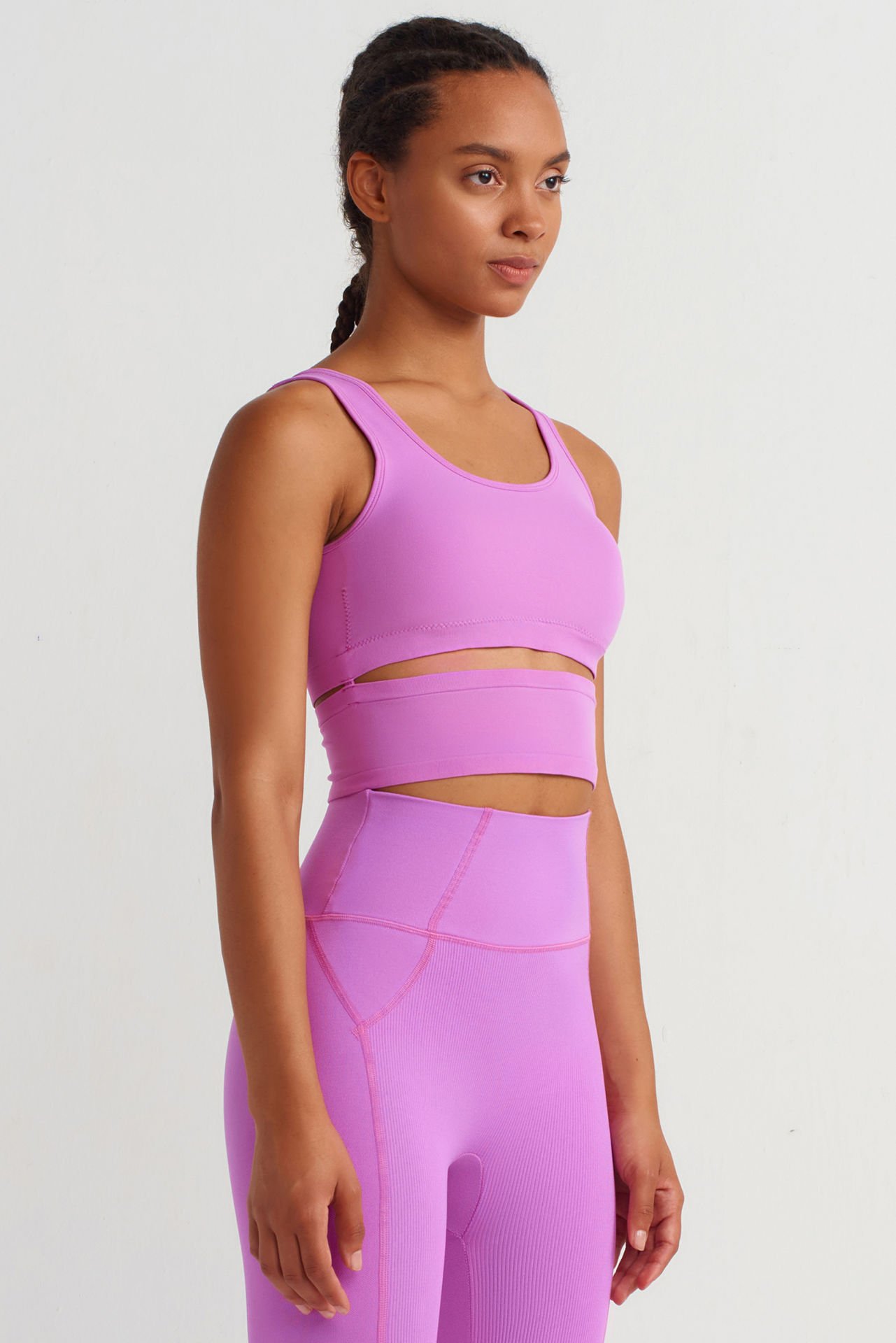 Parçalı ve Pedli Crop Top Orkide Pembe