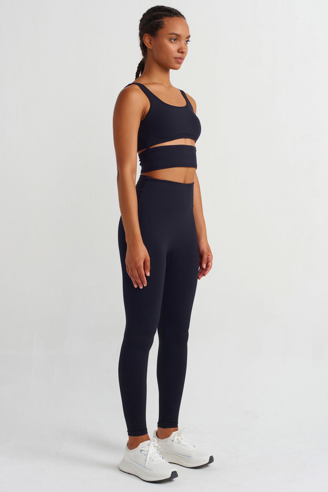 Parçalı ve Pedli Crop Top Siyah