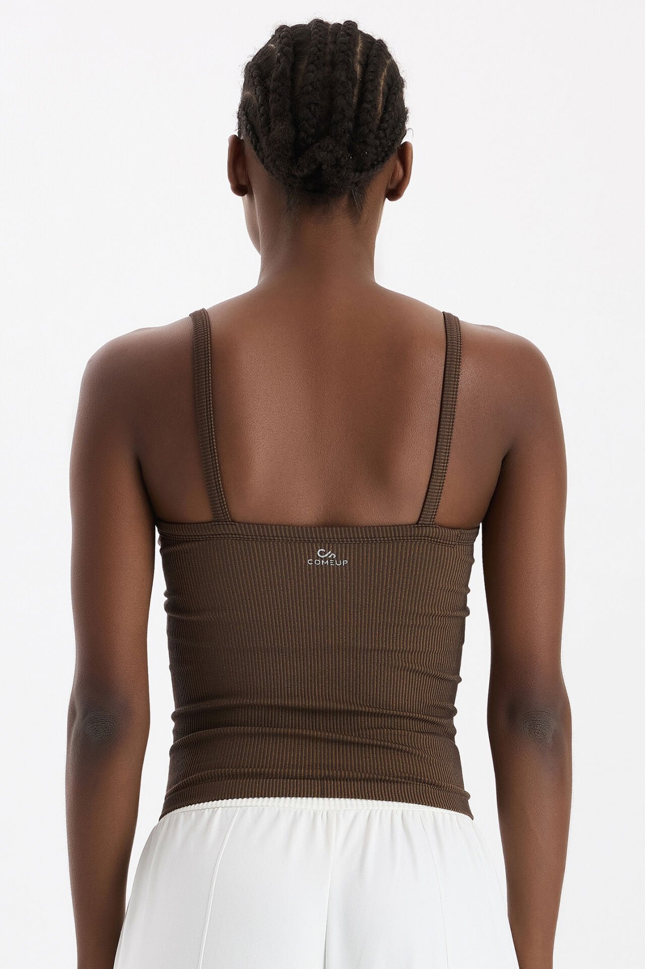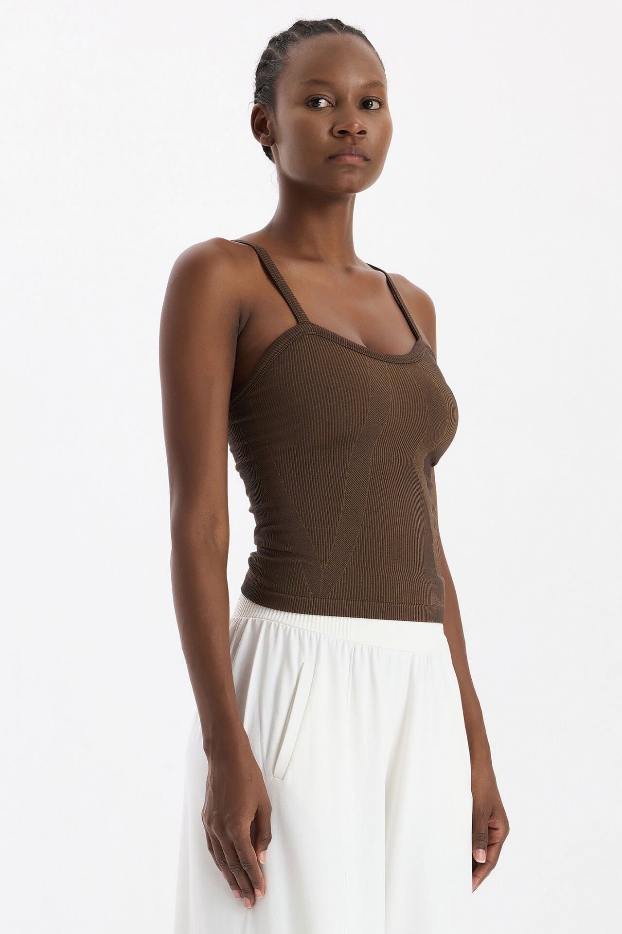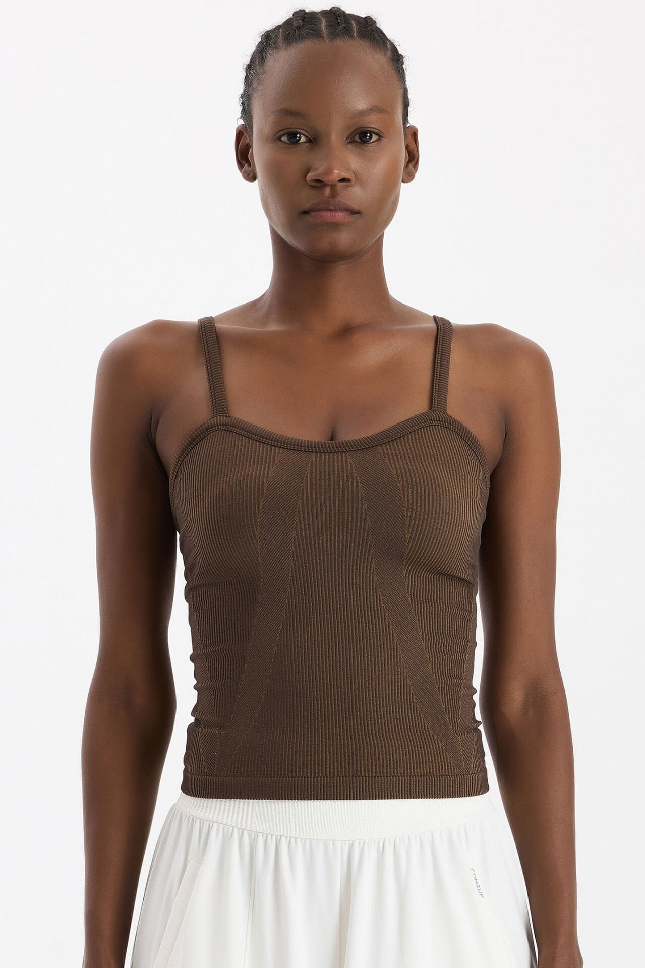 Dikişsiz Pedli Fitilli Atlet – Kakao Dansı / Vizon, zarafeti ve konforu bir araya getiren modern bir tasarımdır.