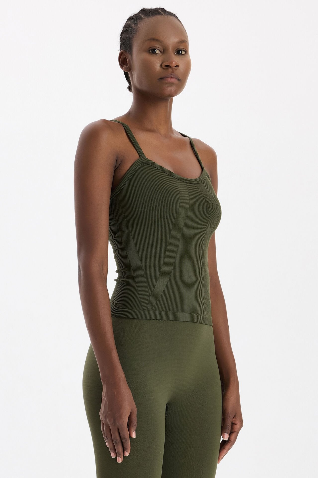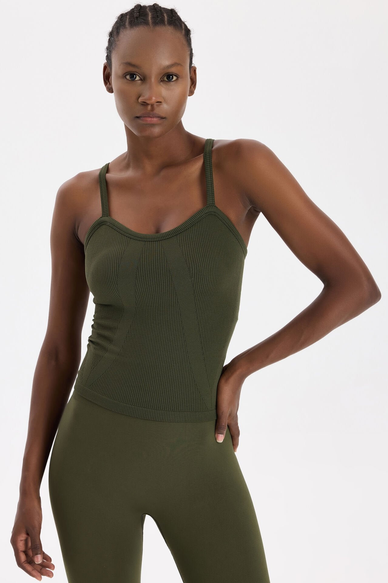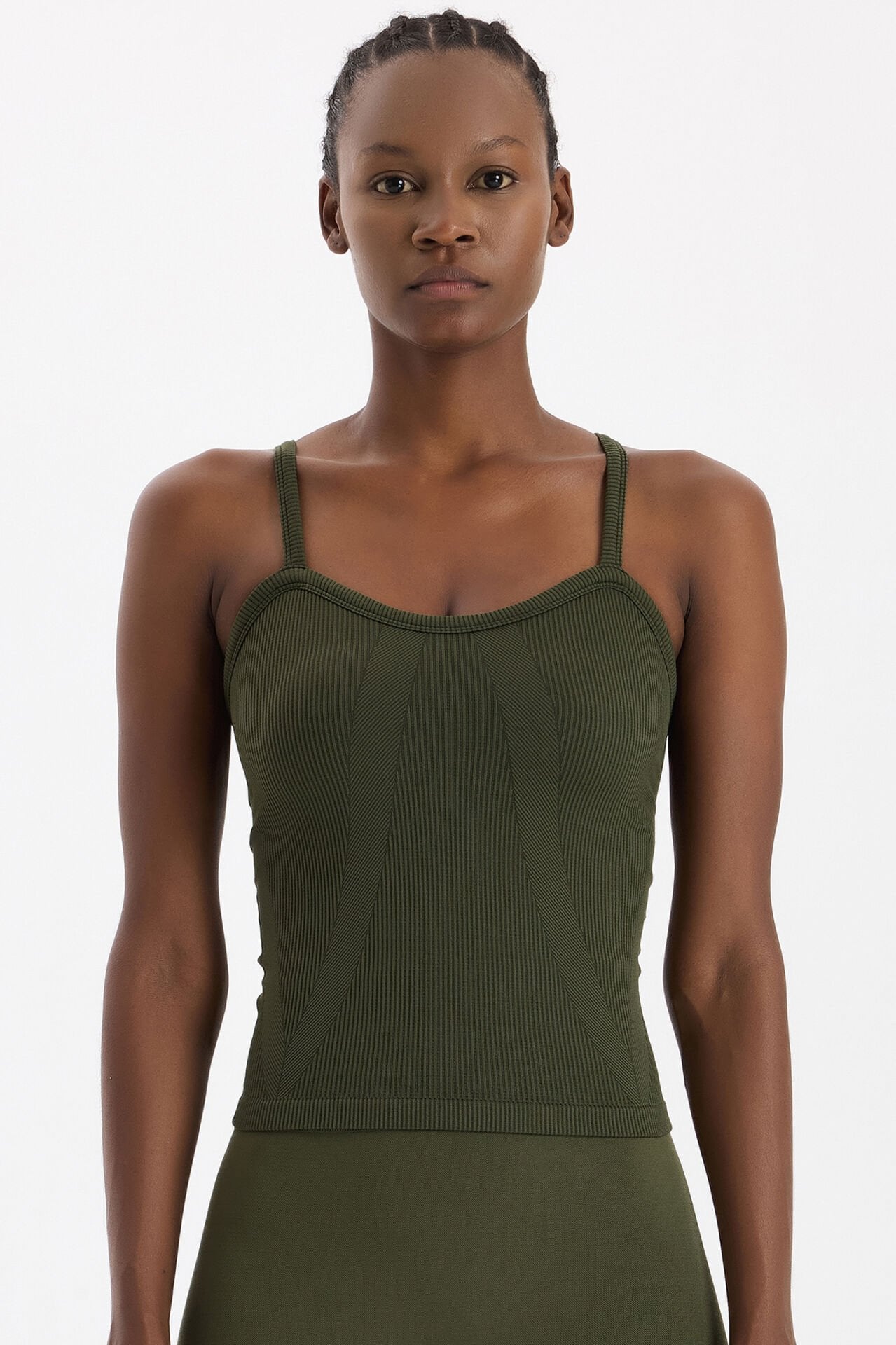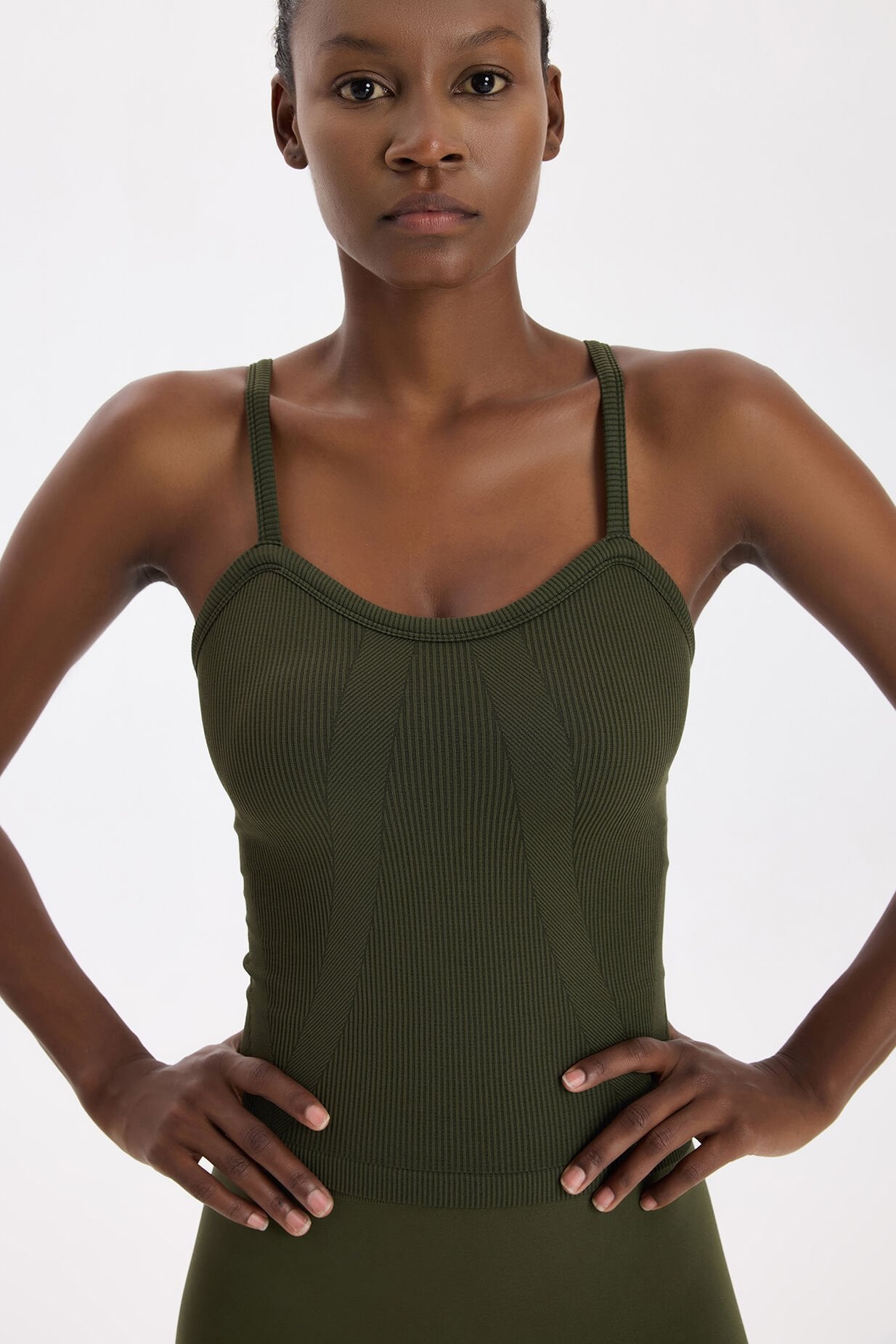 Zamansız rengi ve konforlu yapısıyla bu koyu yaprak yeşili pedli fitilli atlet, doğallık ve şıklığı bir arada isteyenler için vazgeçilmez bir seçim olacak.
