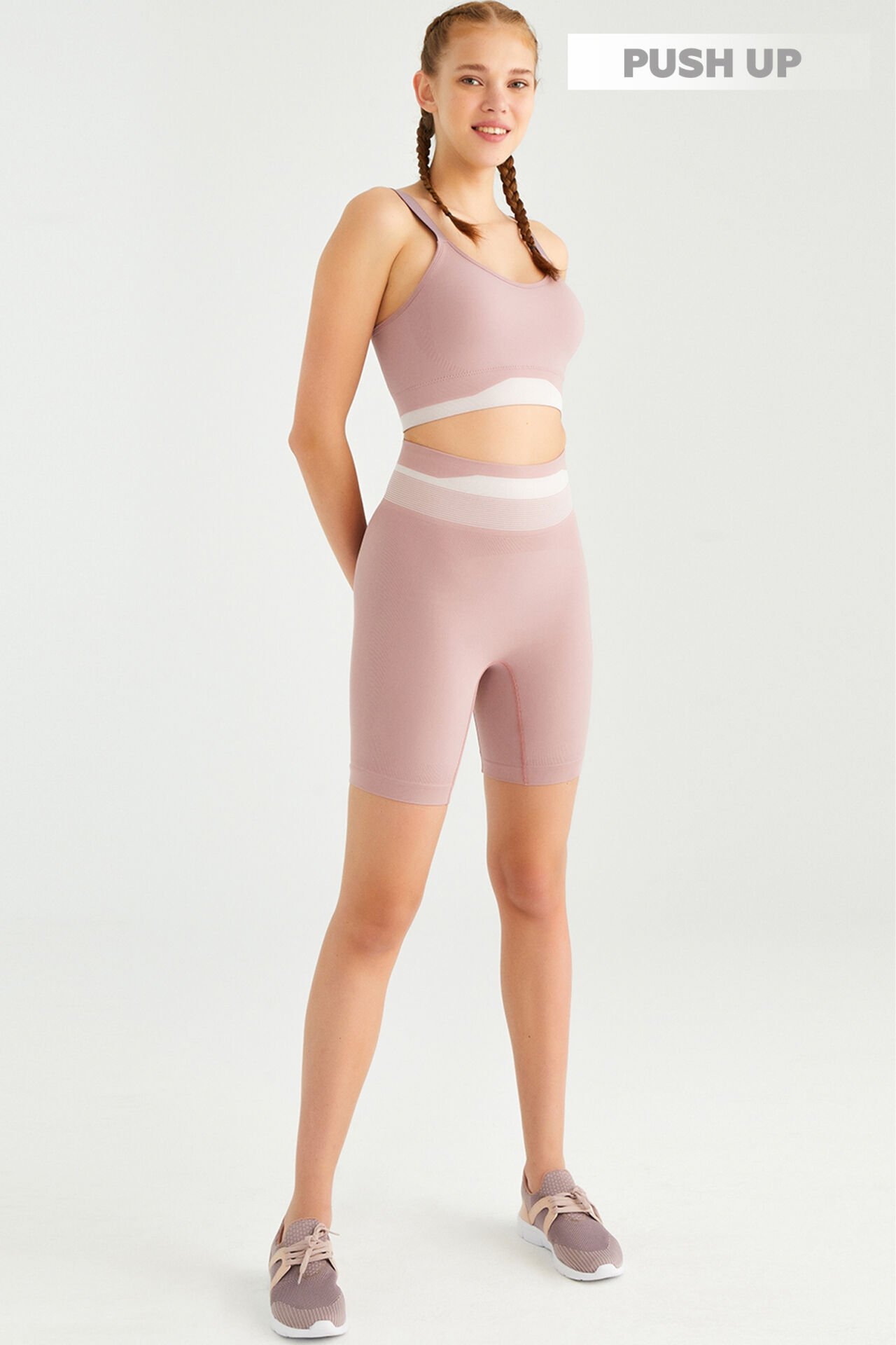 · Push up bisikletçi şort, bacak ve basen bölgesinde yer alan detaylar ile ekstra toparlayıcılık sağlar.