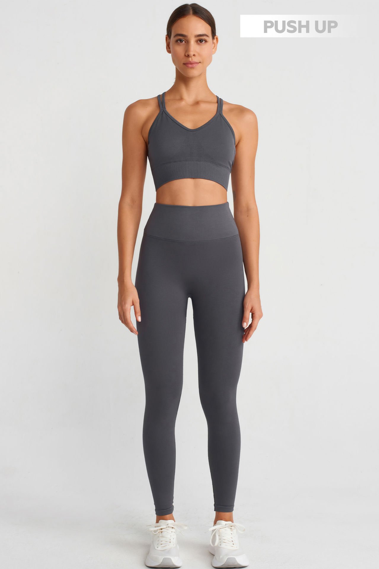 -Yüksek belli push up tayt, bel kısmında üçgen dikiş detaylar ile kusursuz bir görünüm sağlar.