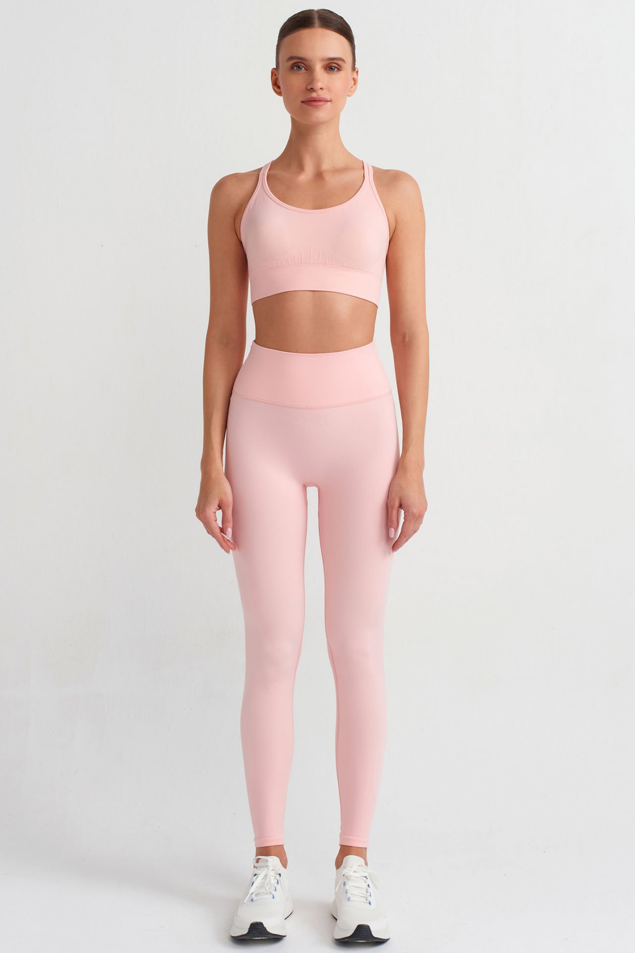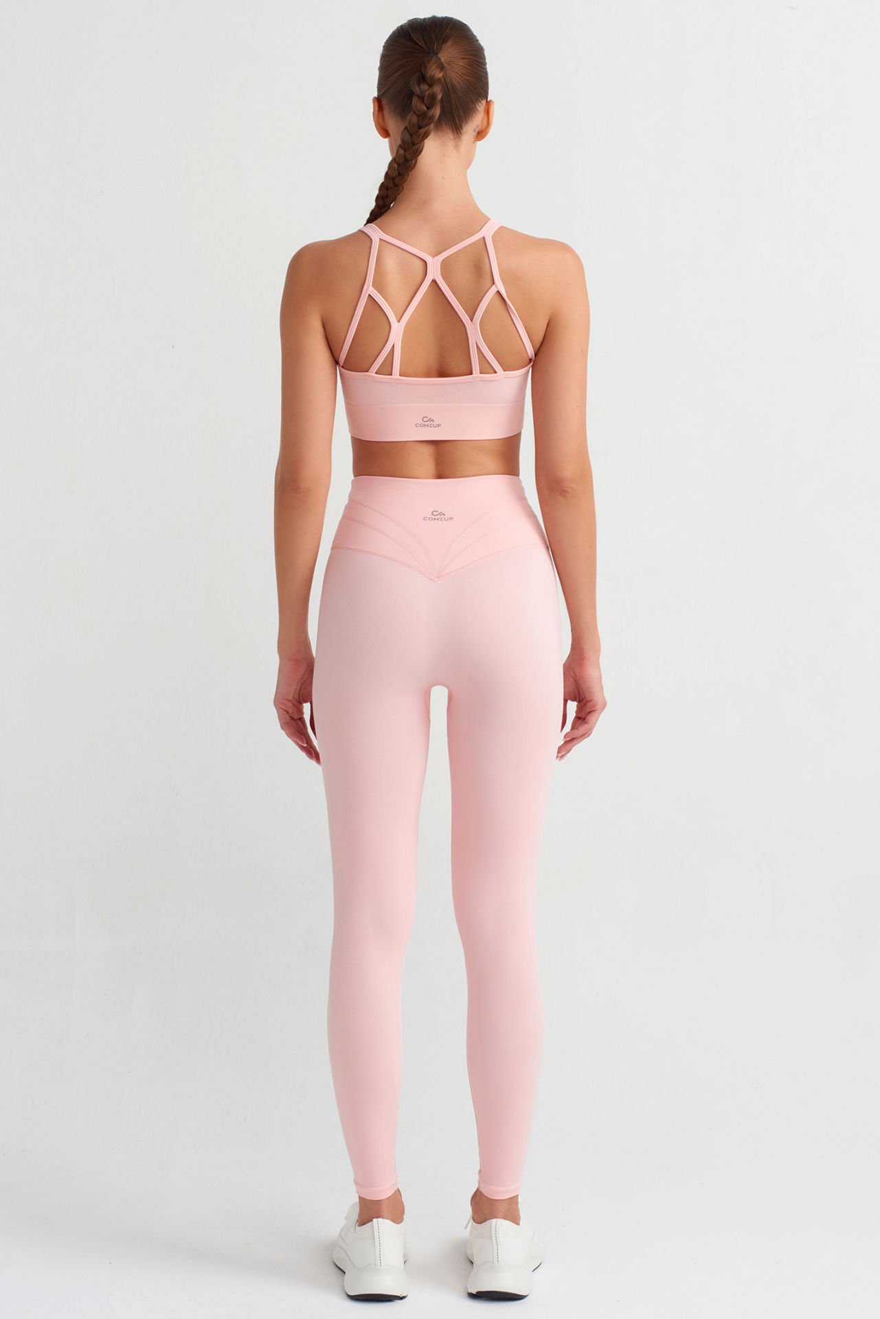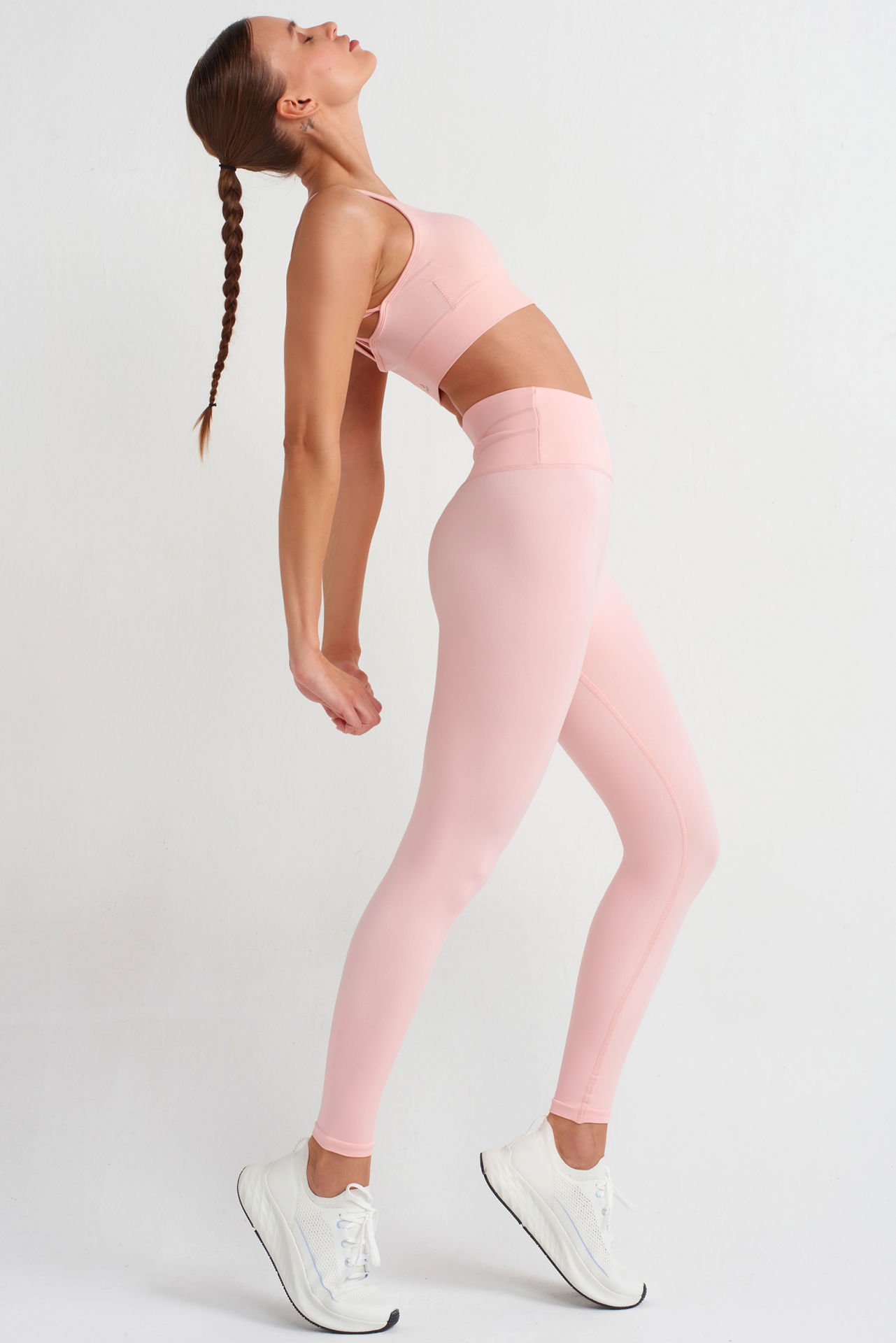 Push up tayt, sıcak ve romantik bir pembe tonu ile dikkat çeker. Bu özel renk feminen bir hava katarken, bel kısmında V dikiş detayları zarif bir vurgu yaparak çekici görünüm sunar. Dikişsiz kumaş teknolojisi ile üretilen push up tayt yüksek belli ve bilekte biten forma sahiptir.