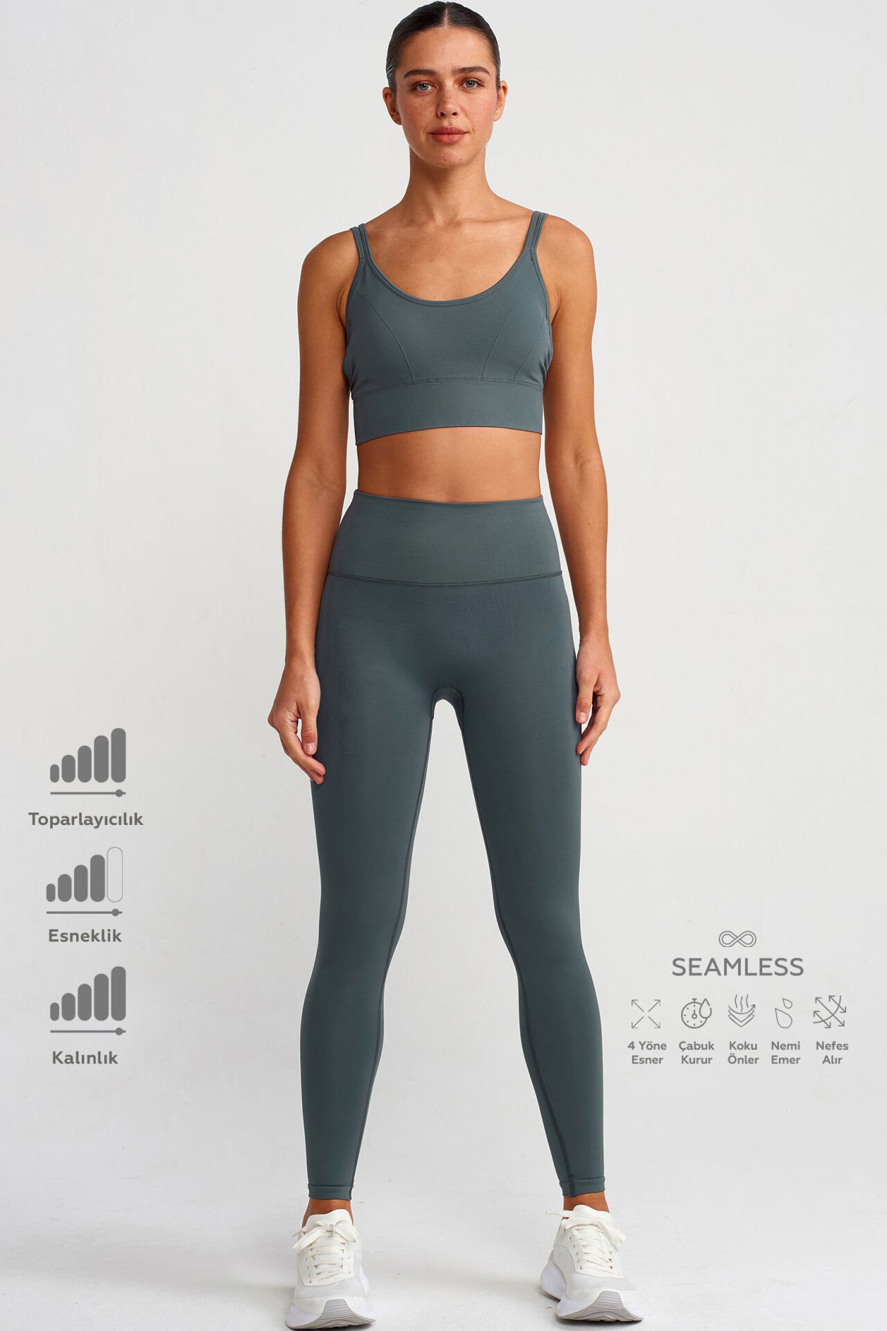 -Yüksek bel toparlayıcı tayt, bel kısmında üçgen dikiş detaylar ile kusursuz bir görünüm sağlar.